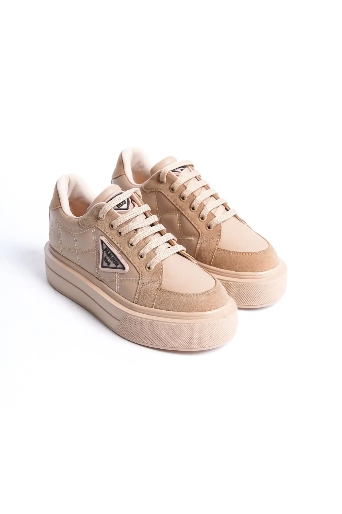 Prag Bağcıklı Ortopedik Taban Desenli Kadın Sneaker Spor Ayakkabı Tt - Ten
