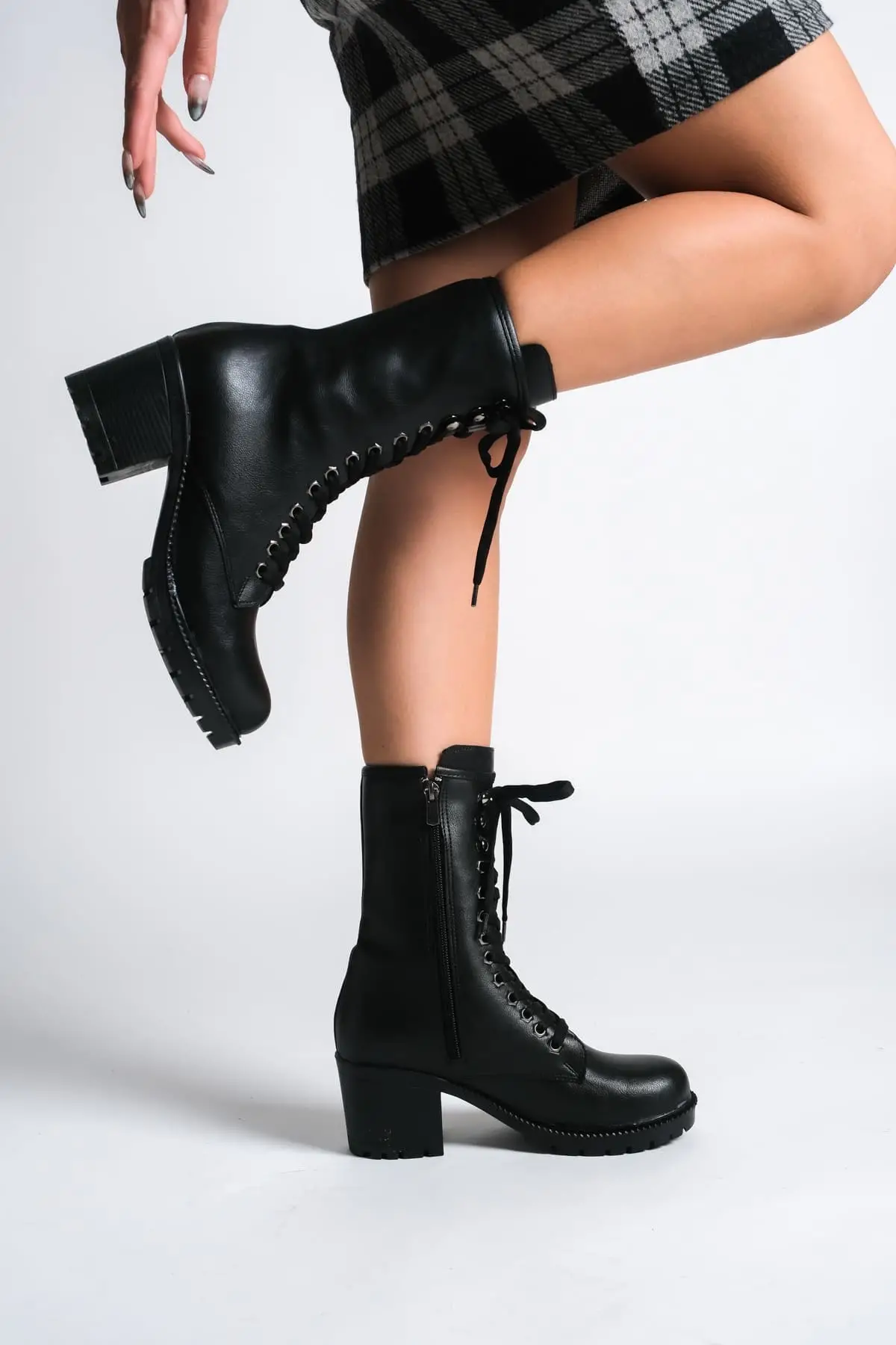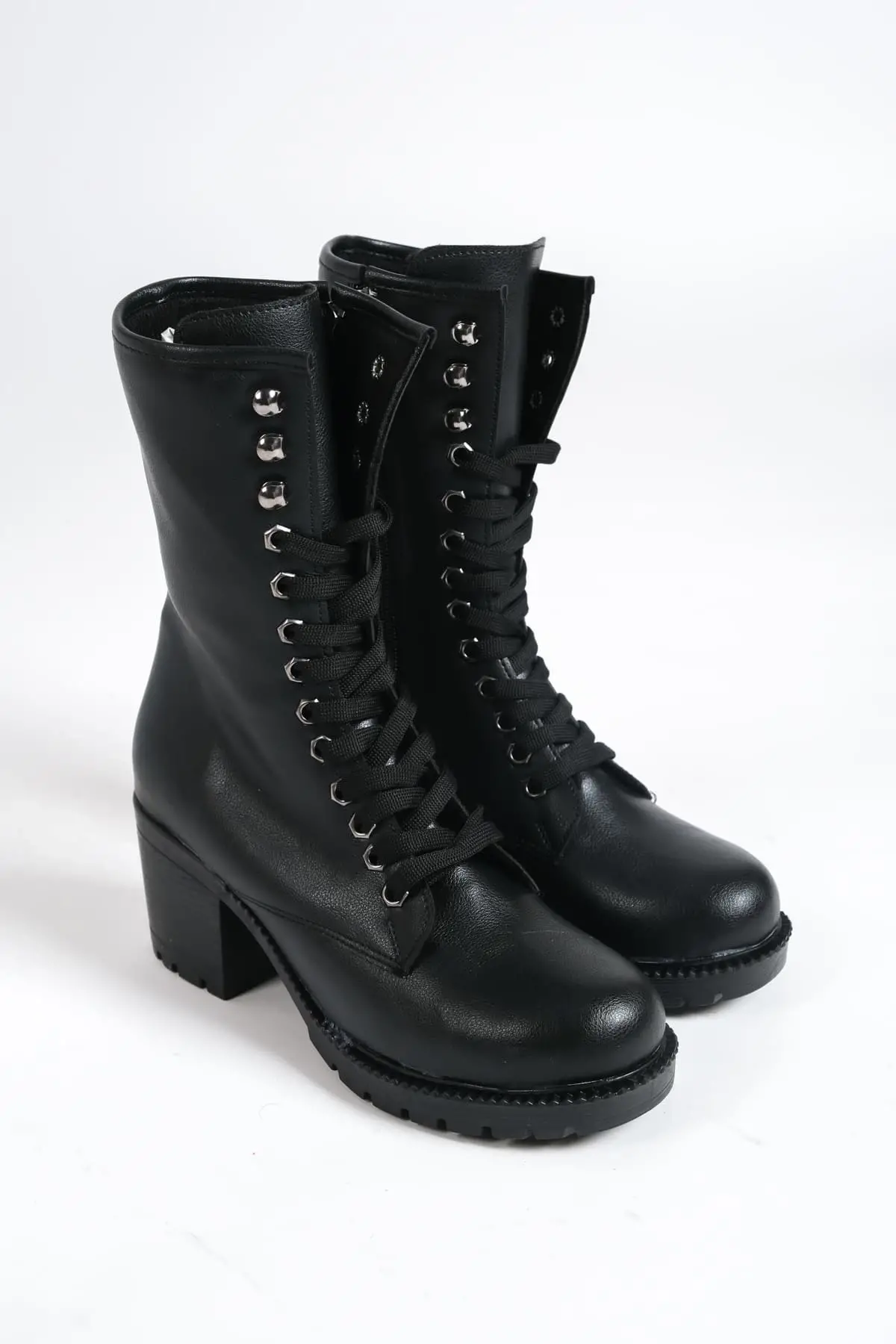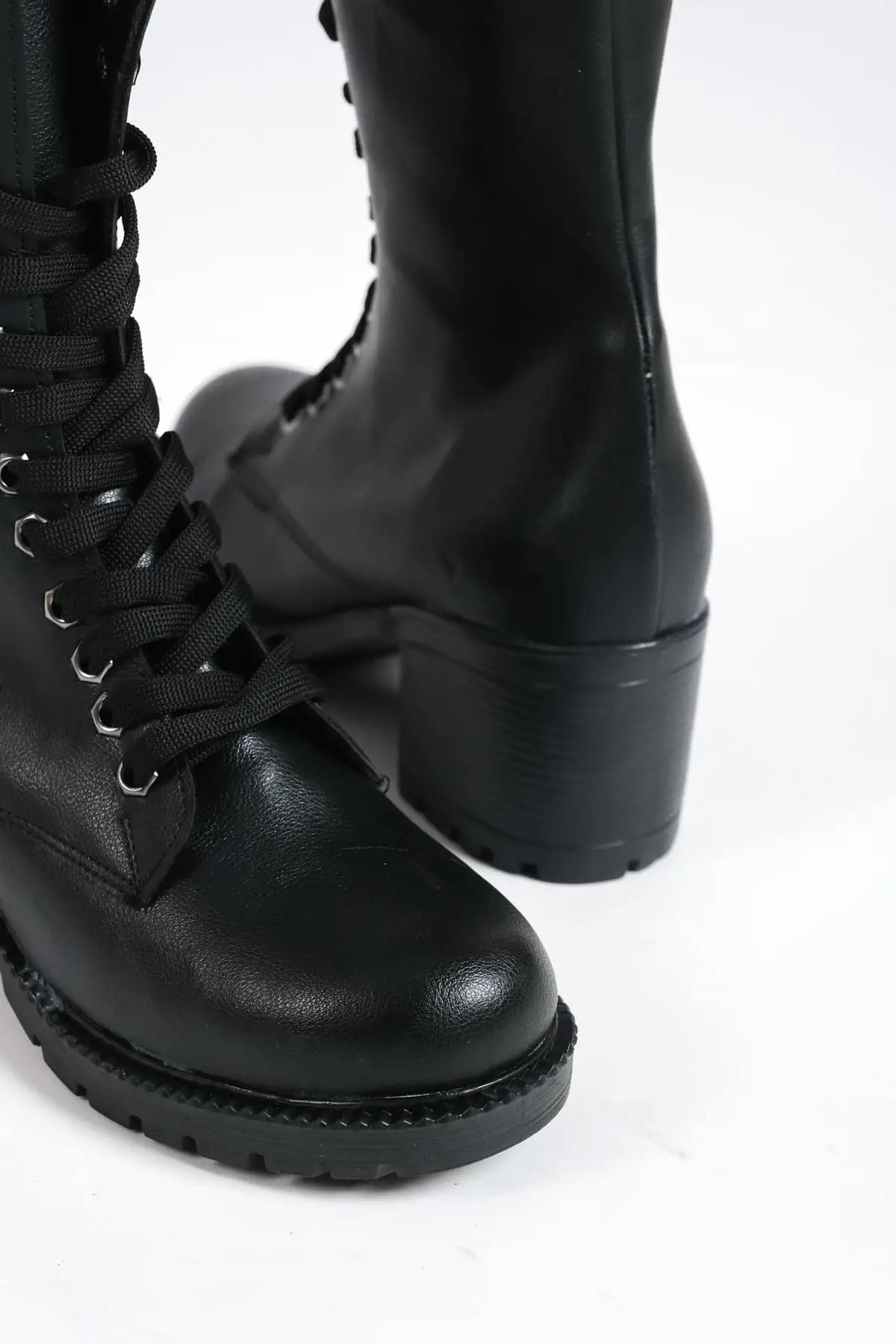Alda Bağcıklı Ortopedik Taban Kadın Çizme St - Siyah