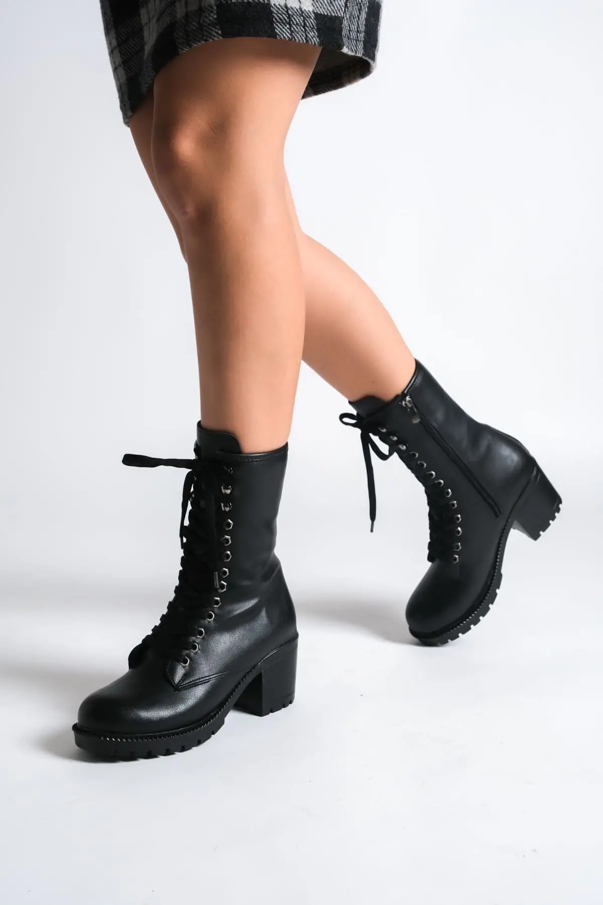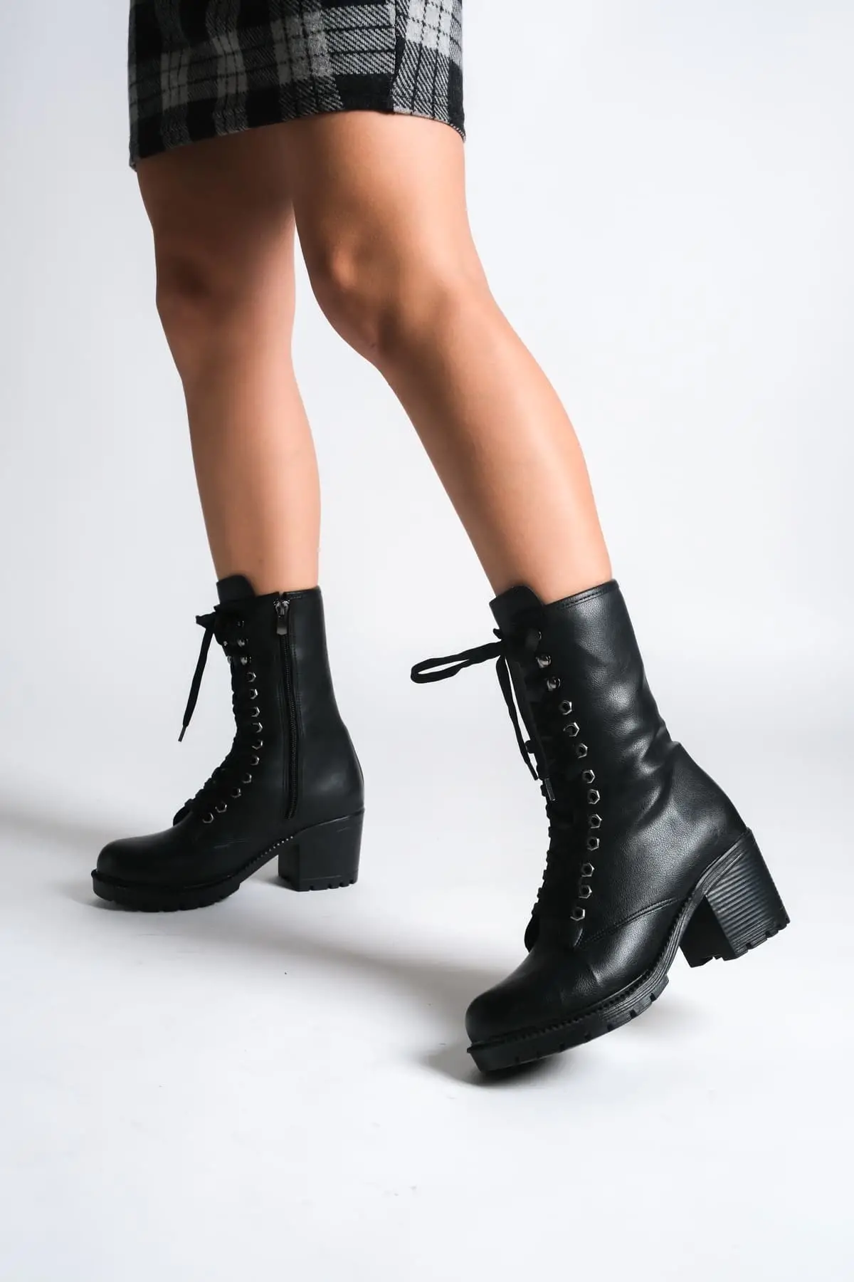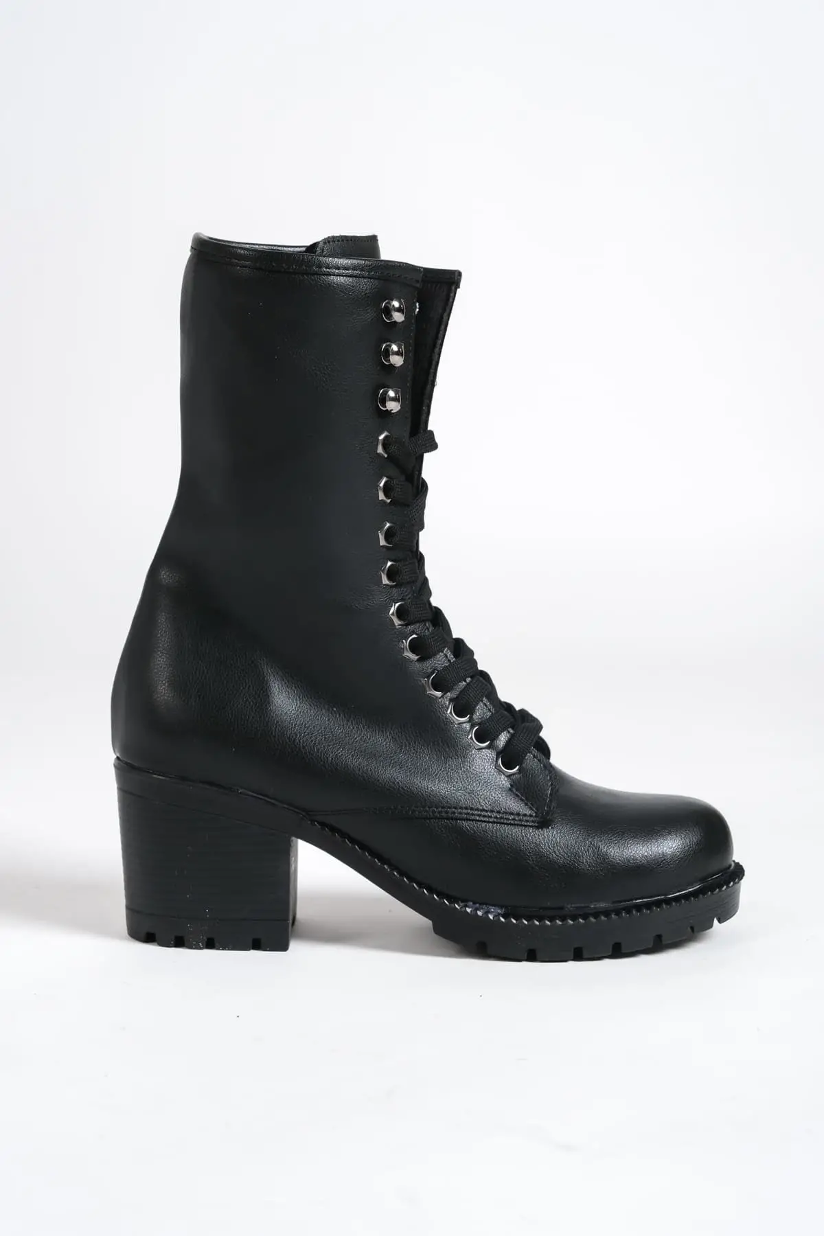 Alda Bağcıklı Ortopedik Taban Kadın Çizme St - Siyah