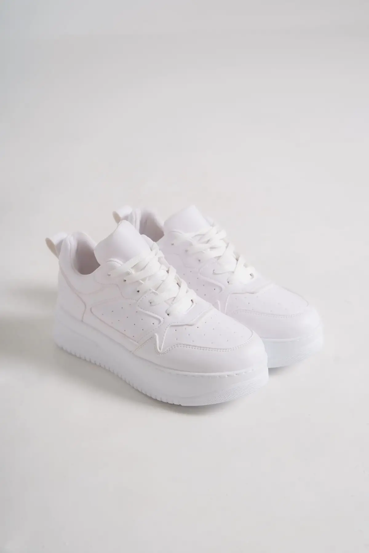 Alessı Bağcıklı Ortopedik Taban Kadın Sneaker Spor Ayakkabı Bt - Beyaz