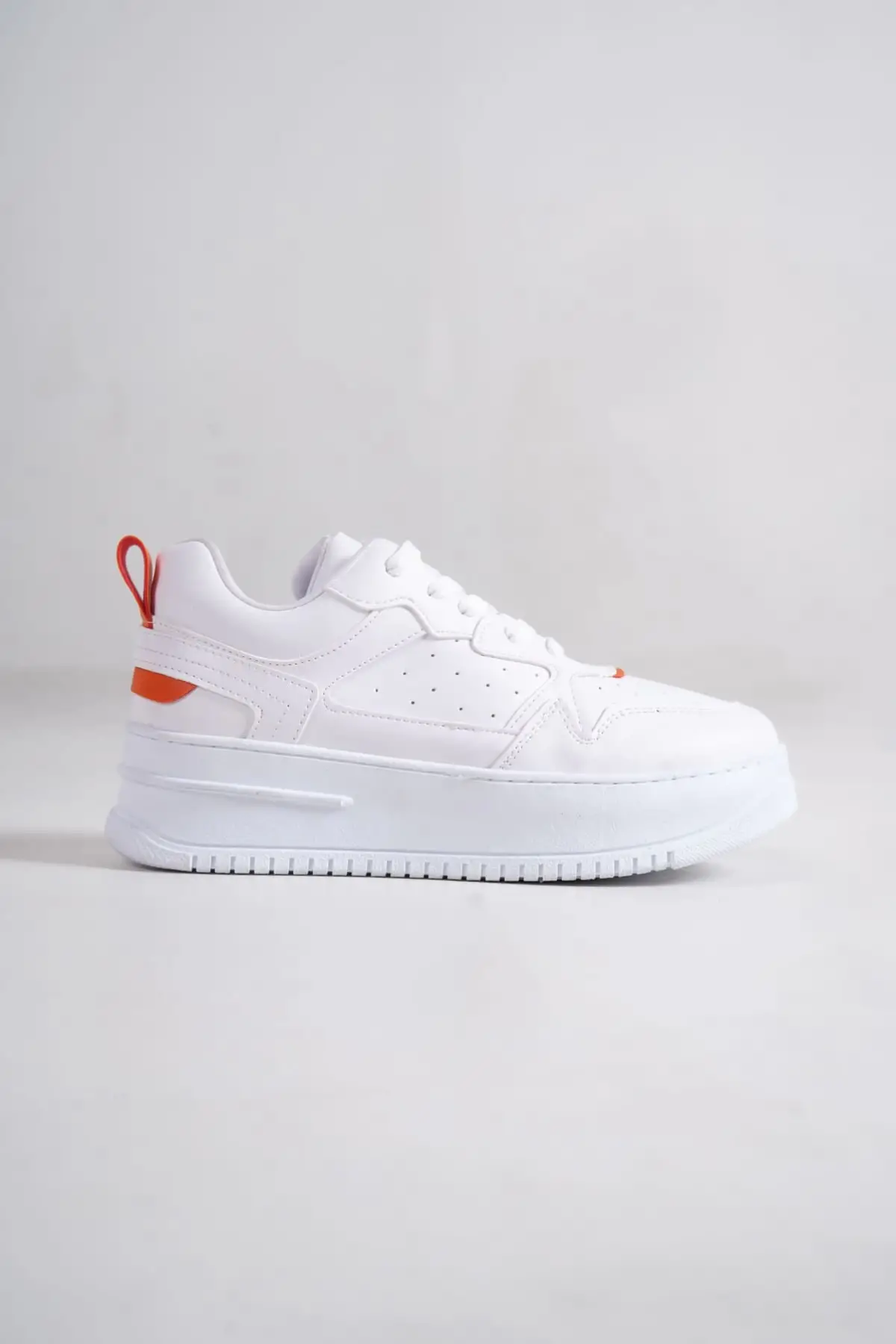 Alessı Bağcıklı Ortopedik Taban Kadın Sneaker Spor Ayakkabı Bt - Beyaz/turuncu