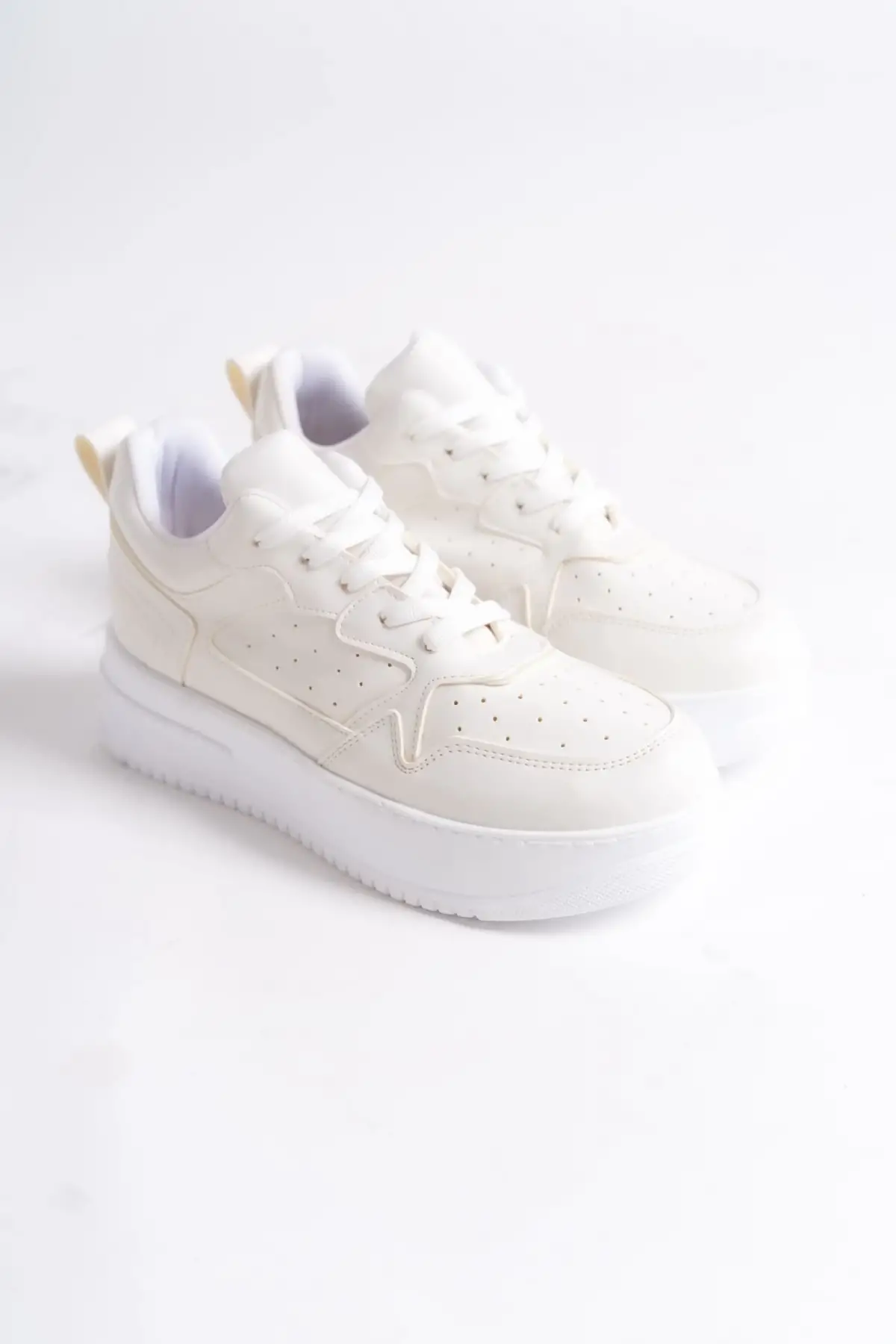 Alessı Bağcıklı Ortopedik Taban Kadın Sneaker Spor Ayakkabı Bt - Kırık Beyaz