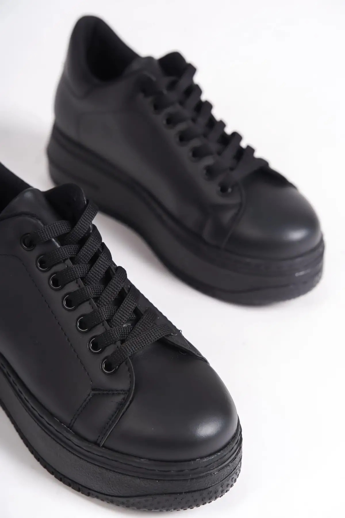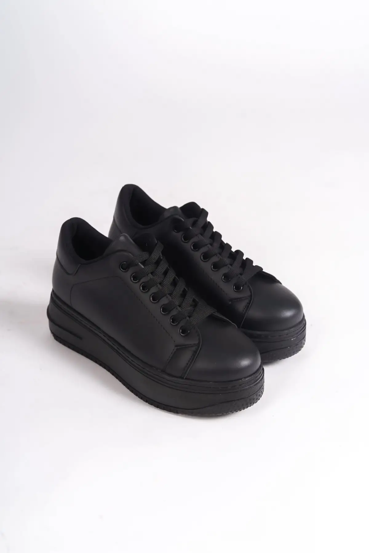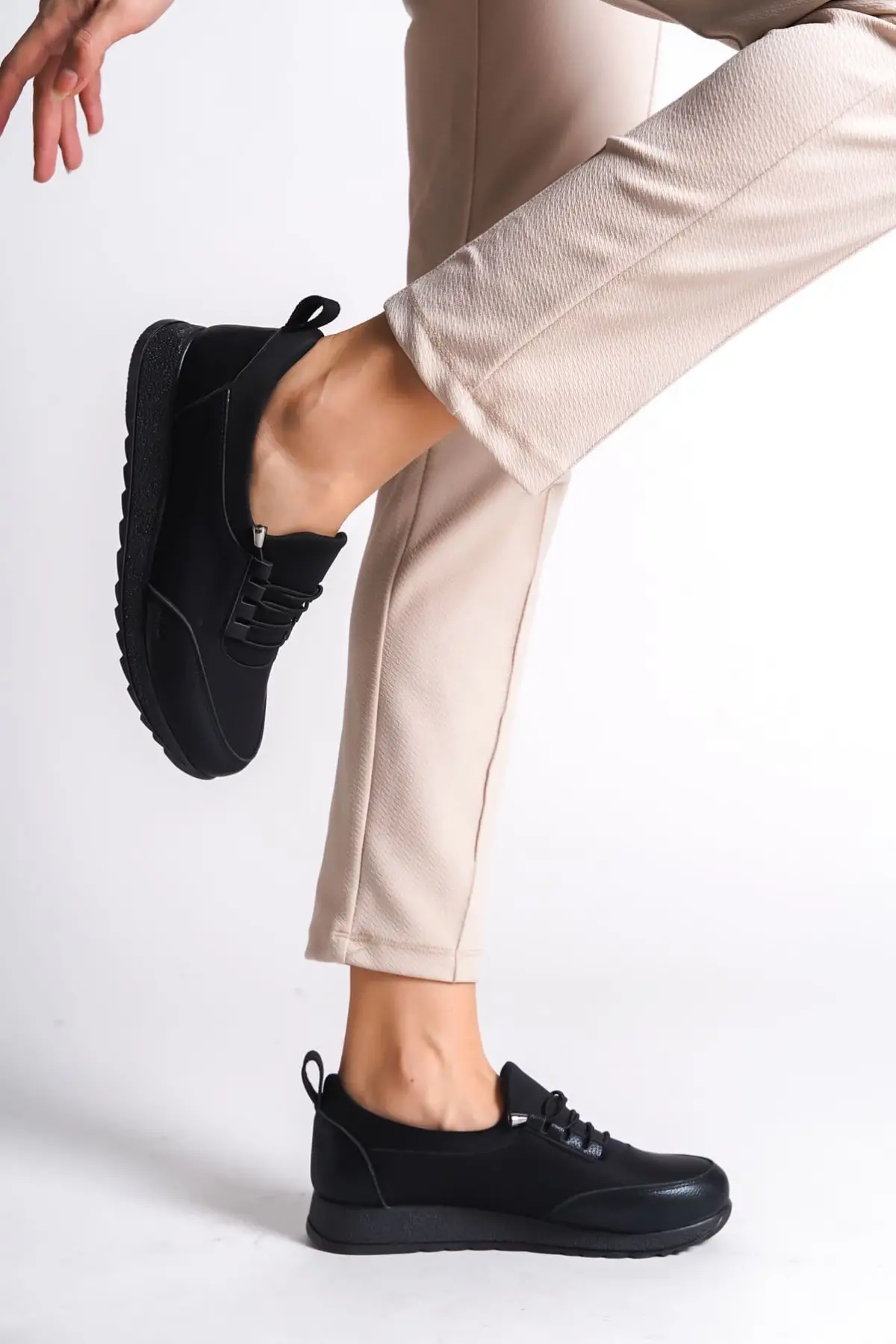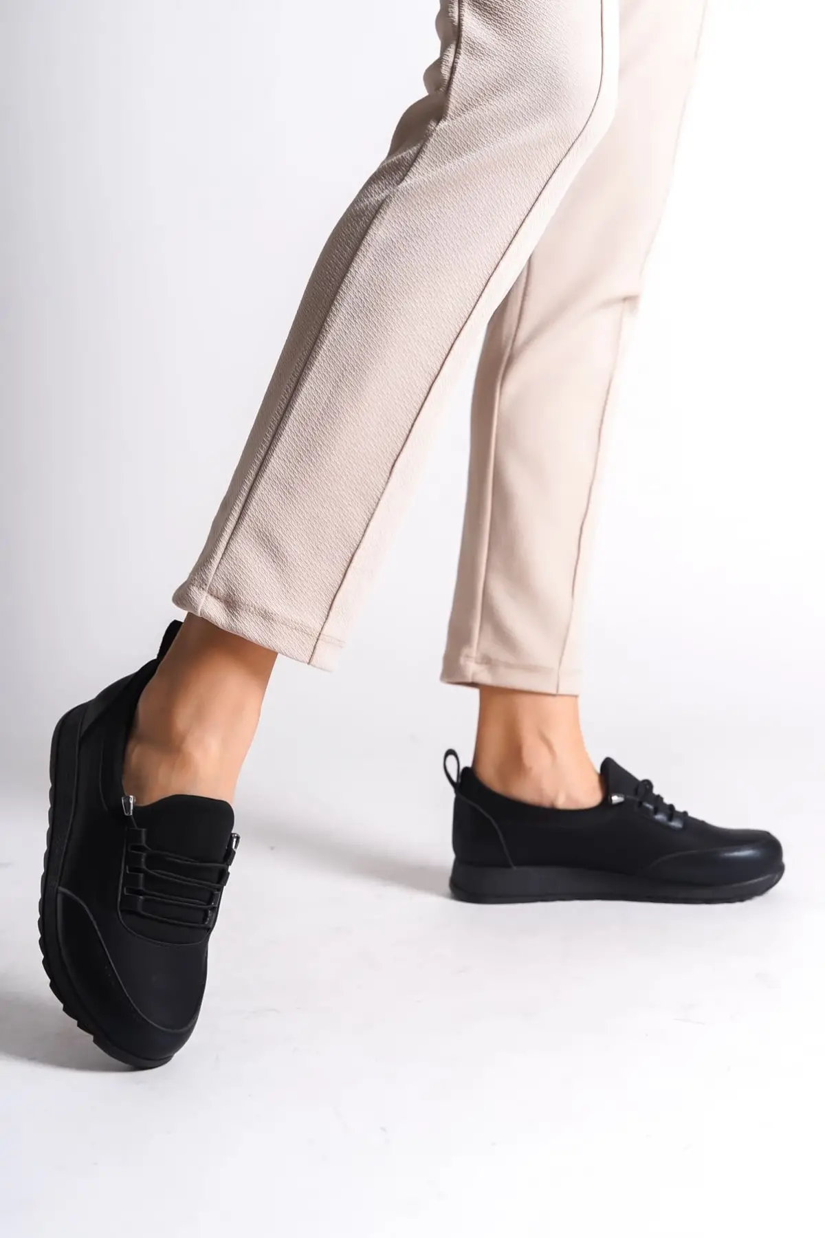 Bıana Bağcıklı Ortopedik Taban Kadın Sneaker Spor Ayakkabı St - Siyah