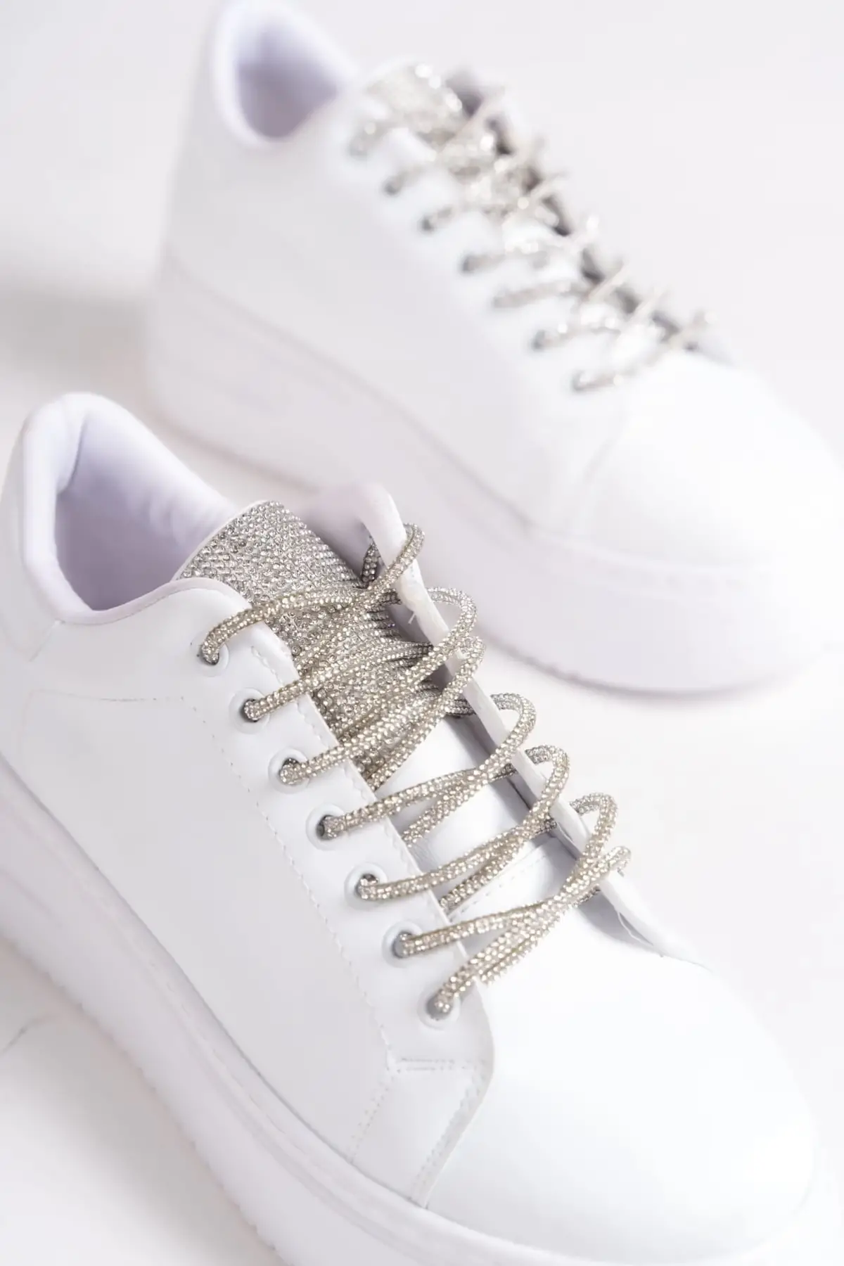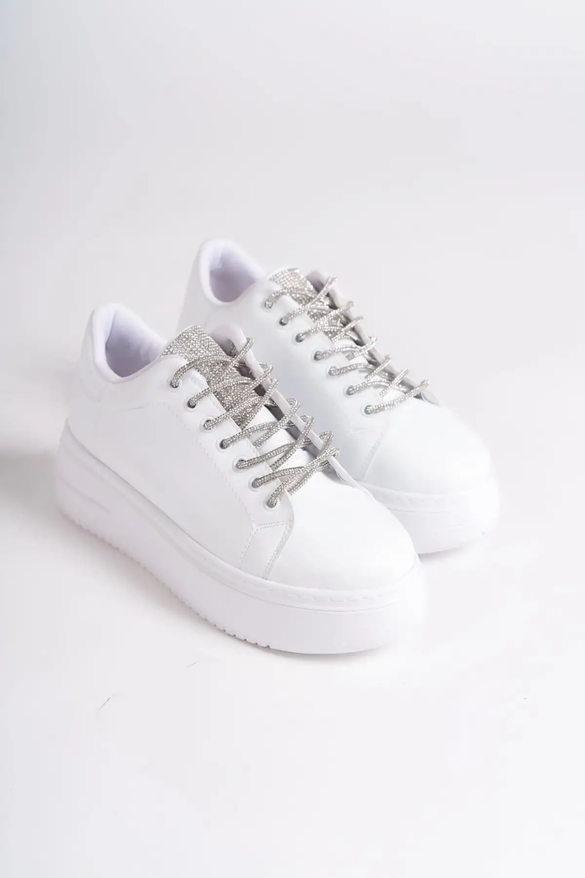 Della Bağcıklı Ortopedik Taban Taşlı Kadın Sneaker Spor Ayakkabı Bt - Beyaz