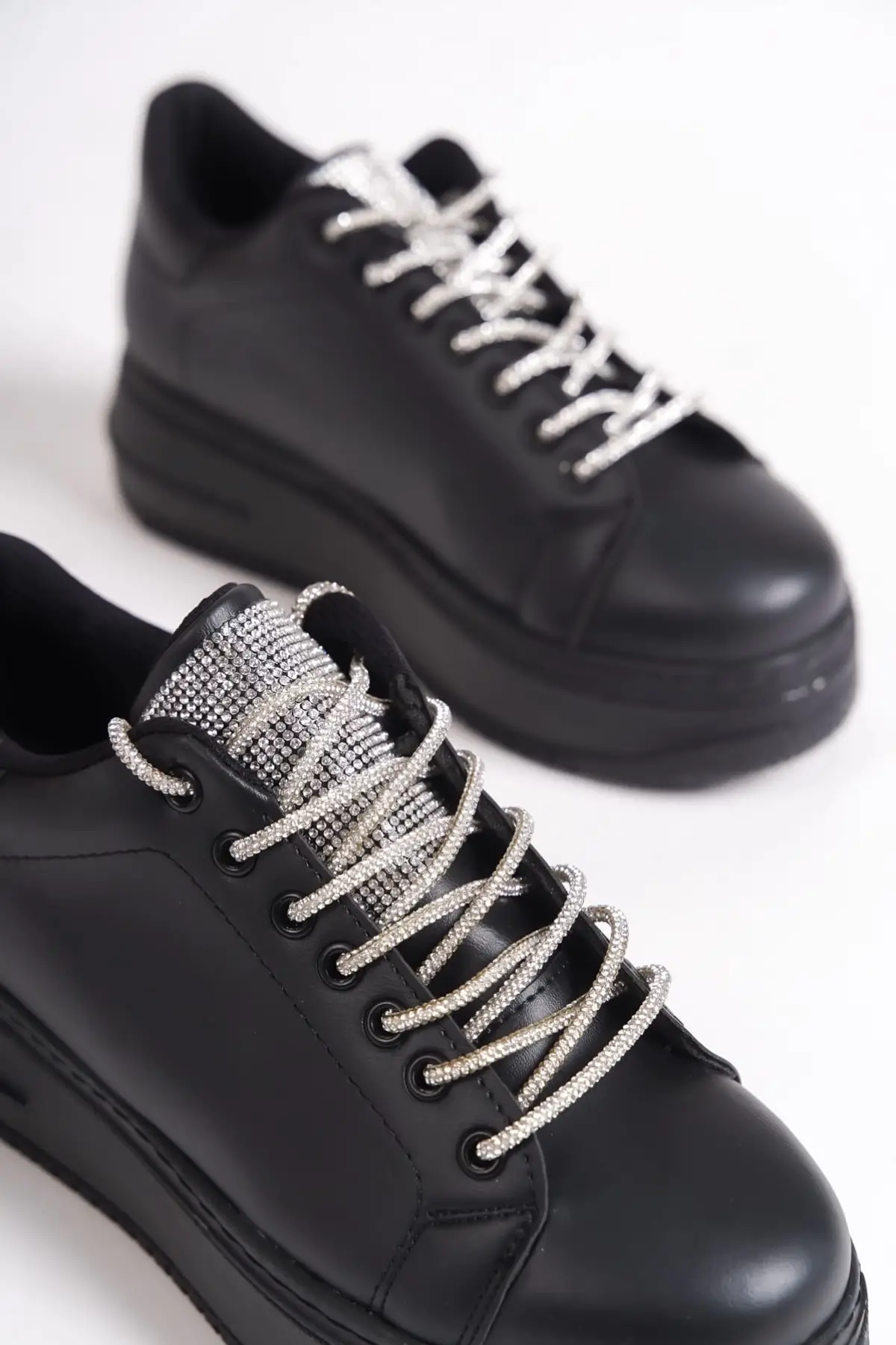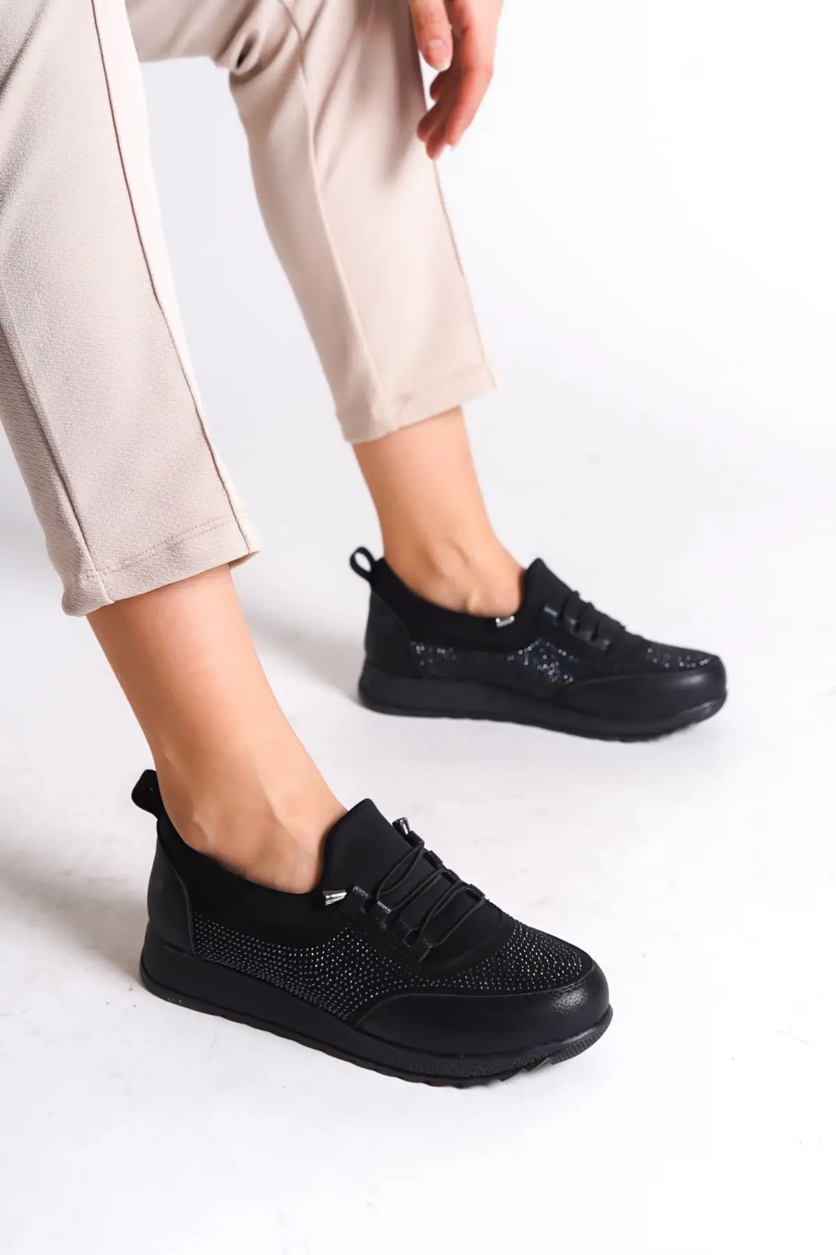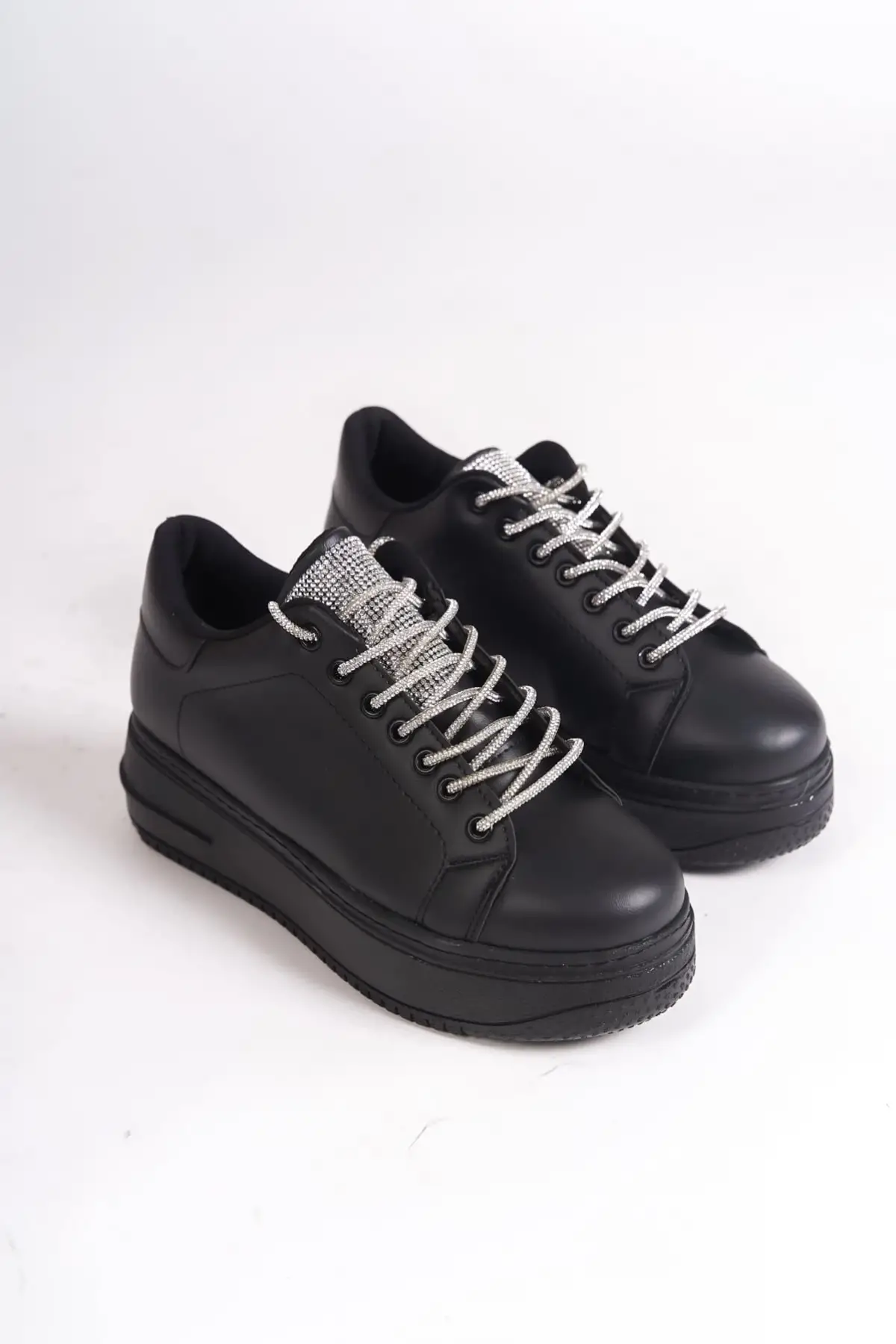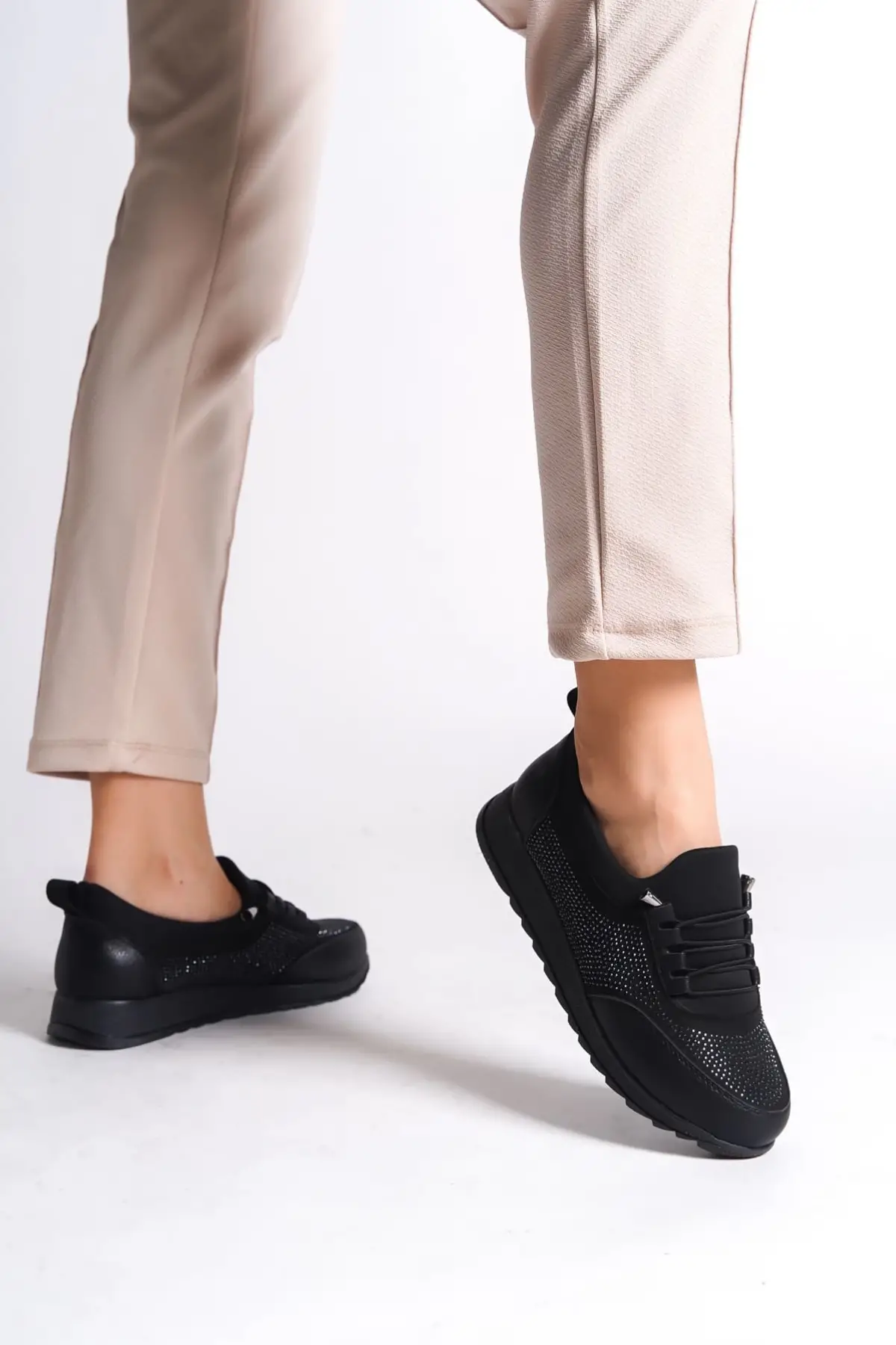 Della Bağcıklı Ortopedik Taban Taşlı Kadın Sneaker Spor Ayakkabı St - Siyah