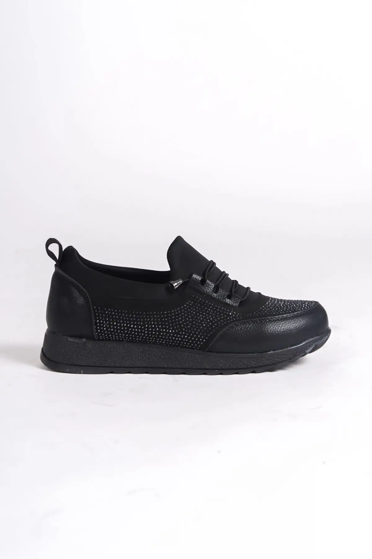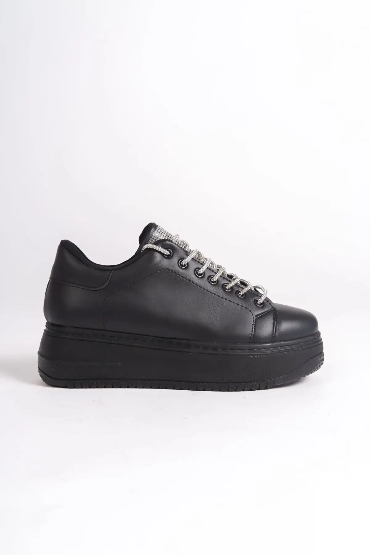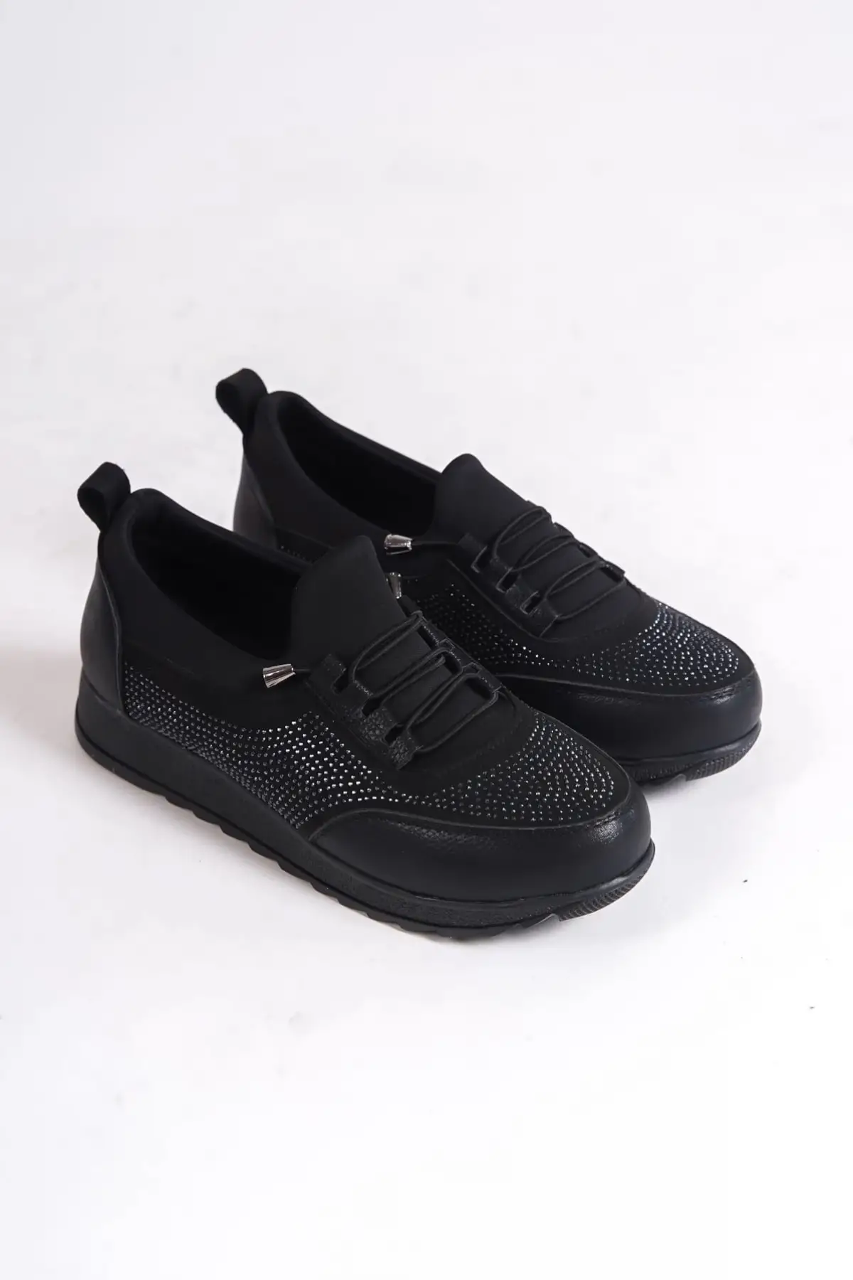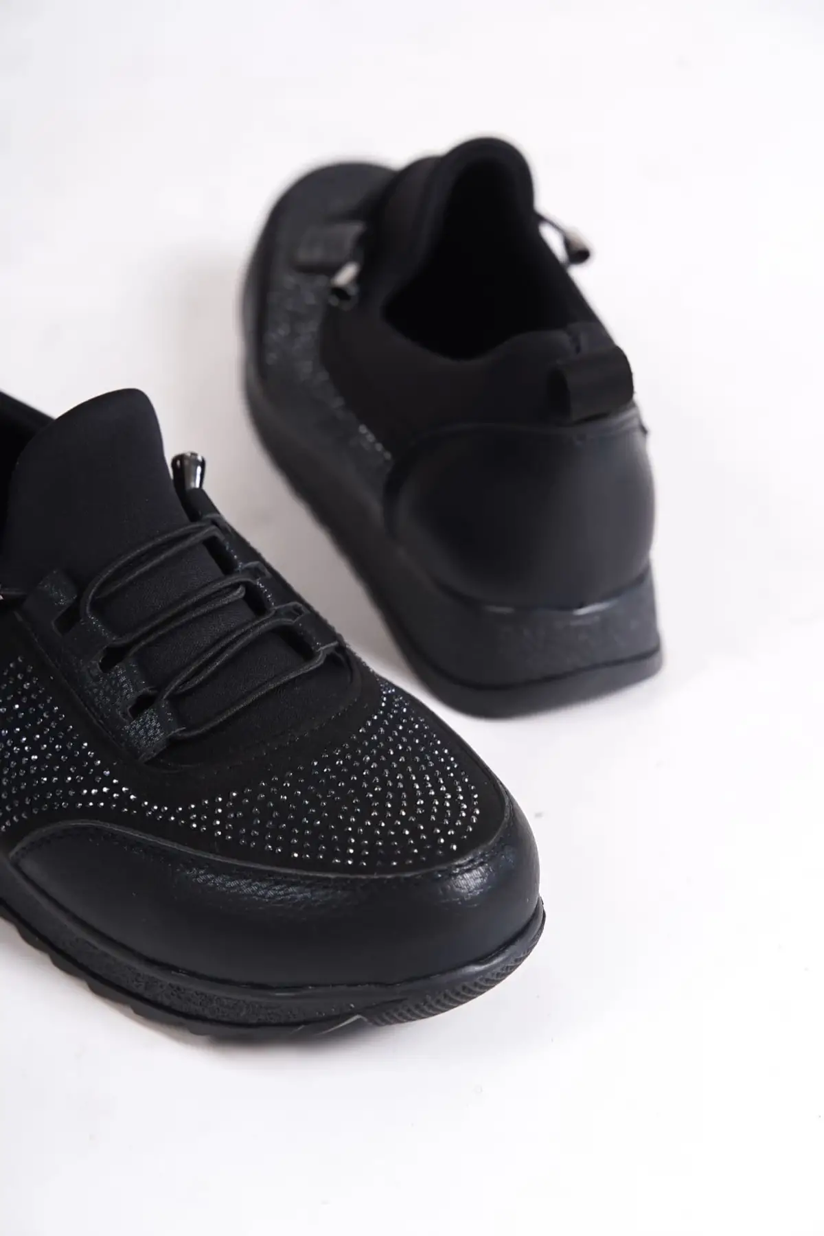 Della Bağcıklı Ortopedik Taban Taşlı Kadın Sneaker Spor Ayakkabı St - Siyah