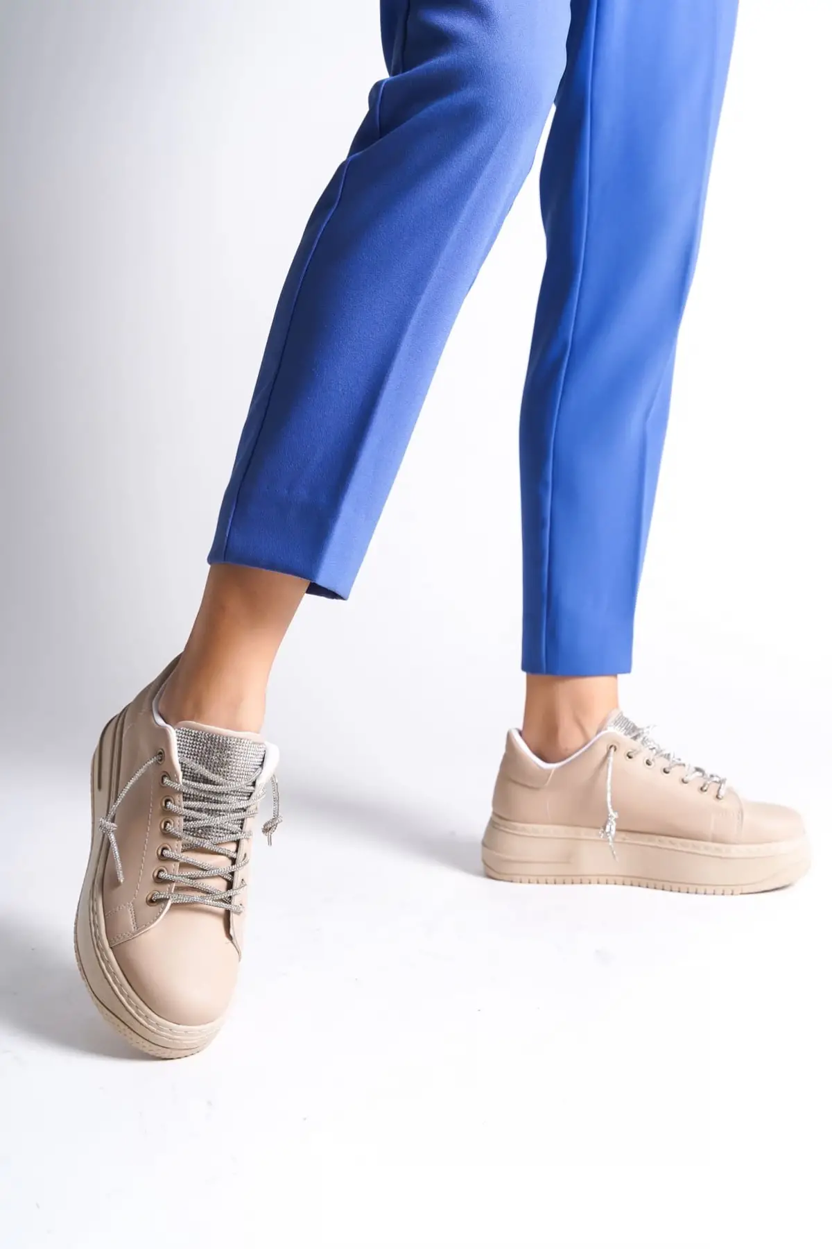 Della Bağcıklı Ortopedik Taban Taşlı Kadın Sneaker Spor Ayakkabı Tt - Ten