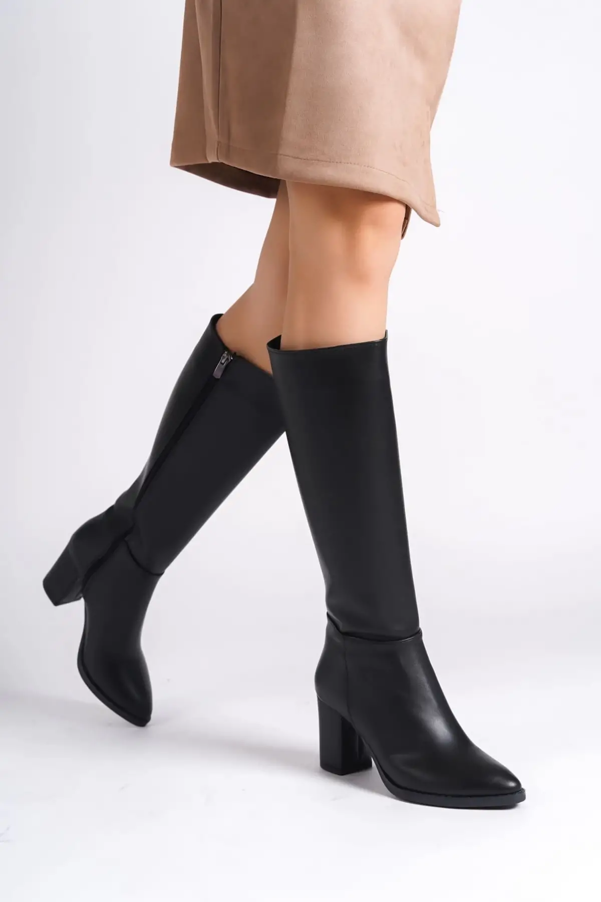 Fıorella Bağcıksız Fermuarlı Ortopedik Taban Kadın Çizme St - Siyah