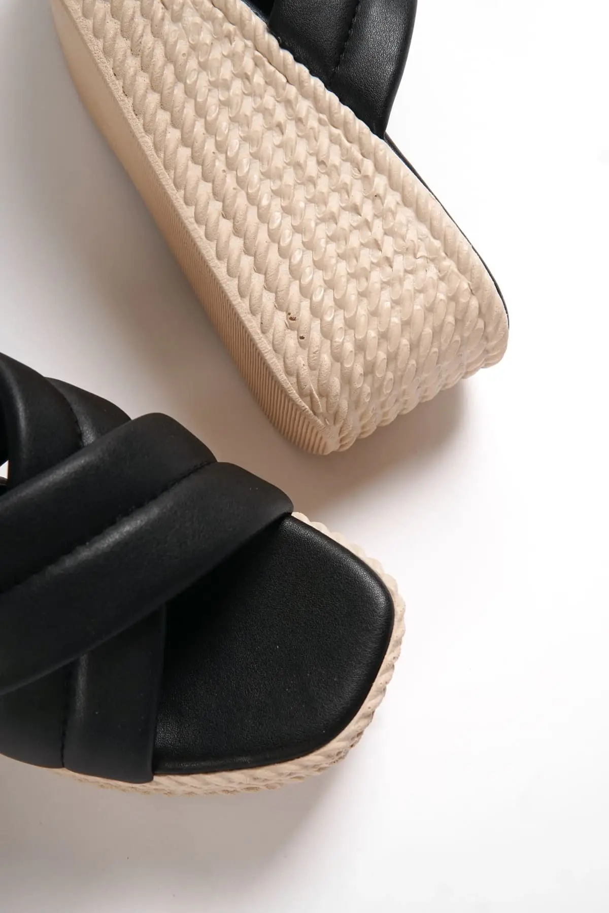 Joymıx Dolgu Topuklu Ortopedik Taban Hasır Görünümlü Kadın Terlik Kt - Siyah