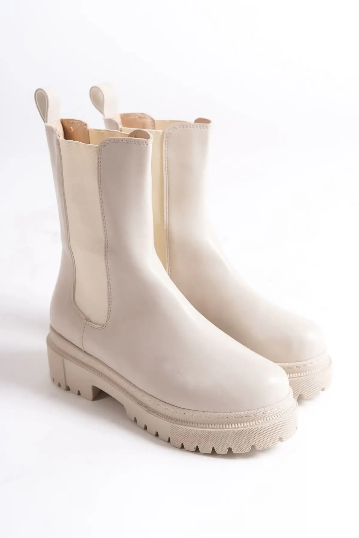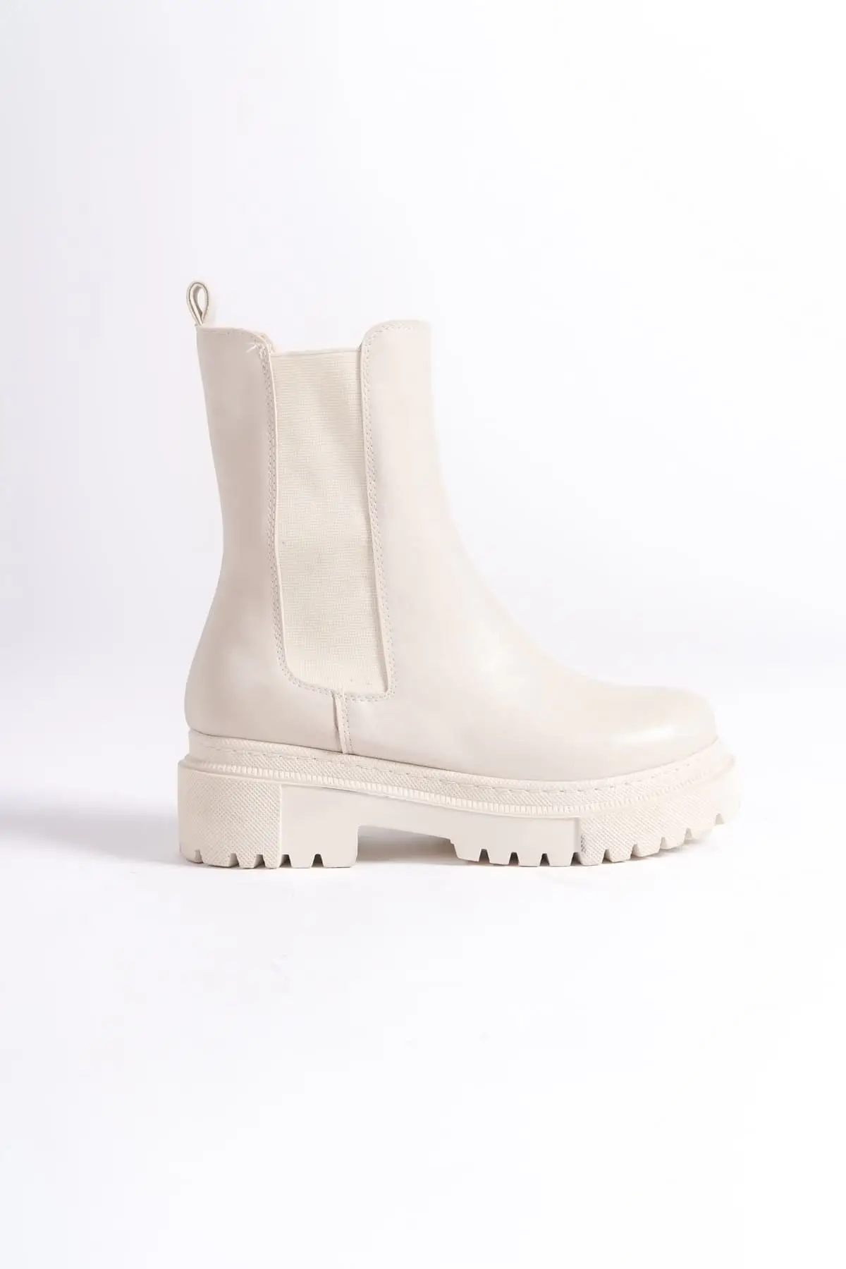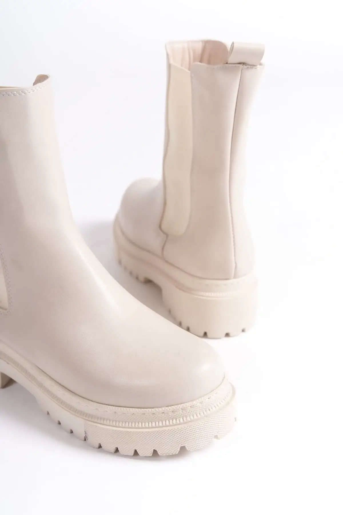 Lora Bağcıksız Lastikli Ortopedik Taban Kadın Bot Kt - Krem