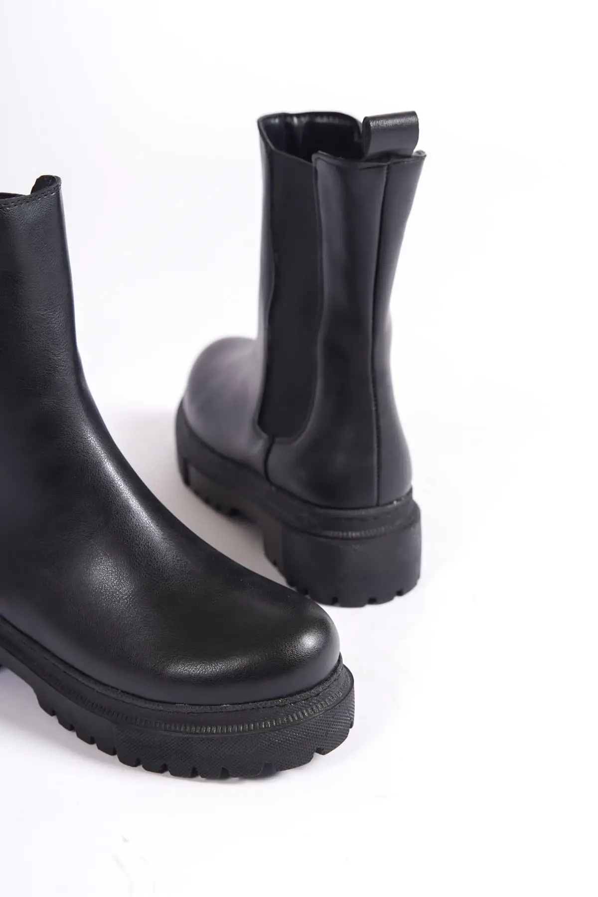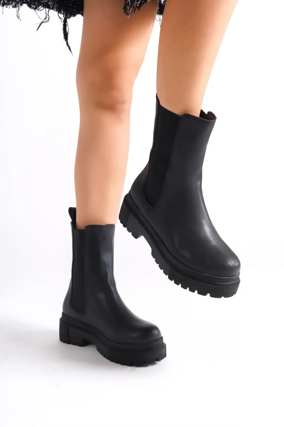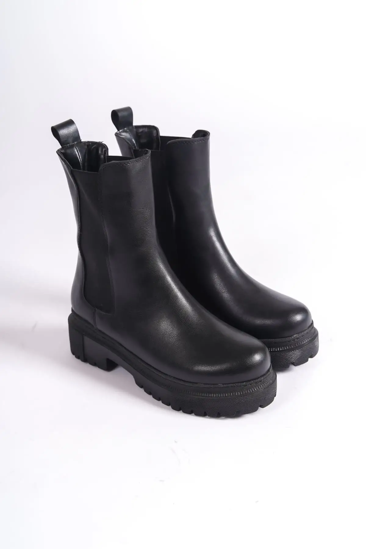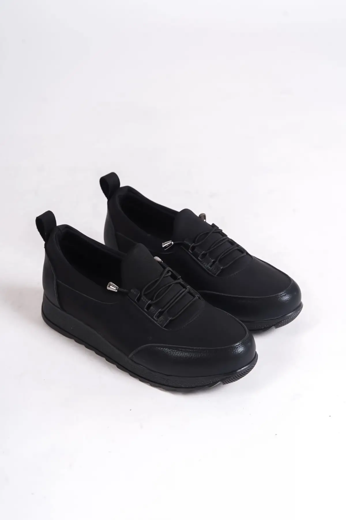 Lora Bağcıksız Lastikli Ortopedik Taban Kadın Bot St - Siyah