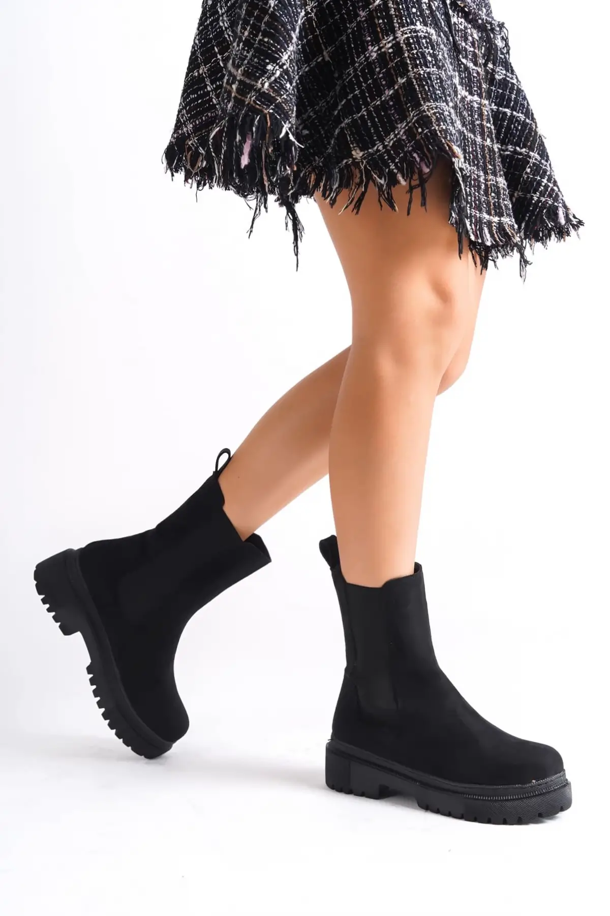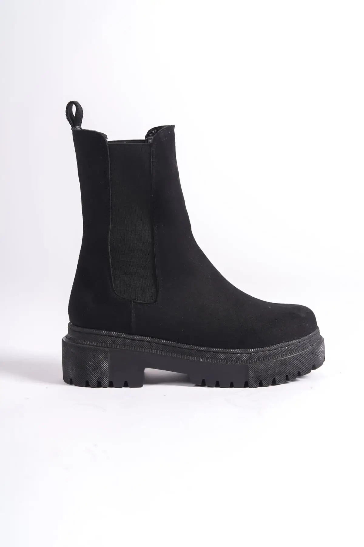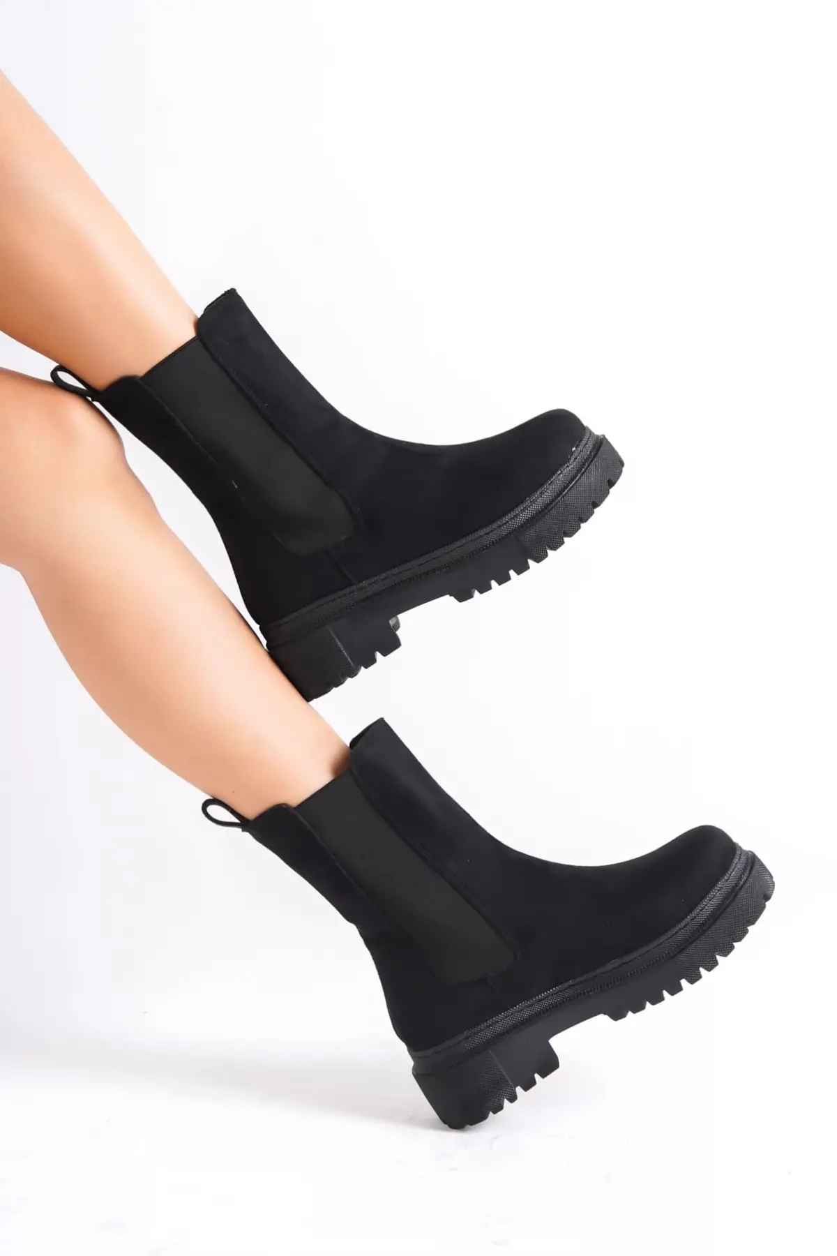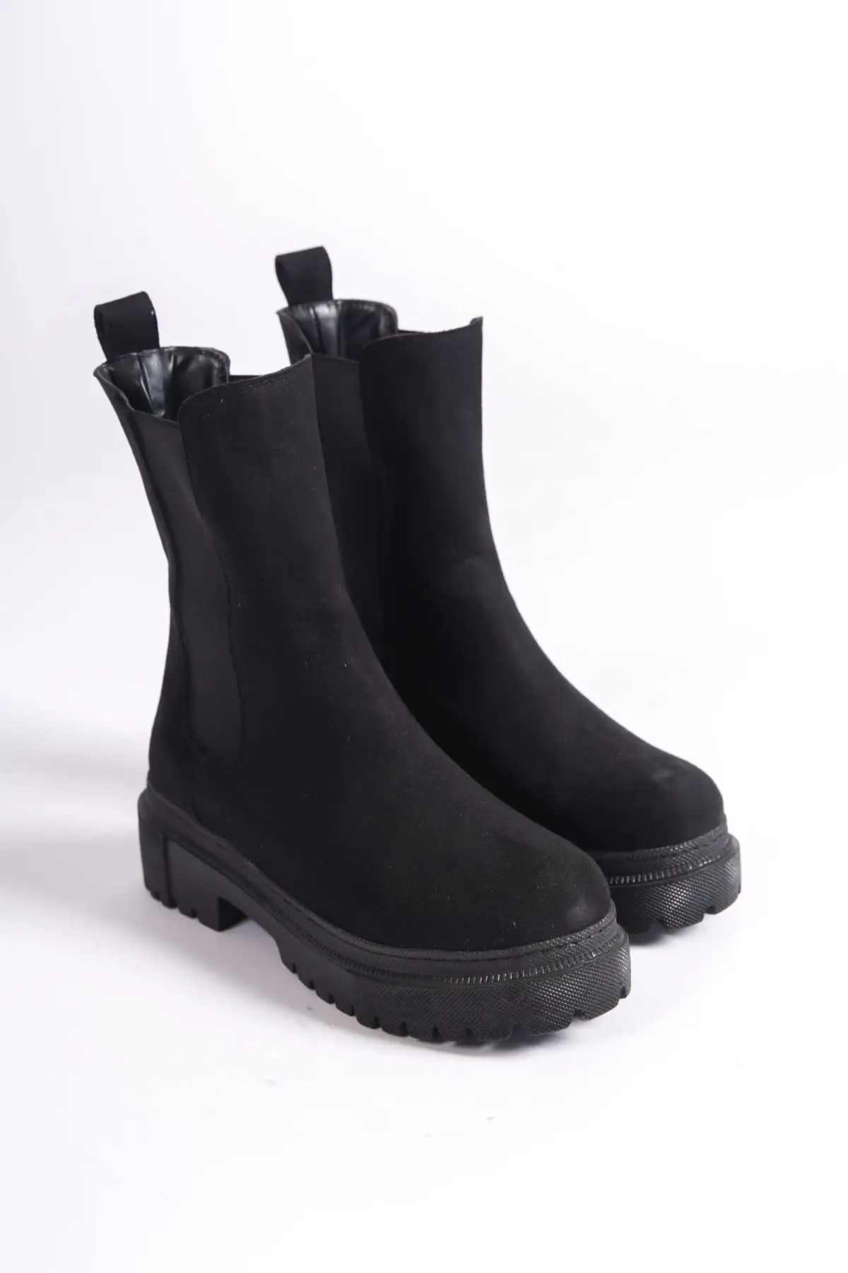 Lora Bağcıksız Lastikli Süet Ortopedik Taban Kadın Bot St - Siyah
