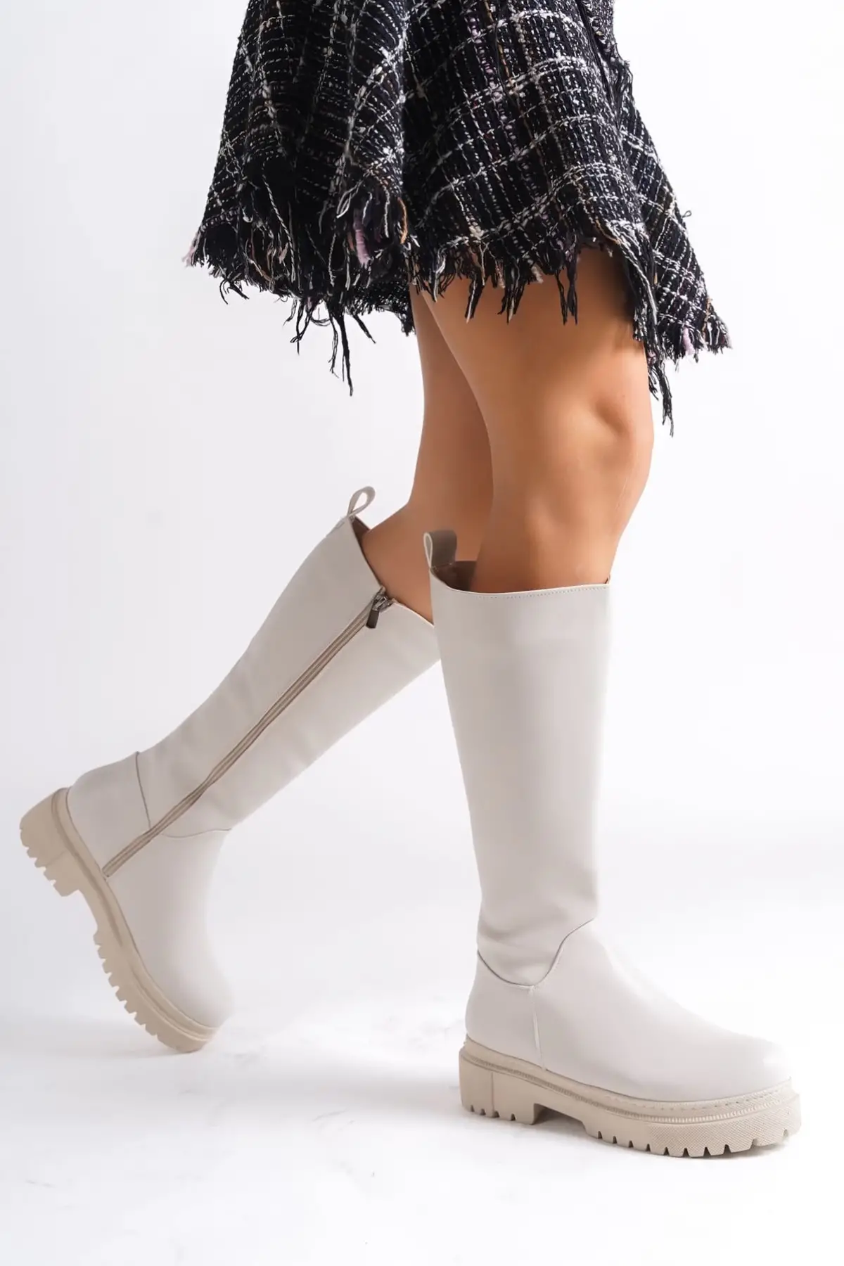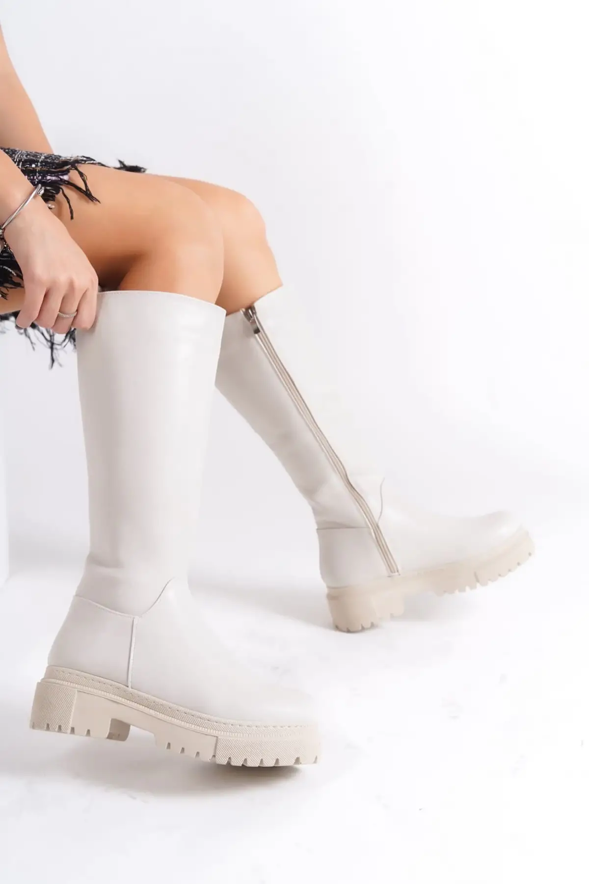 Mıra Bağcıksız Fermuarlı Ortopedik Taban Kadın Çizme Kt - Krem