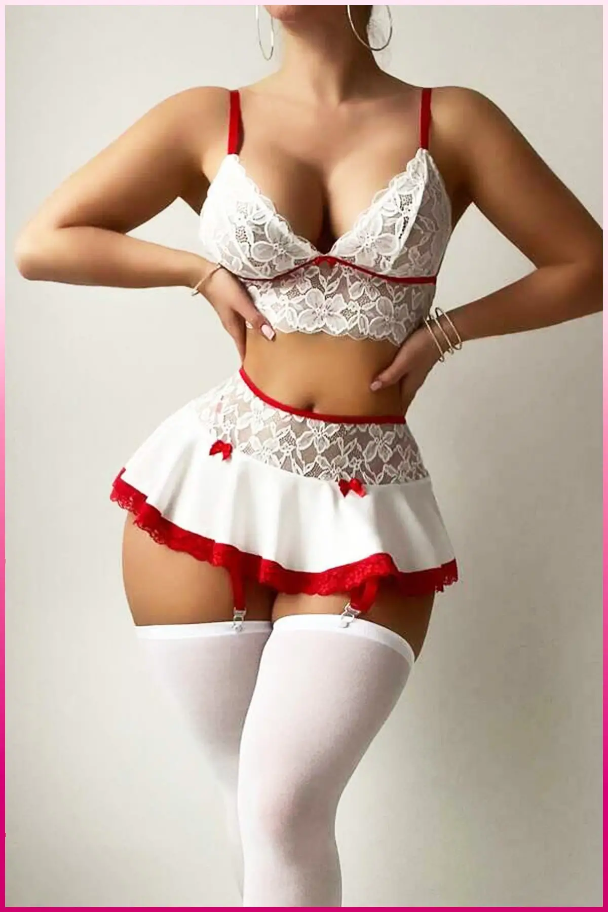 Kadın Beyaz Dantelli Etekli, Kol Bantlı, Göğüs Balenli Fantazi Kostüm