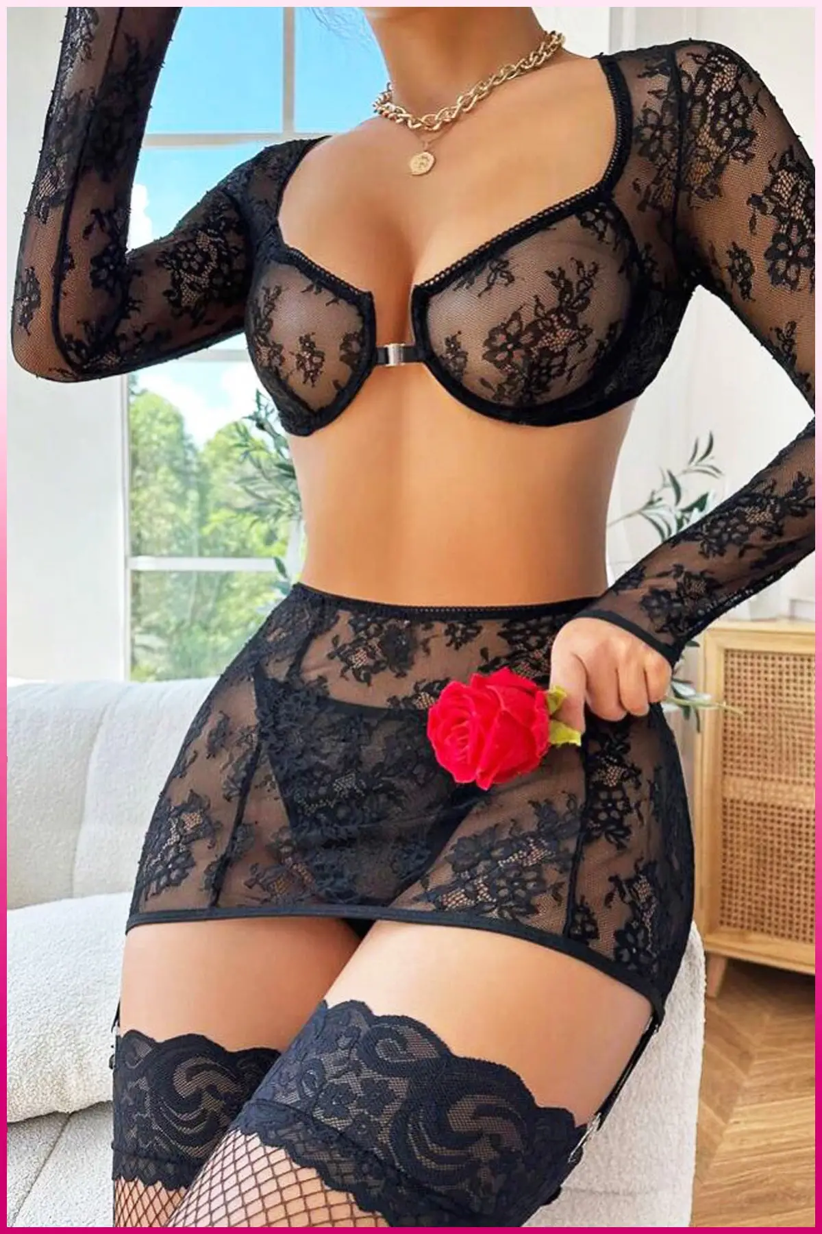 Fuşya Merdiven Zincirli Göğüs Balenli Kadın Seksi Jartiyer Takım