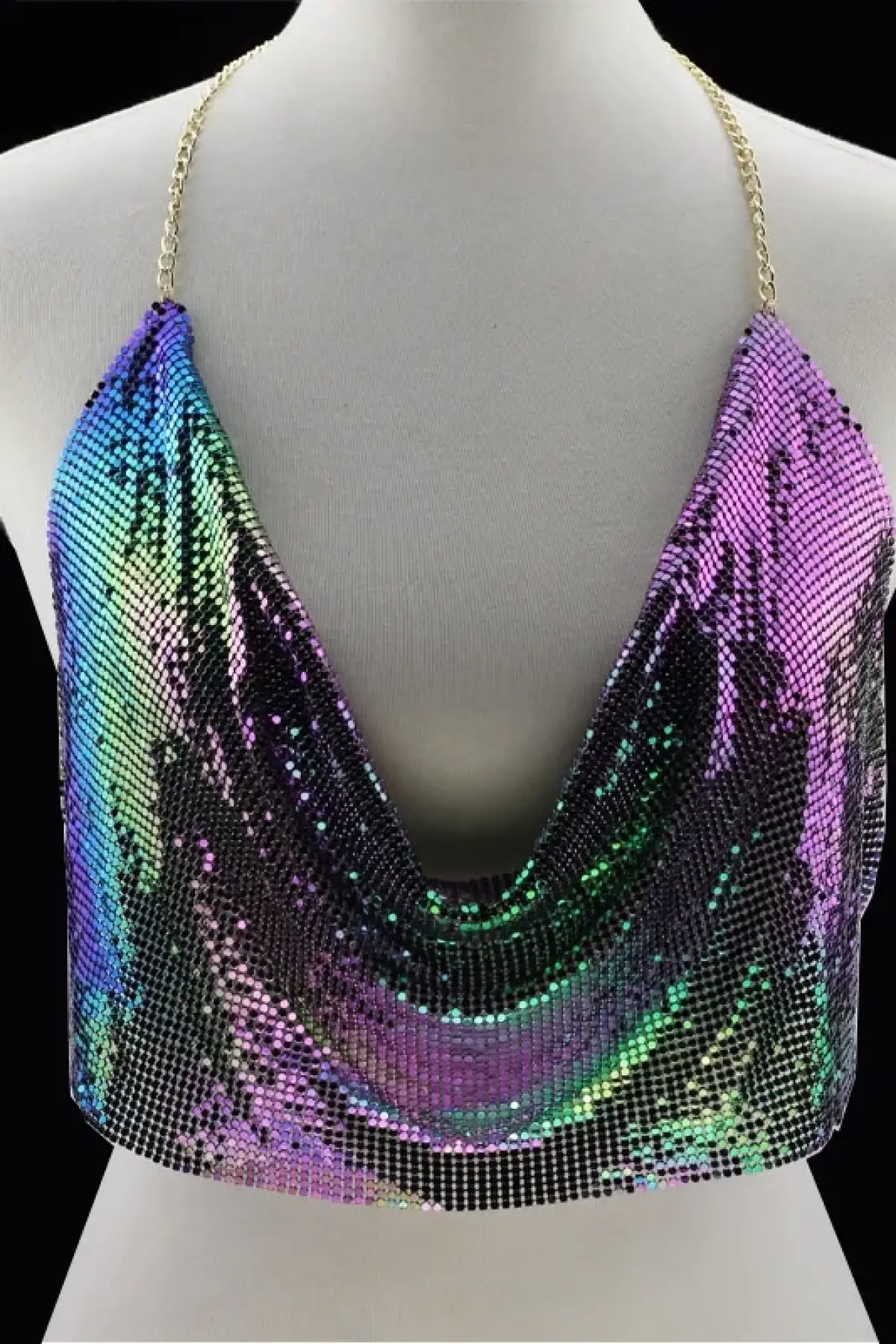 Parlak Gökuşağı Crop & Bluz Kolsuz Kayık Yaka Zırh Büstiyer