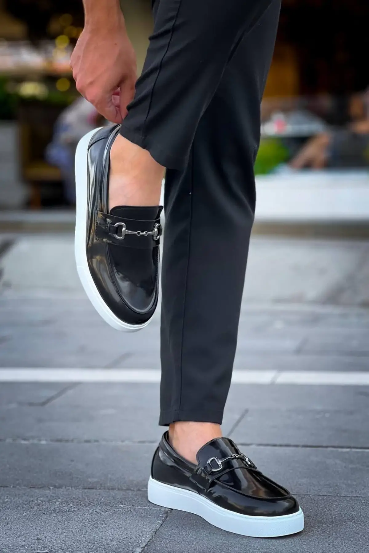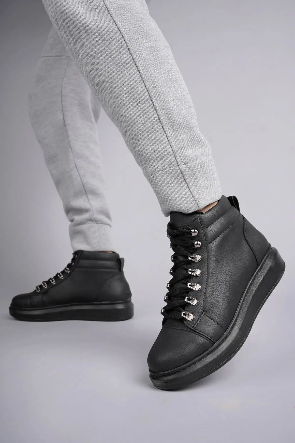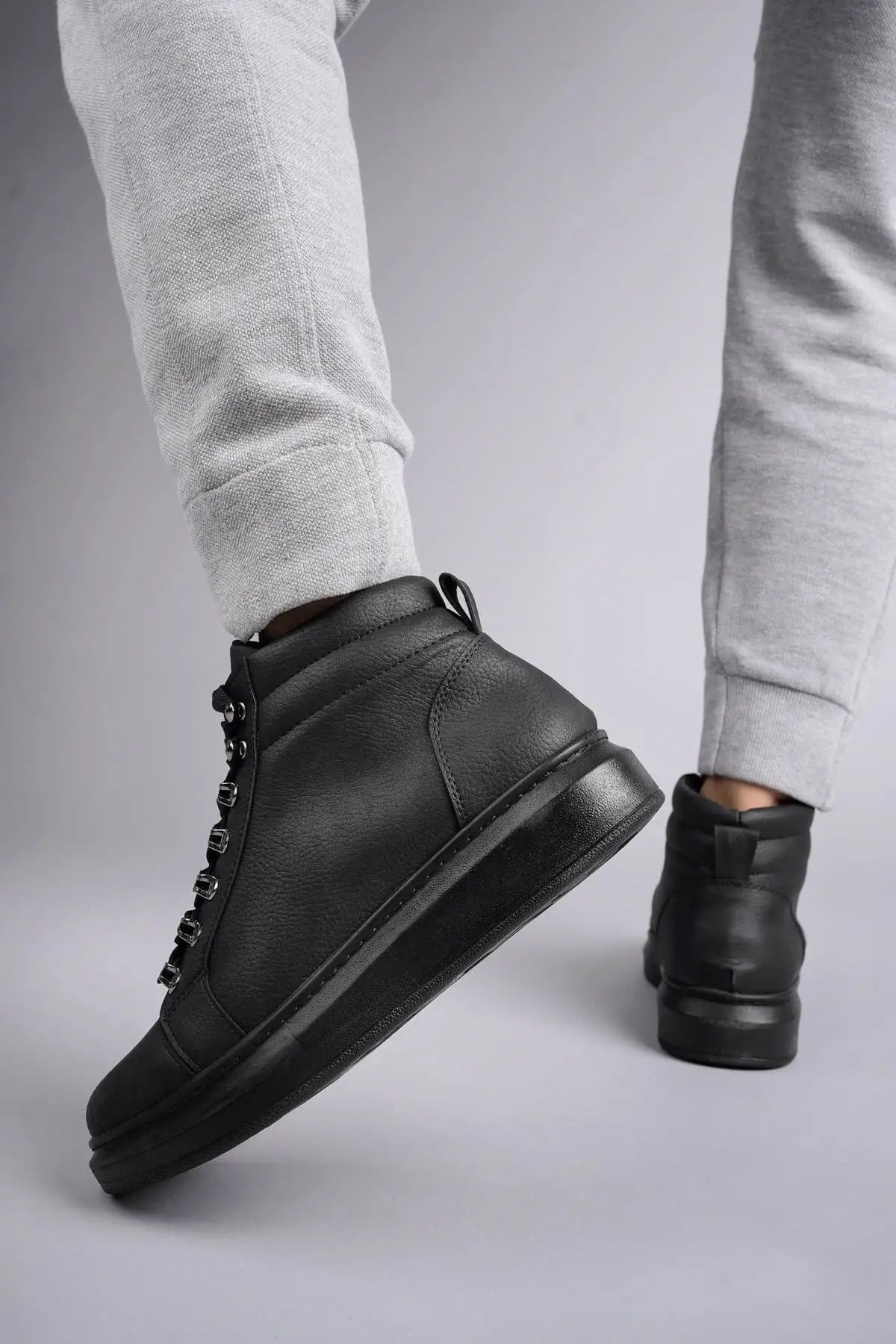 Tb-x502 Terzi Bey Siyah Cilt Yüksek Siyah Taban Bağcık Detaylı Lastikli Günlük Erkek Ayakkabı