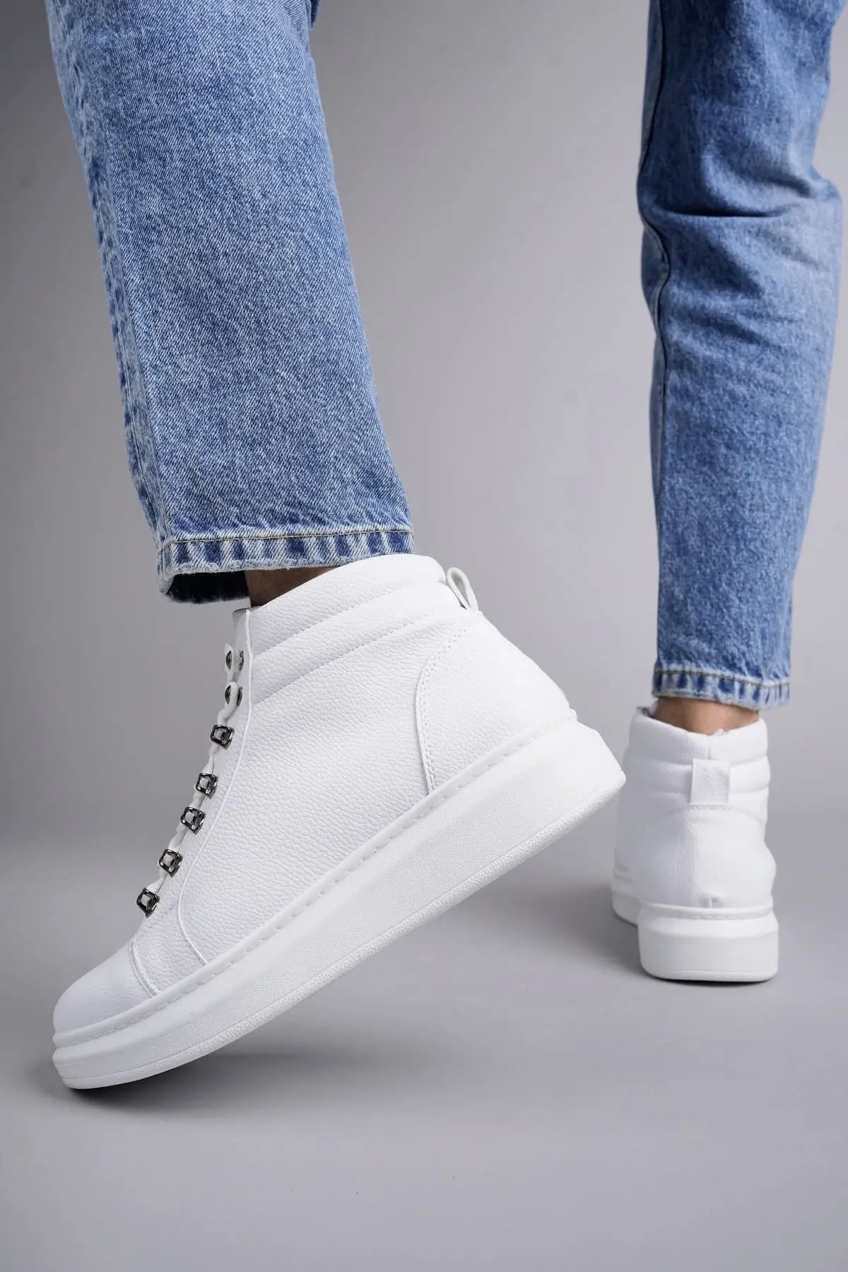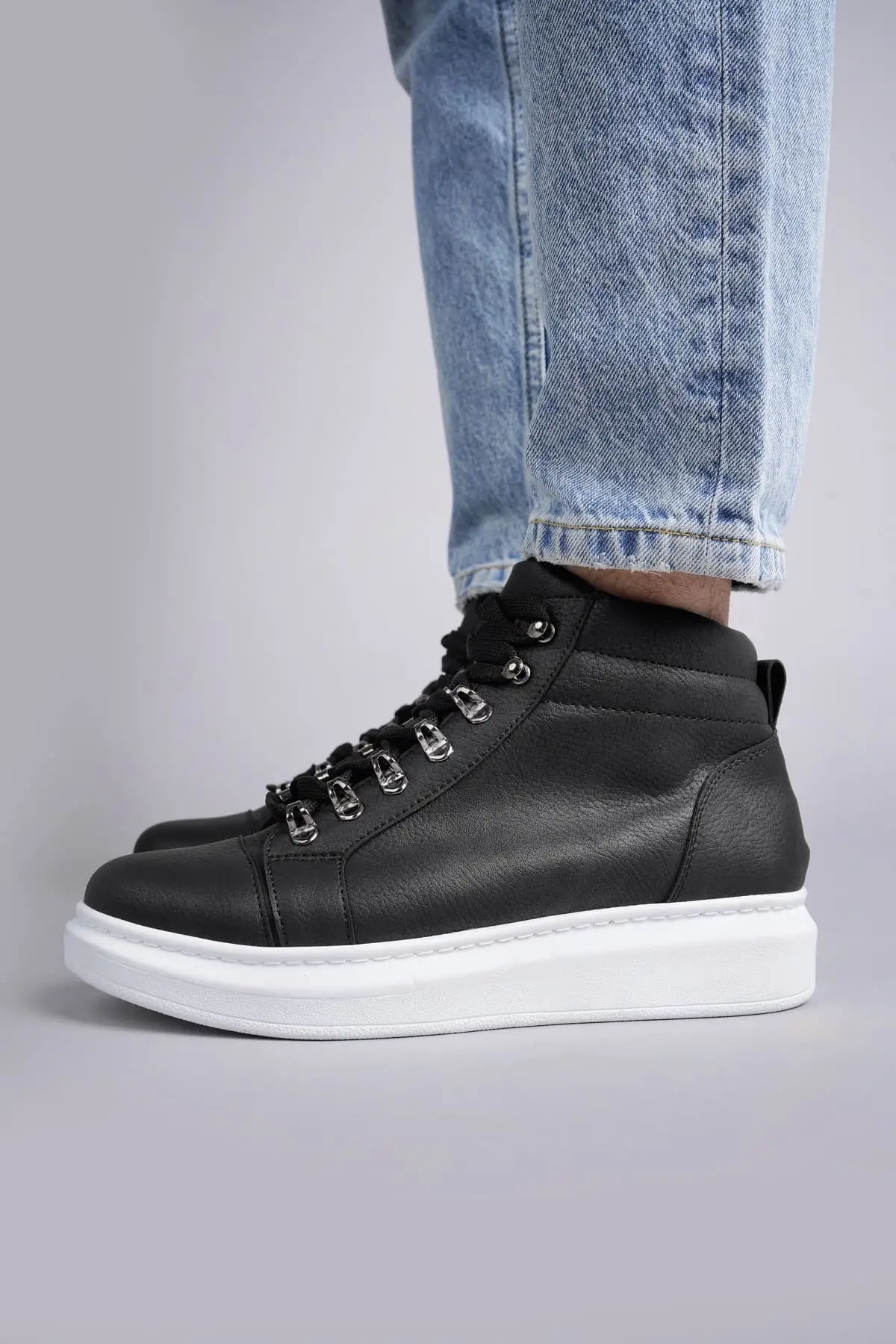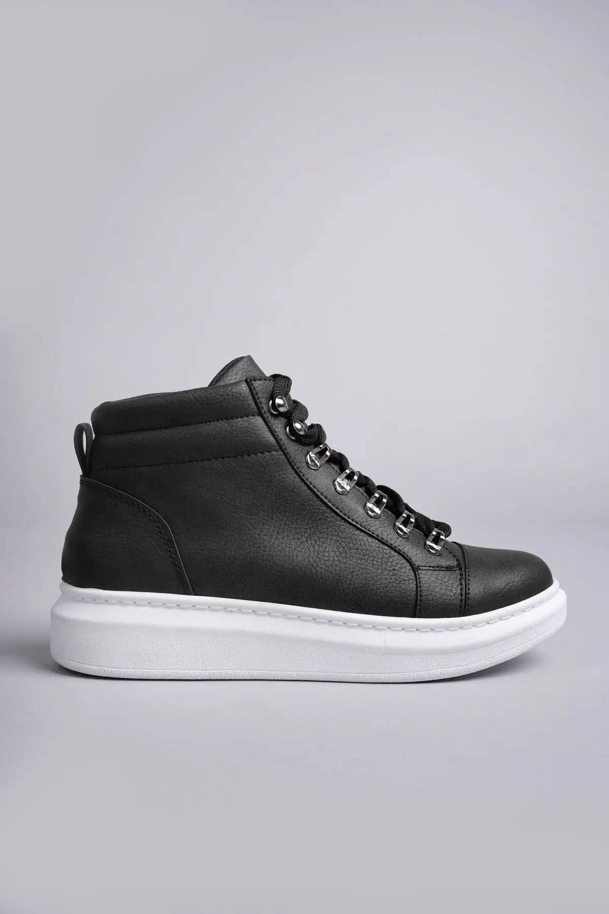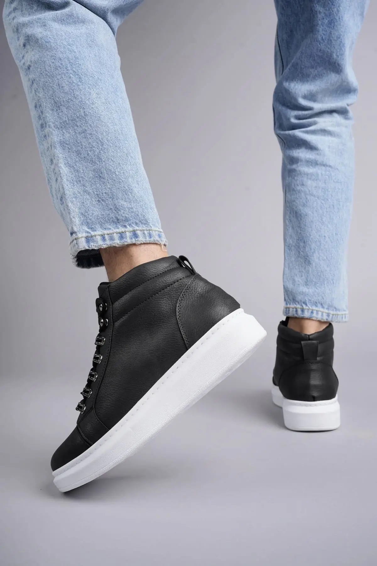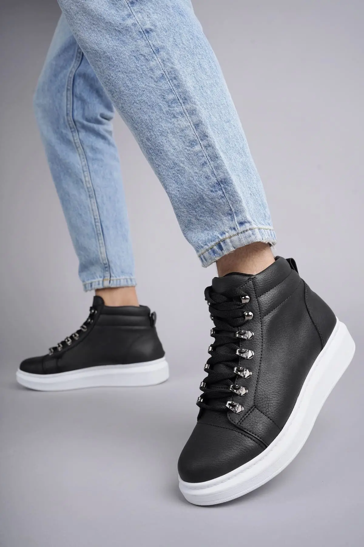 Tb-x500 Terzi Bey Beyaz Siyah Yüksek Taban Bağcıklı Günlük Erkek Ayakkabı