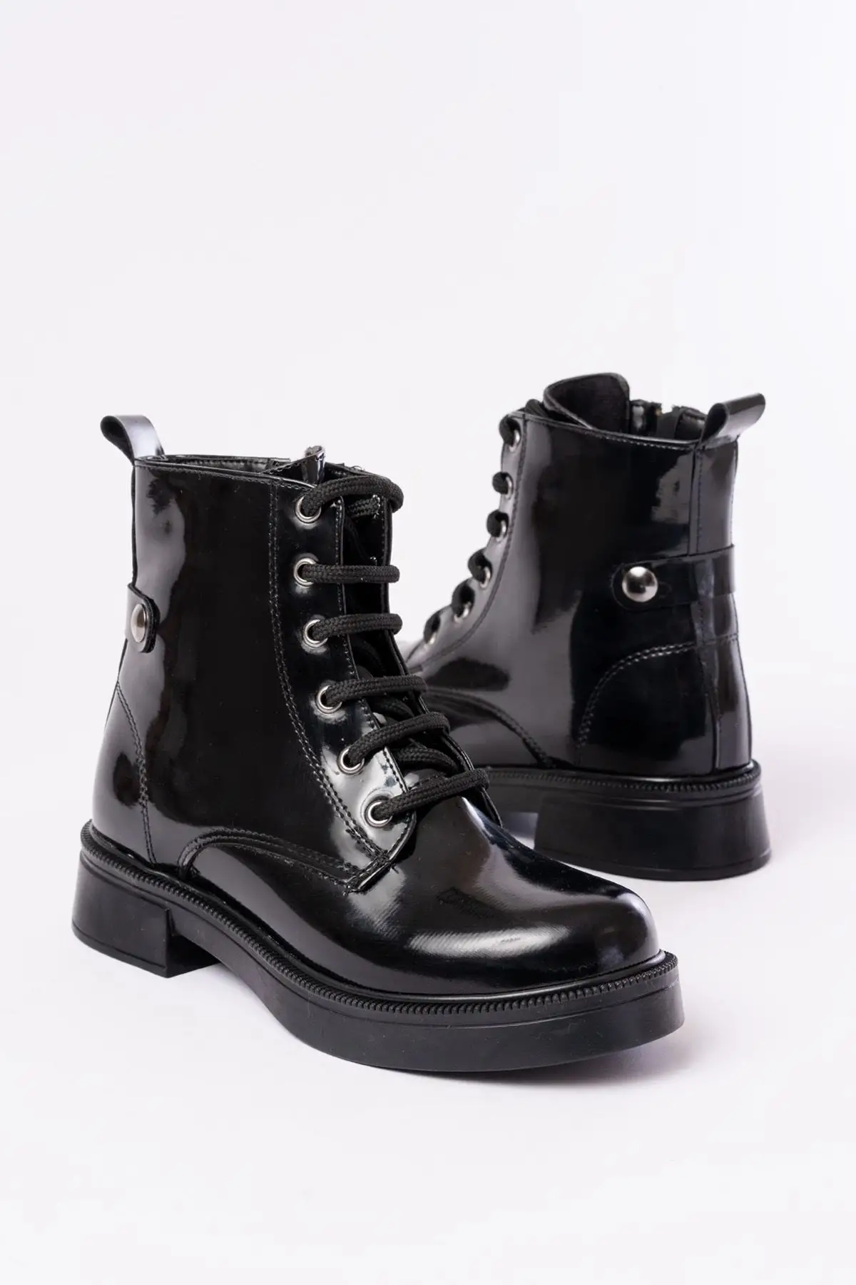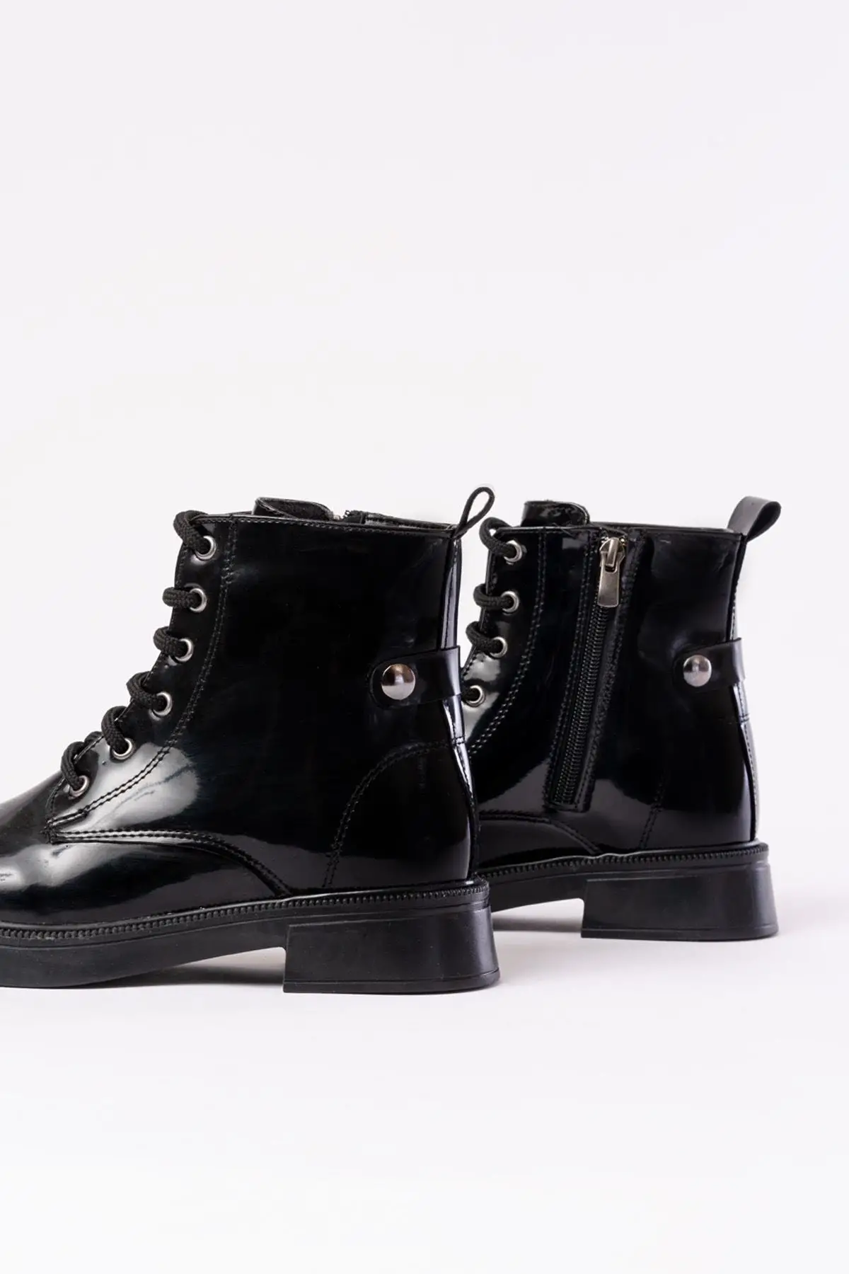 Siyah Rugan Bağcıklı Fermuarlı Günlük Kadın Bot