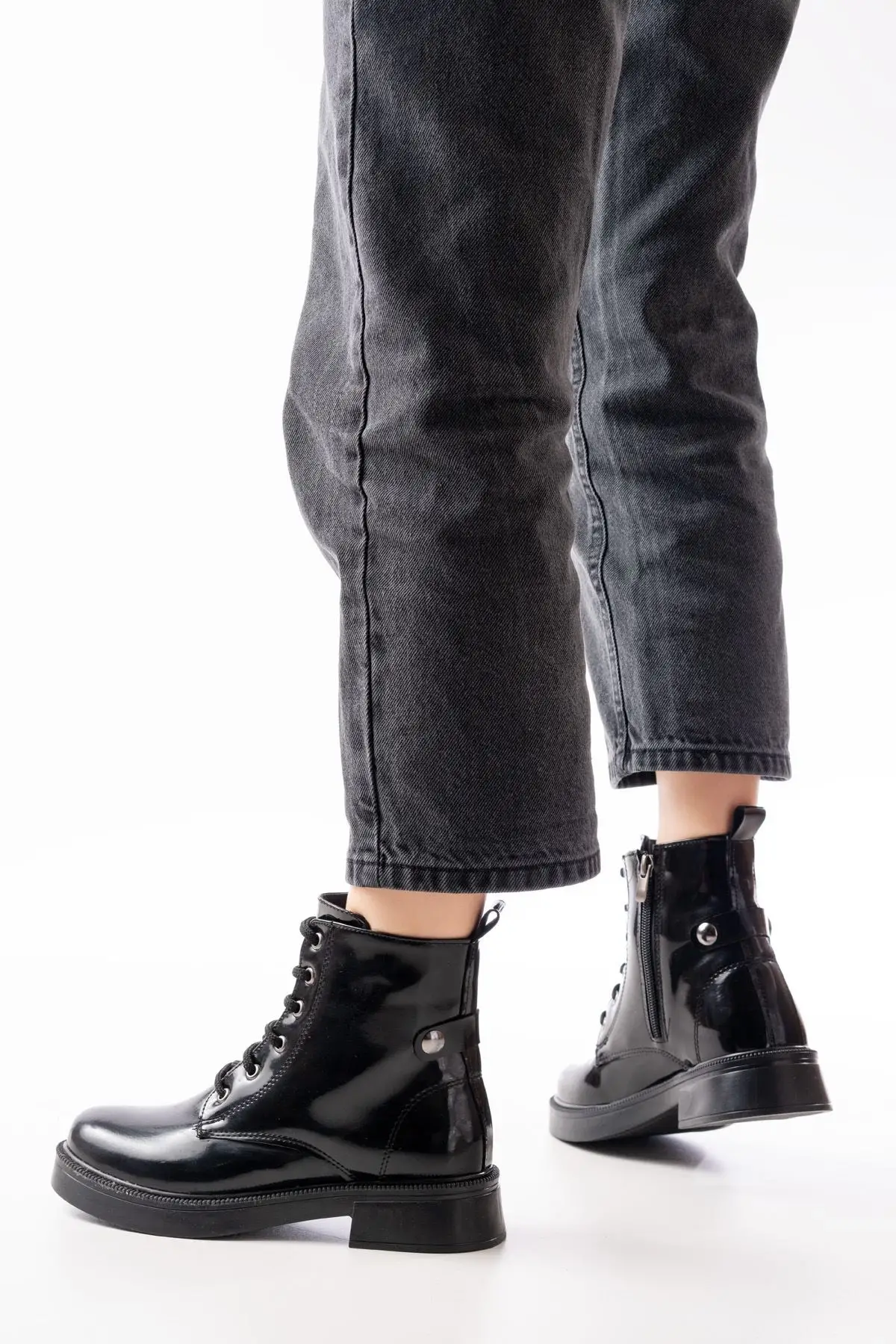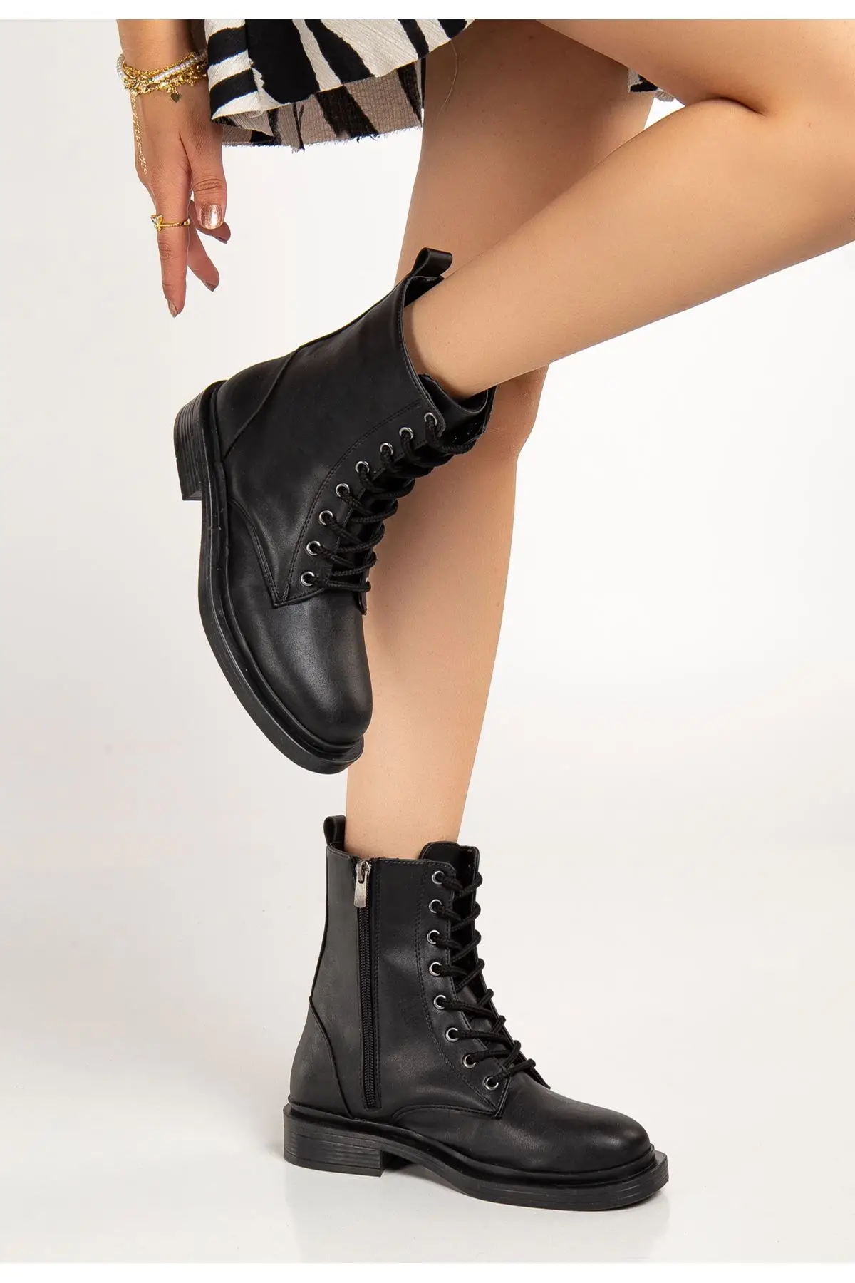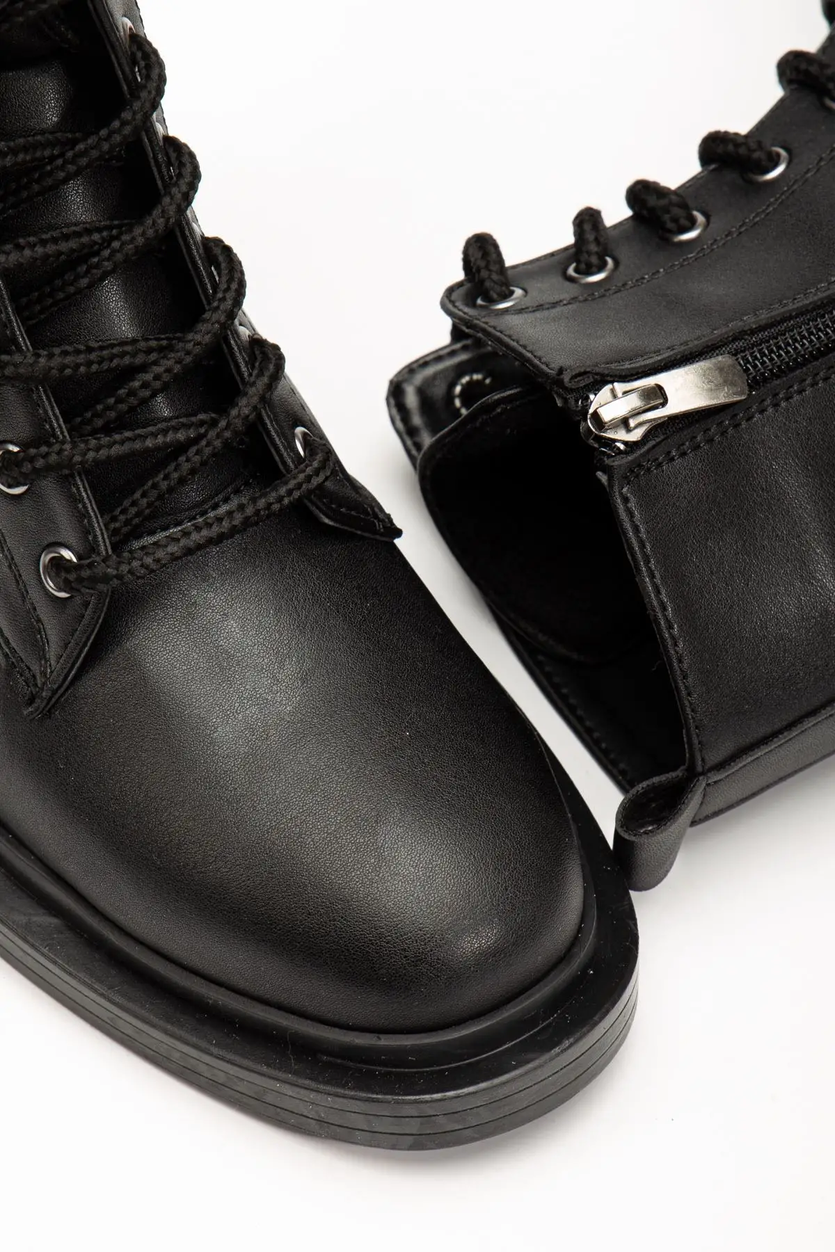 Siyah Bağcıklı Fermuarlı Günlük Kadın Bot