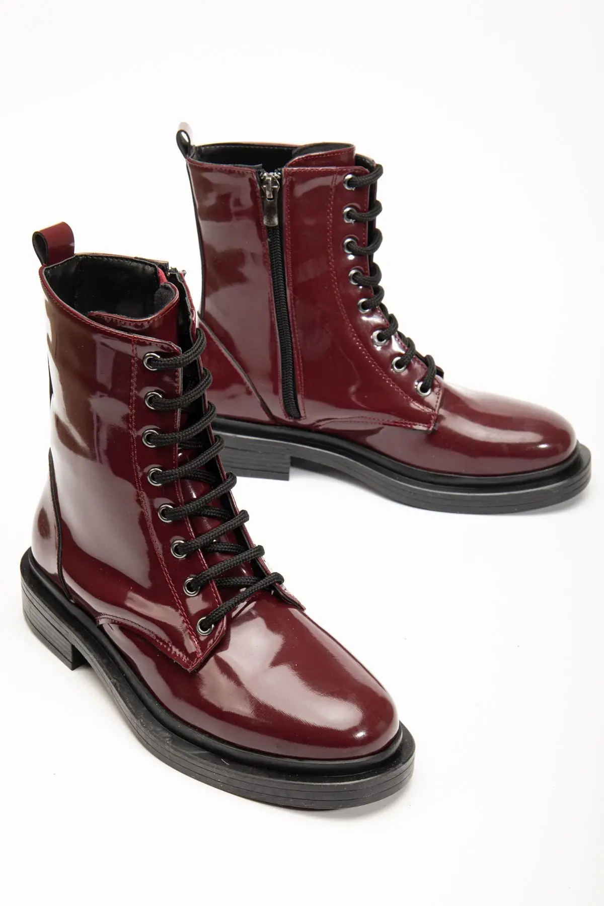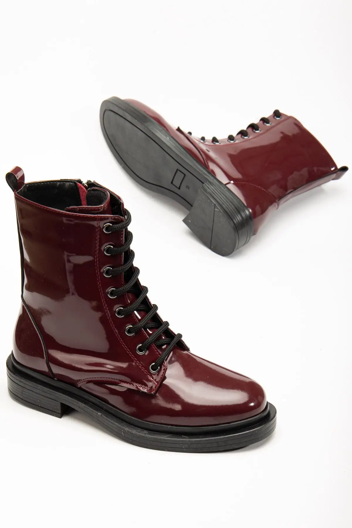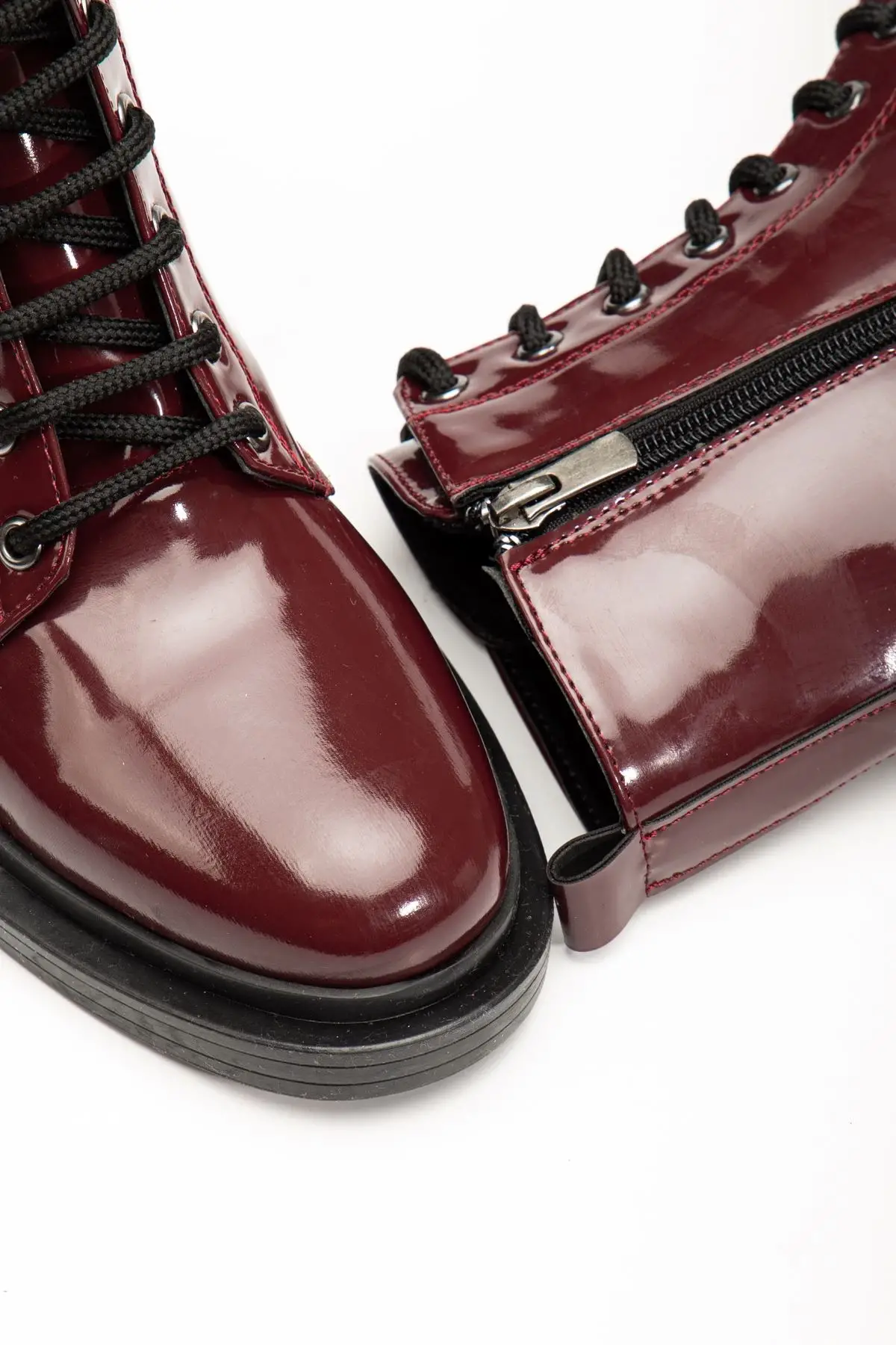 Bordo Rugan Bağcıklı Fermuarlı Günlük Kadın Bot
