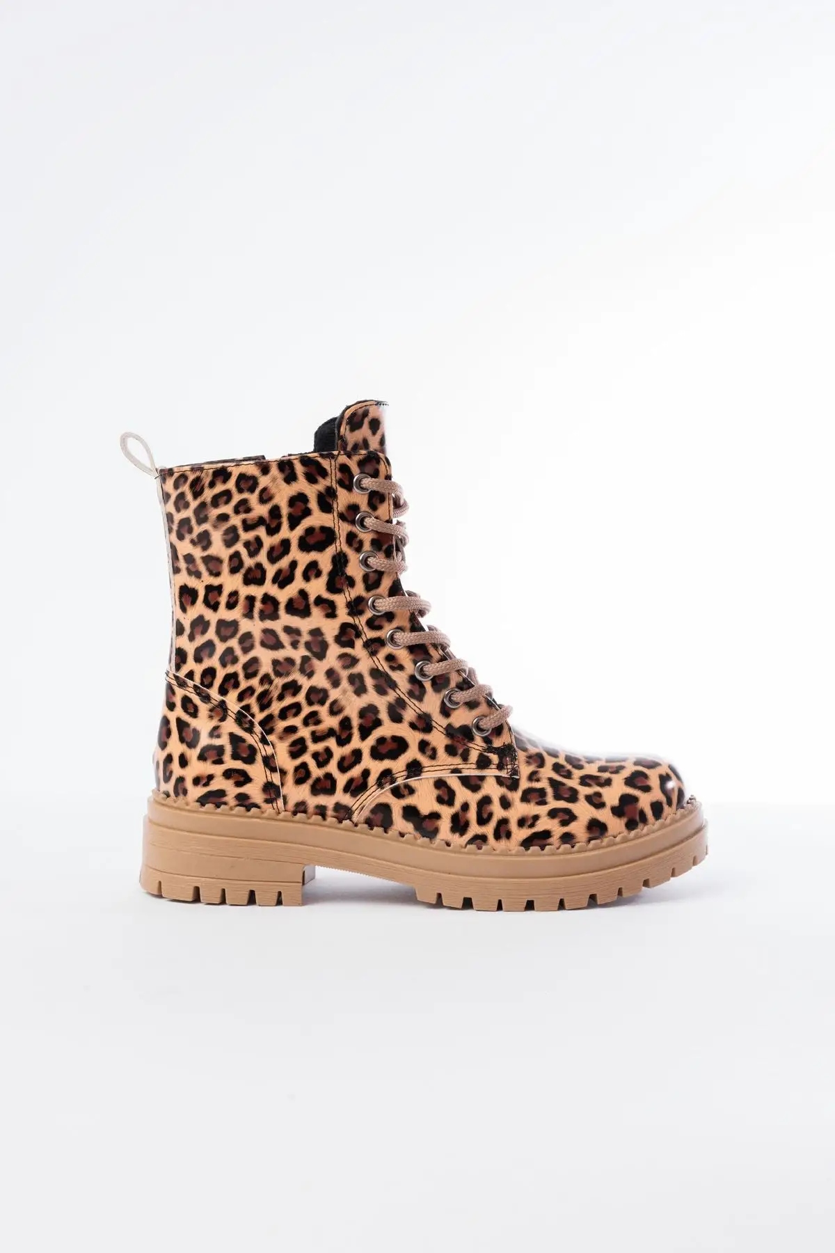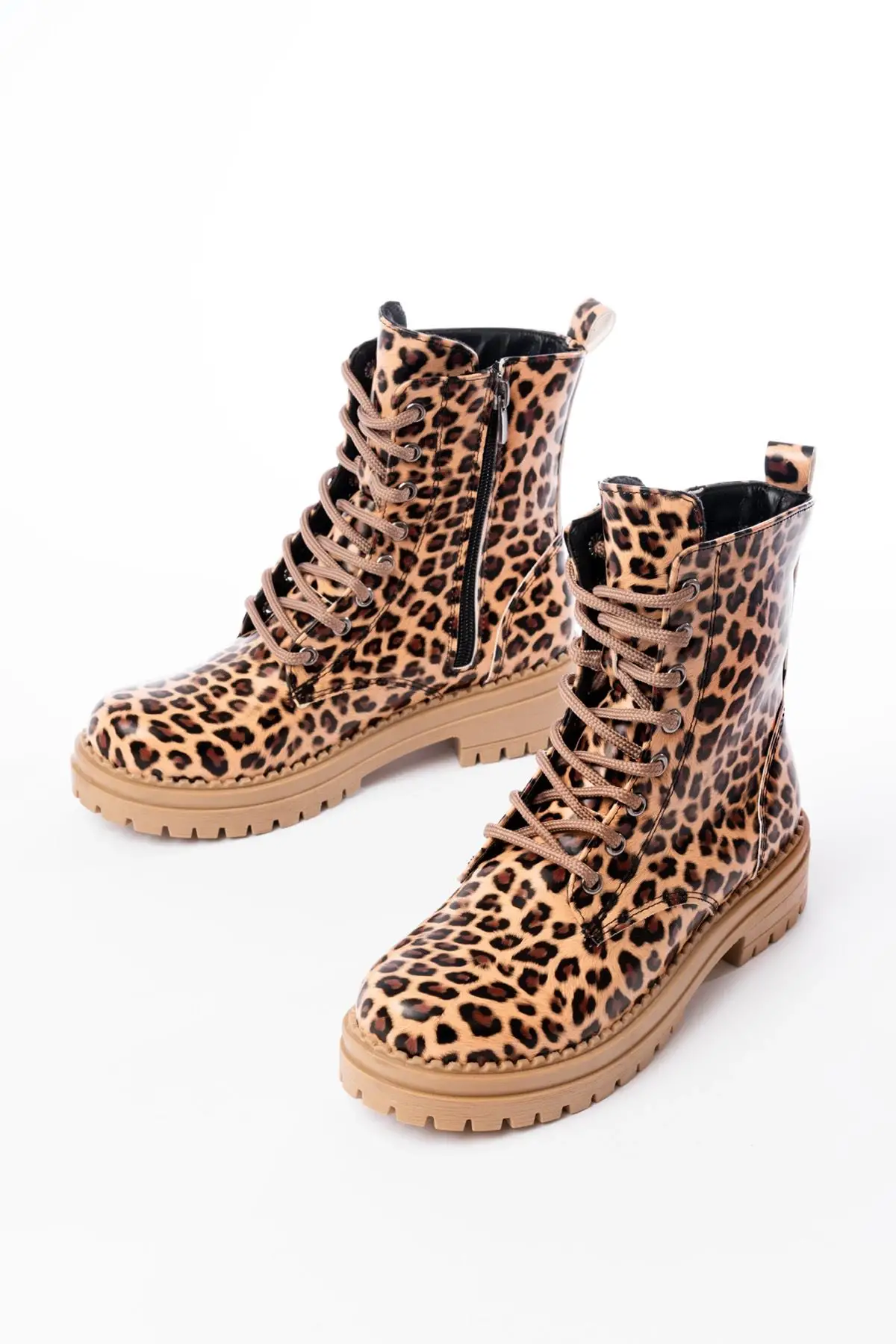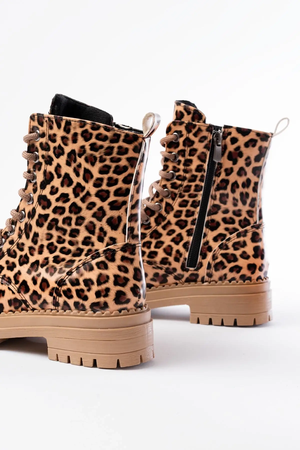 Parlak Leopar Bağcıklı Fermuarlı Günlük Kadın Bot