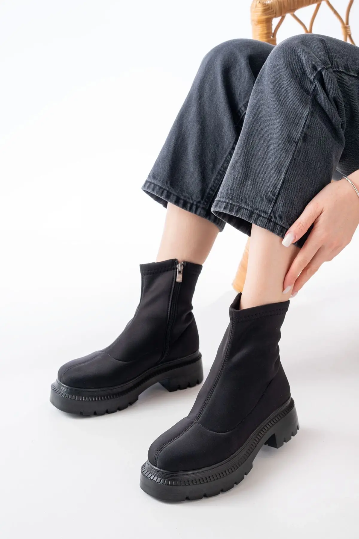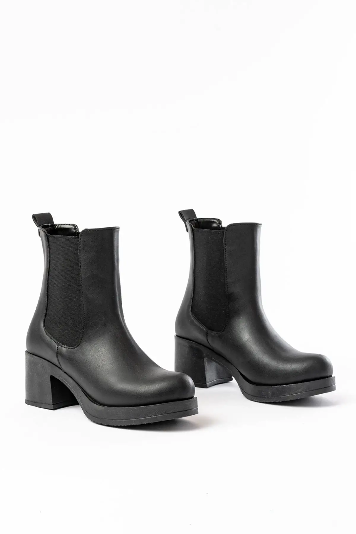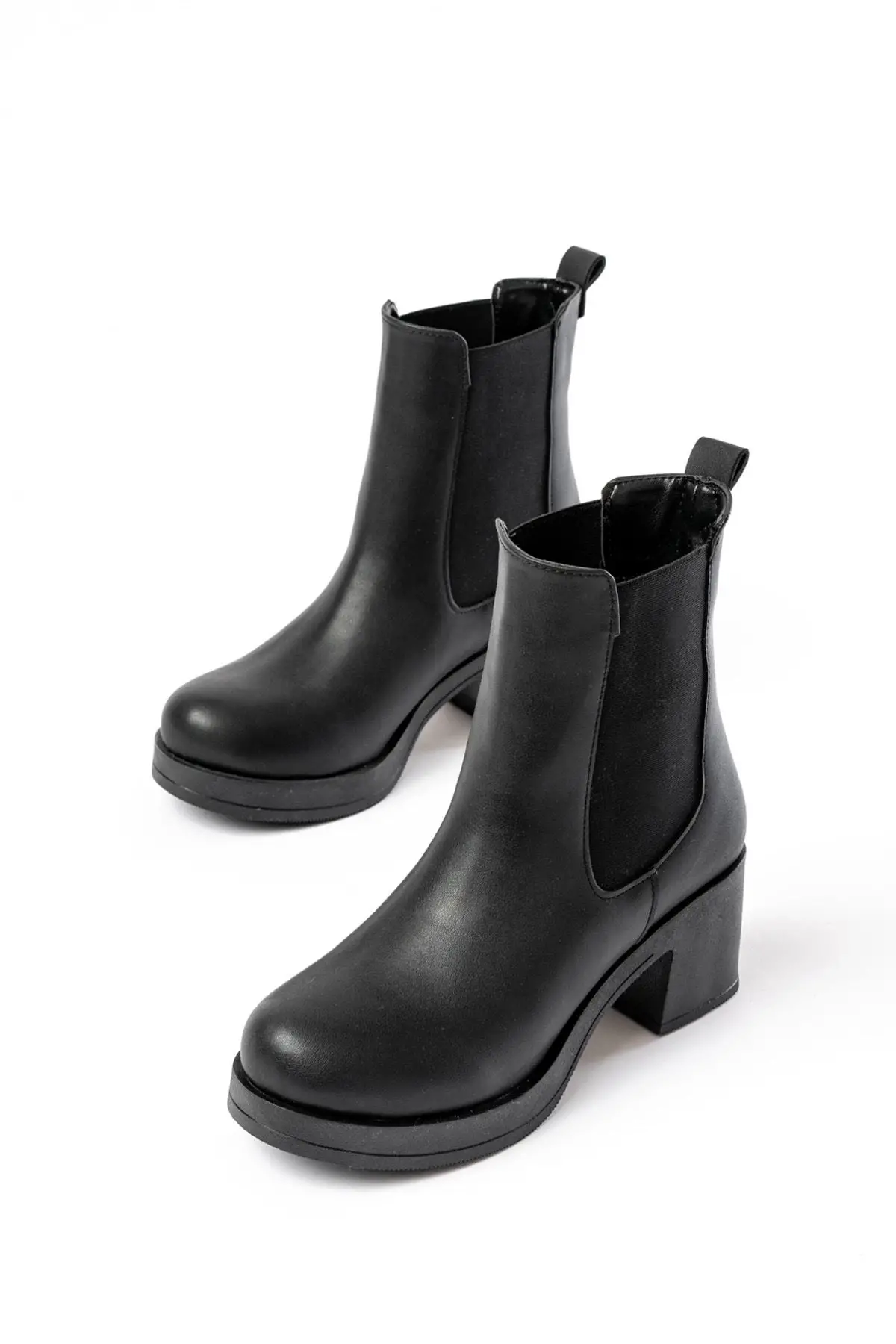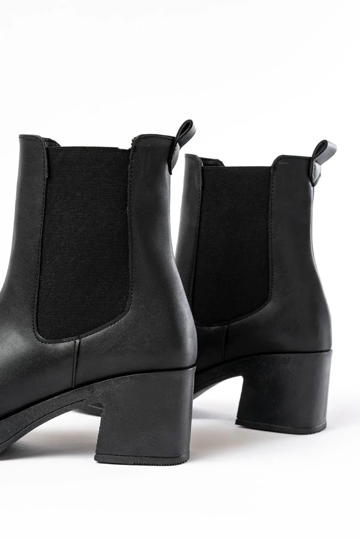 Siyah Lastikli Fermuarlı Kalın Topuklu Günlük Kadın Bot