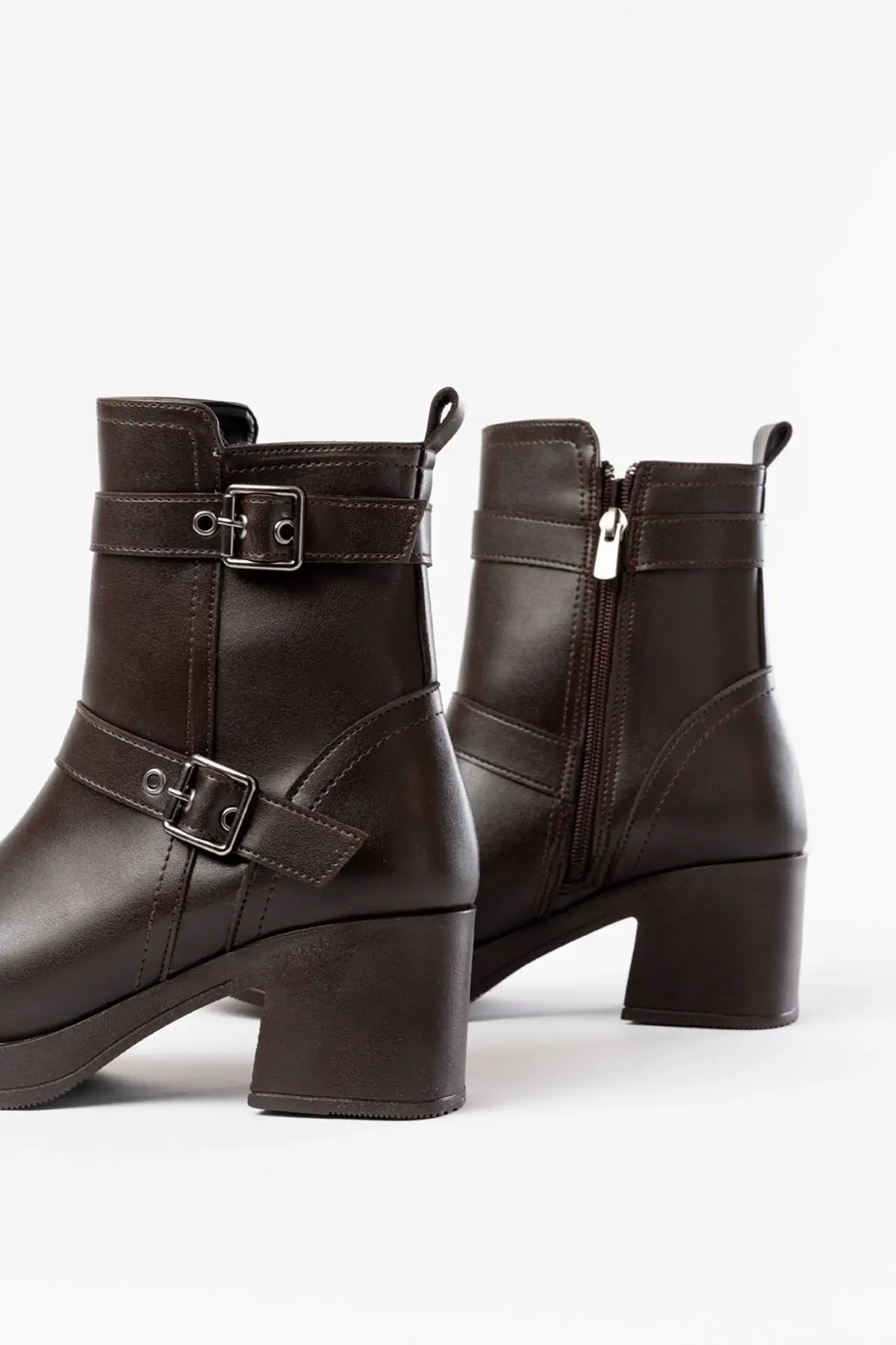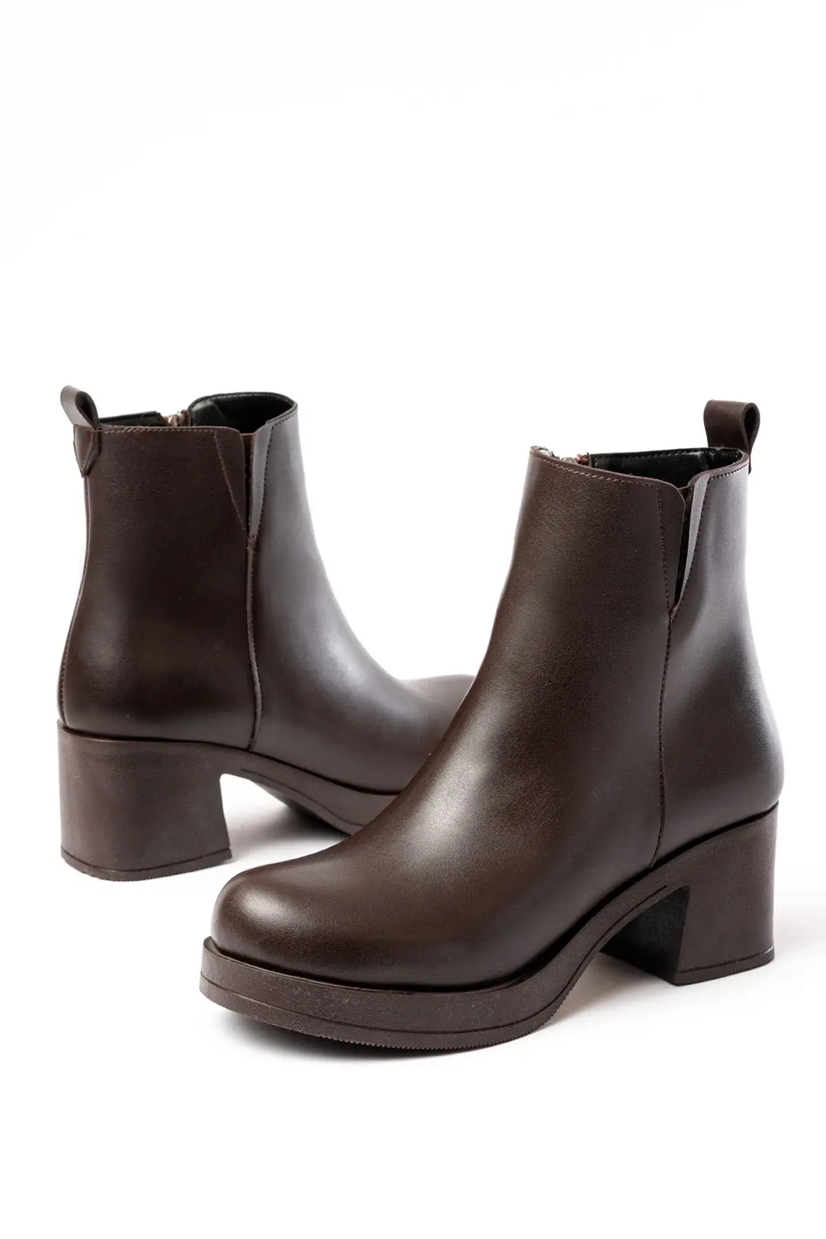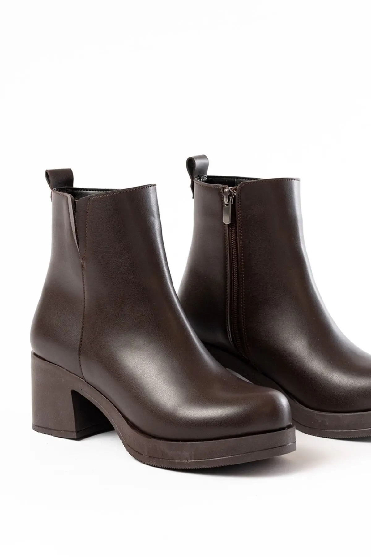Kahverengi Topuklu Fermuarlı Günlük Kadın Bot