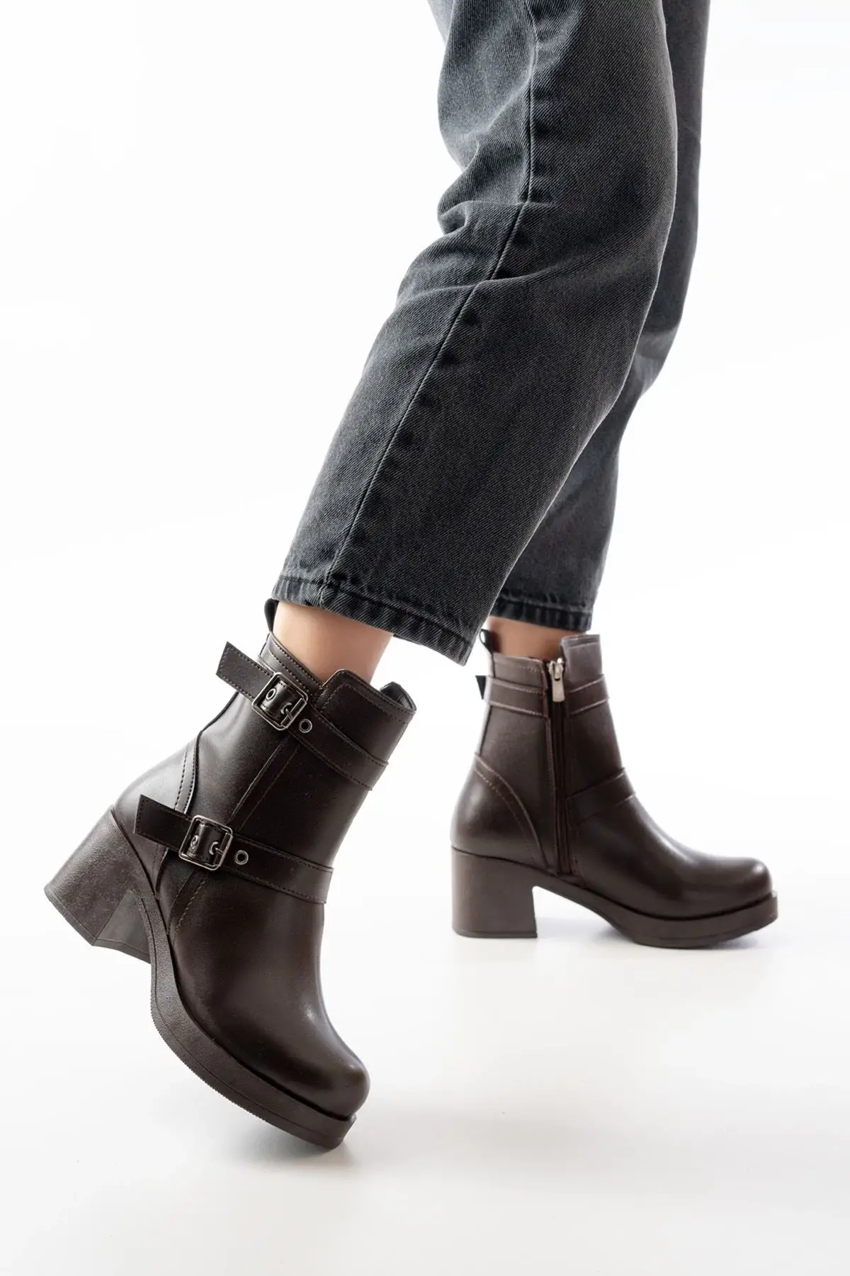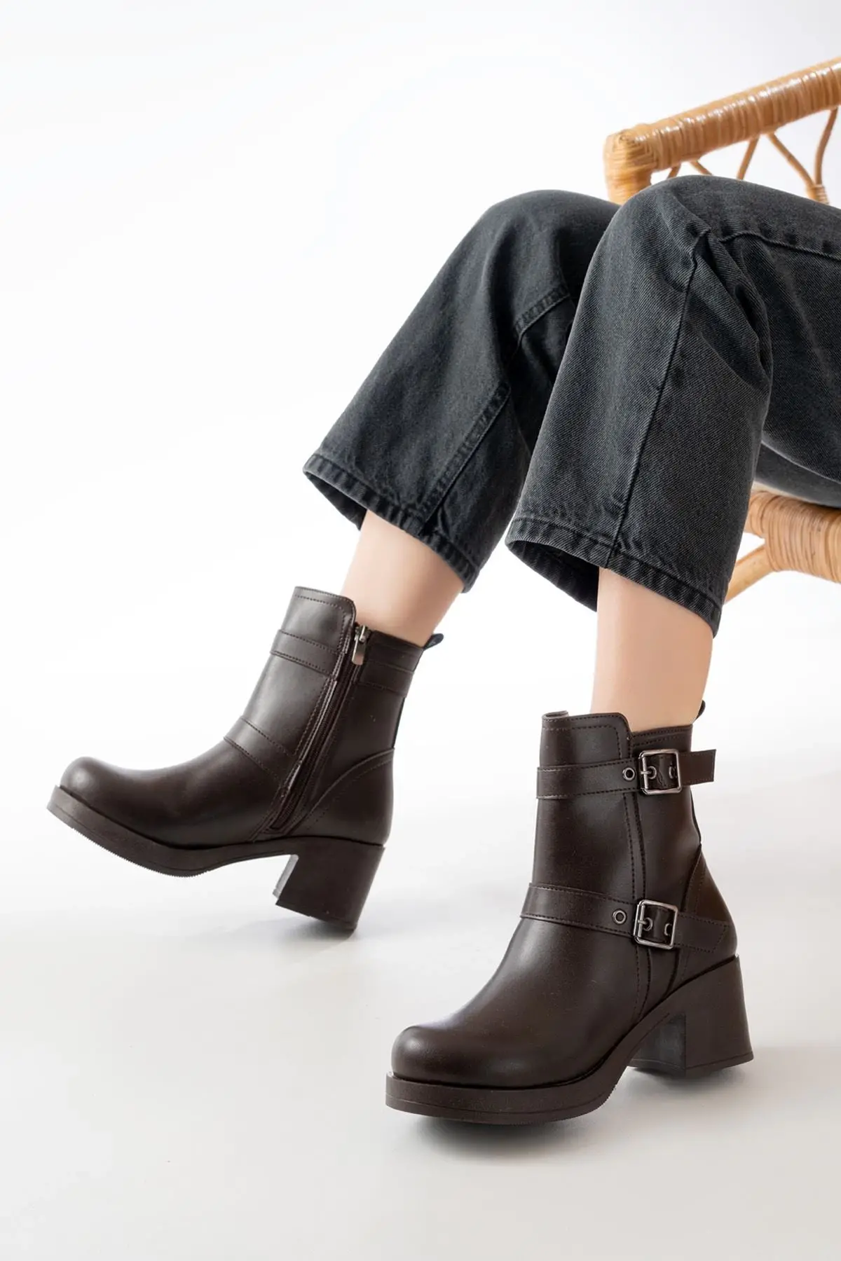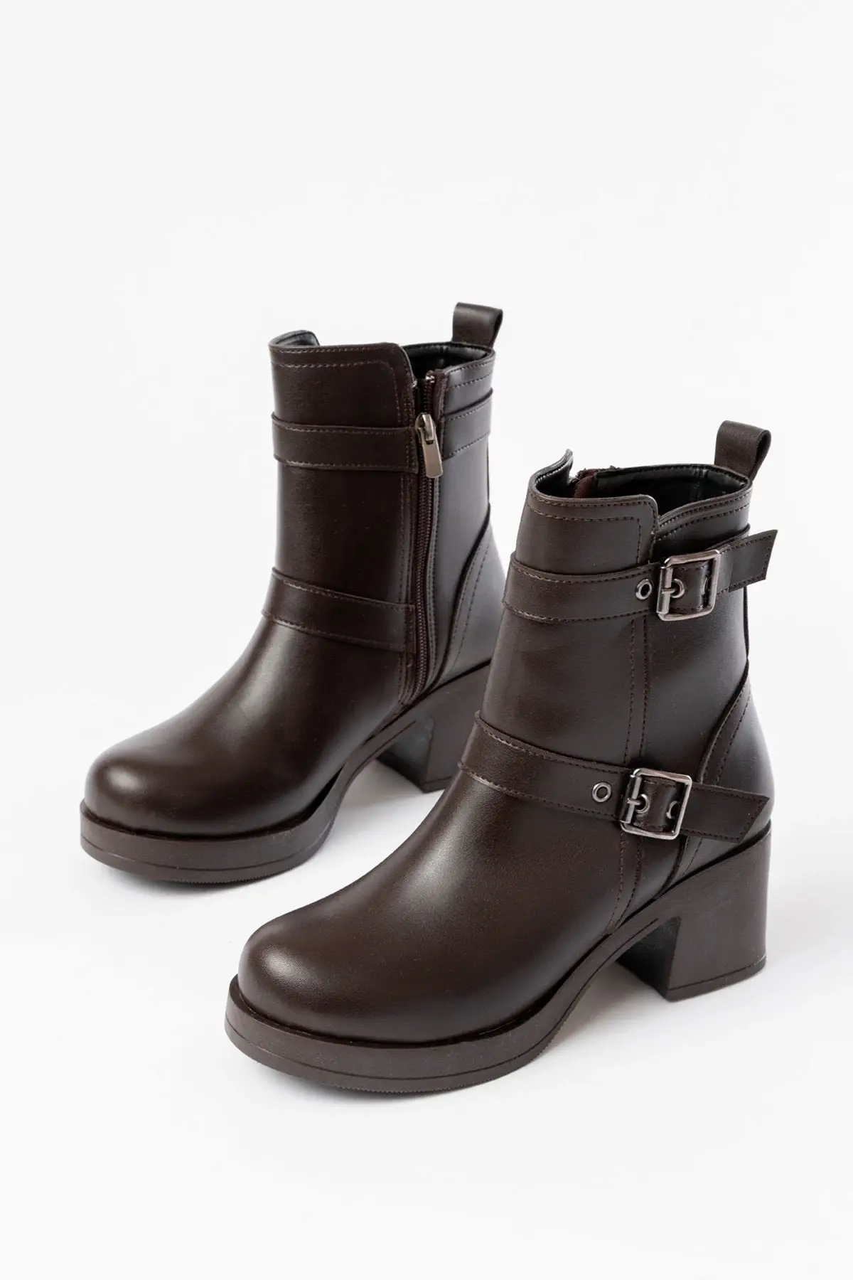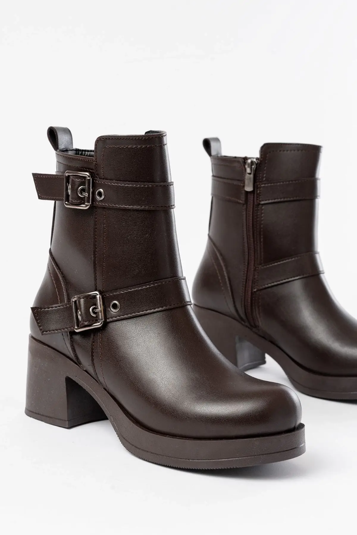 Kahverengi Topuklu Fermuarlı Günlük Kadın Bot