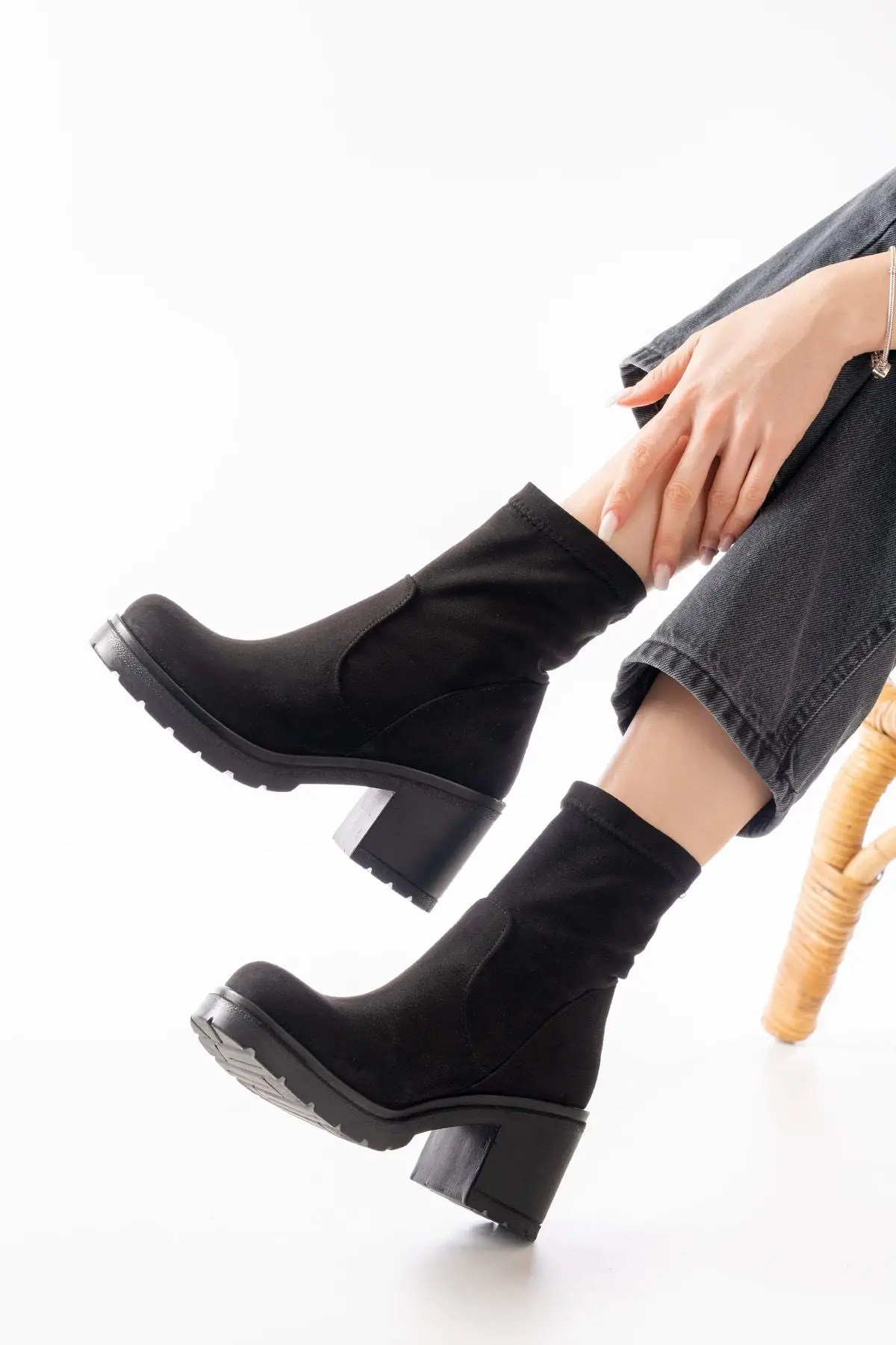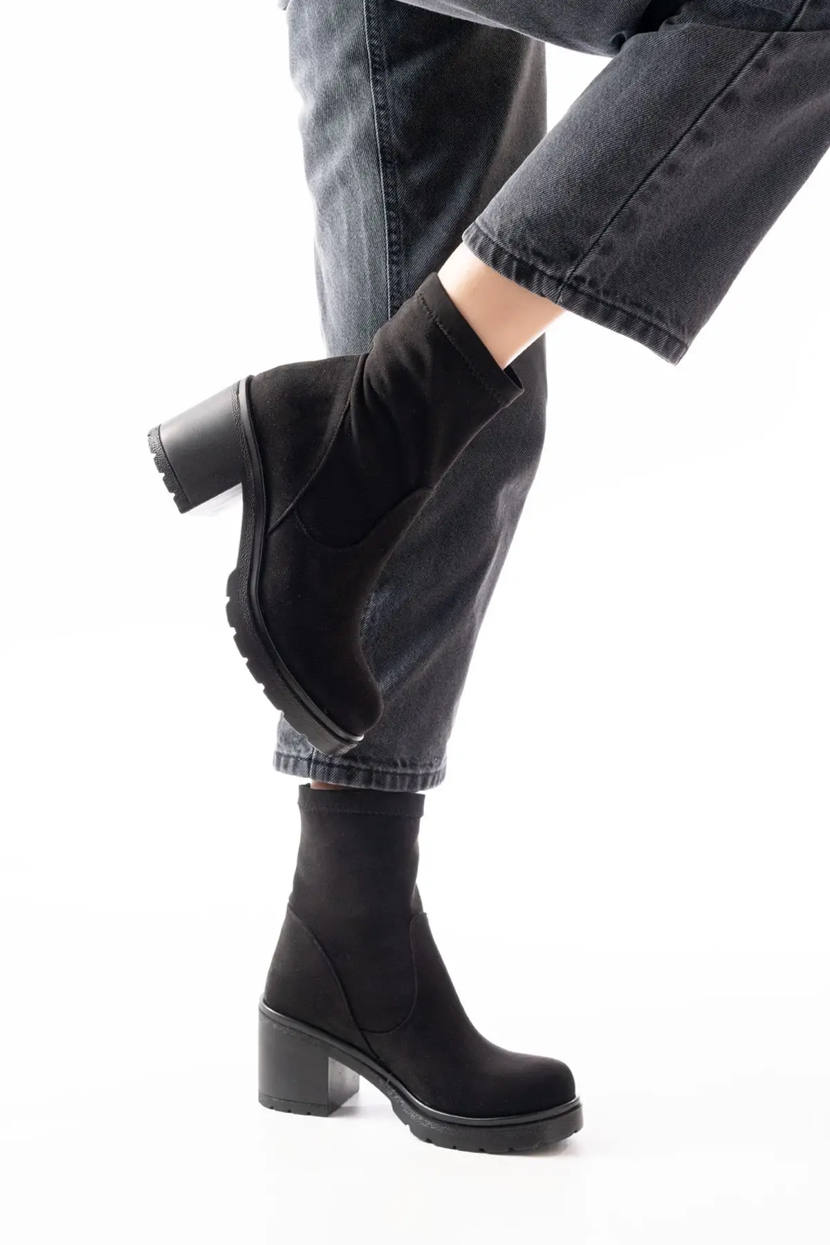 Siyah Süet Günlük Kalın Topuklu Kadın Bot