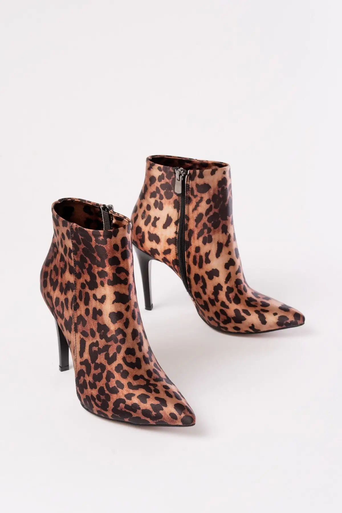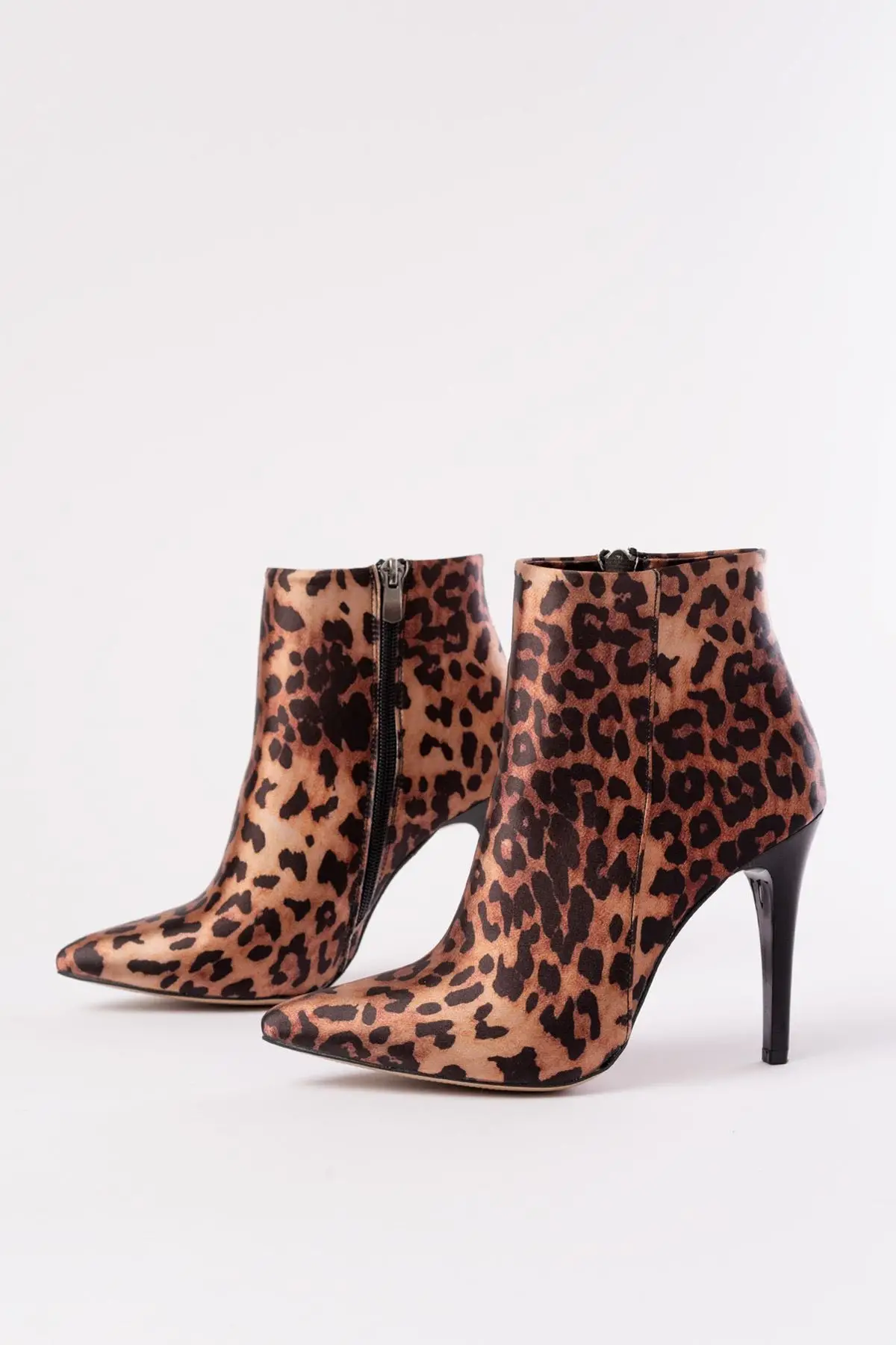 Leopar Yüksek İnce Topuklu Fermuarlı Kadın Bot