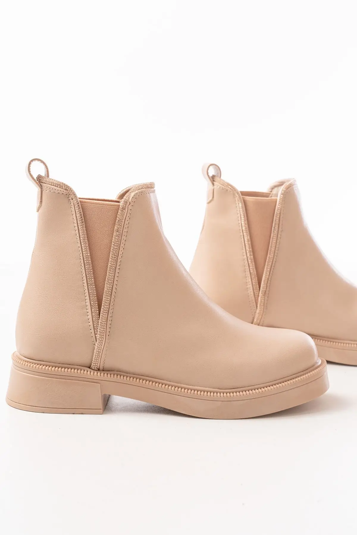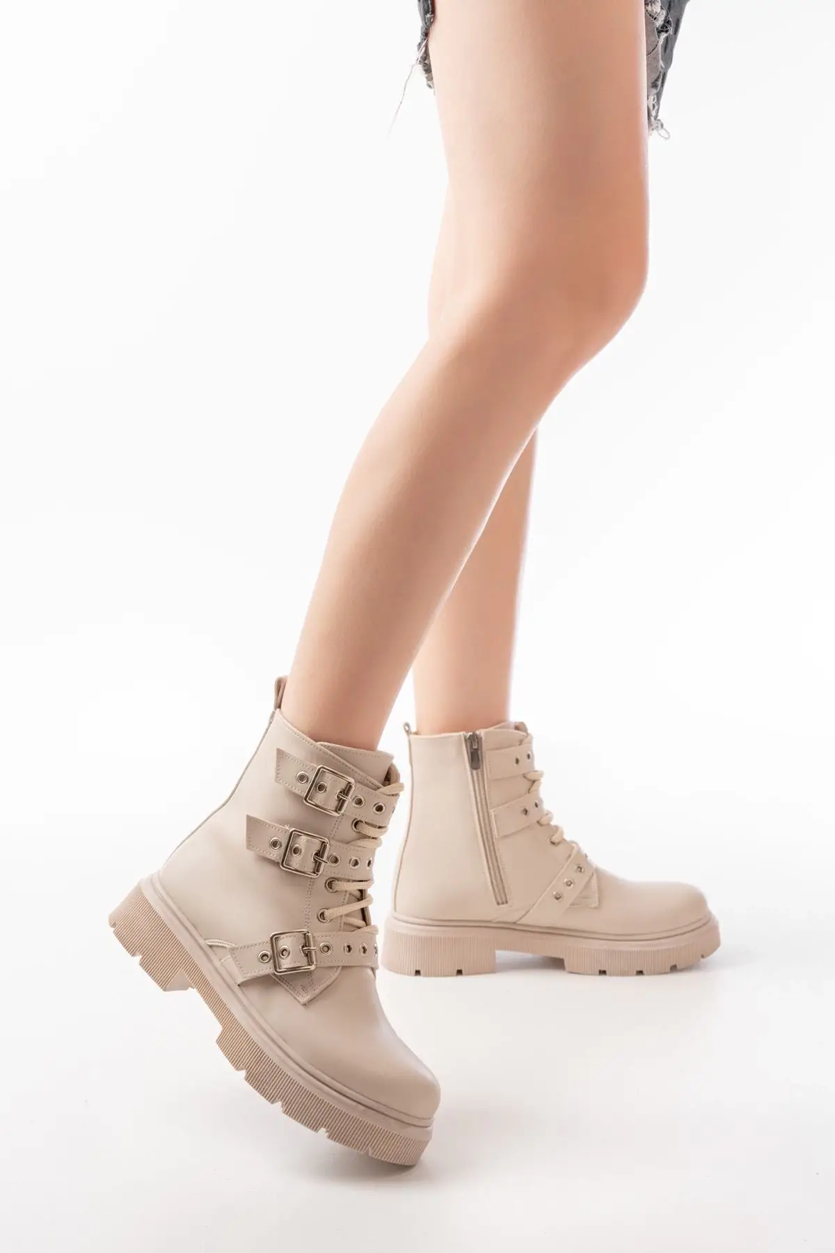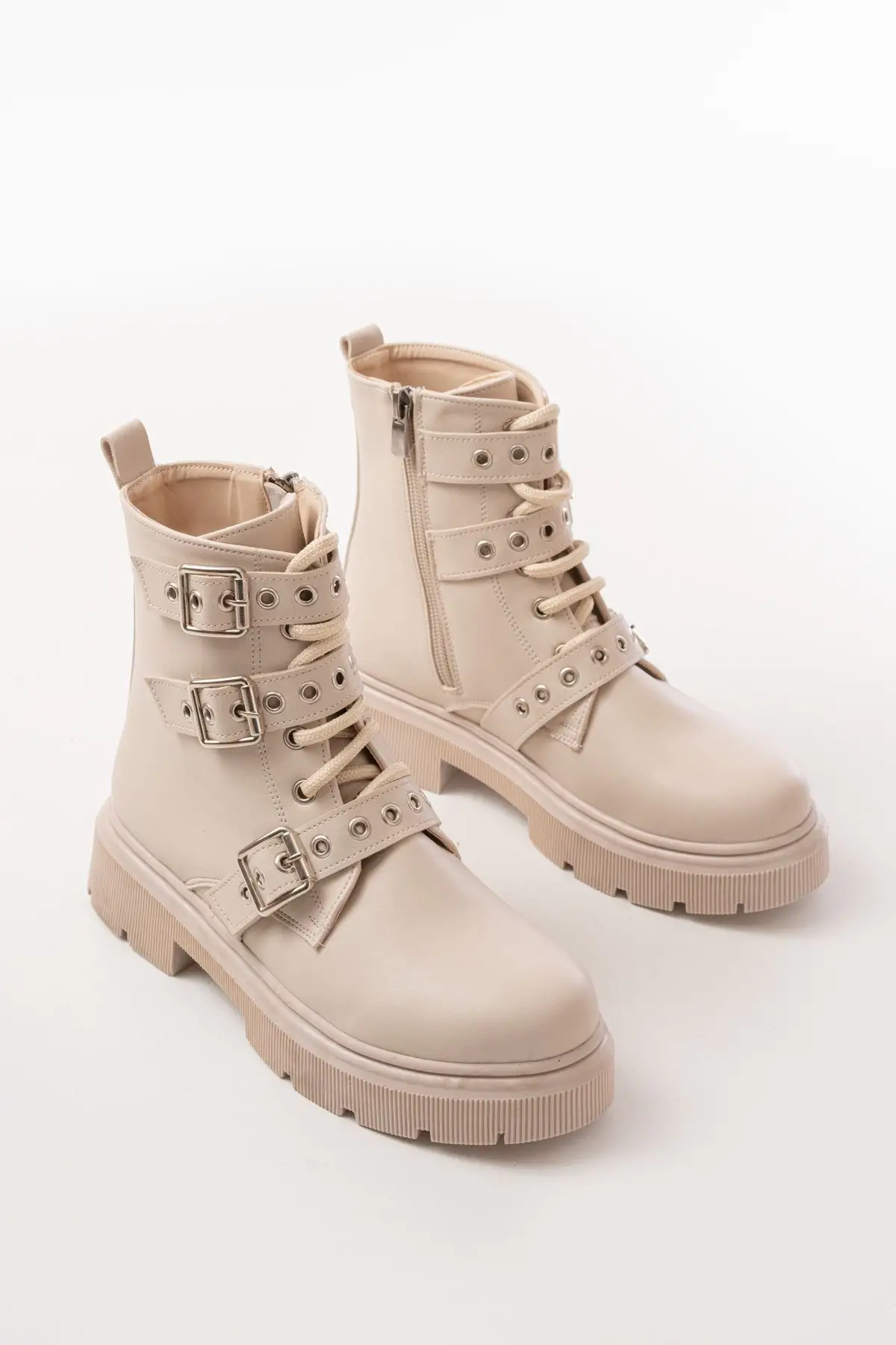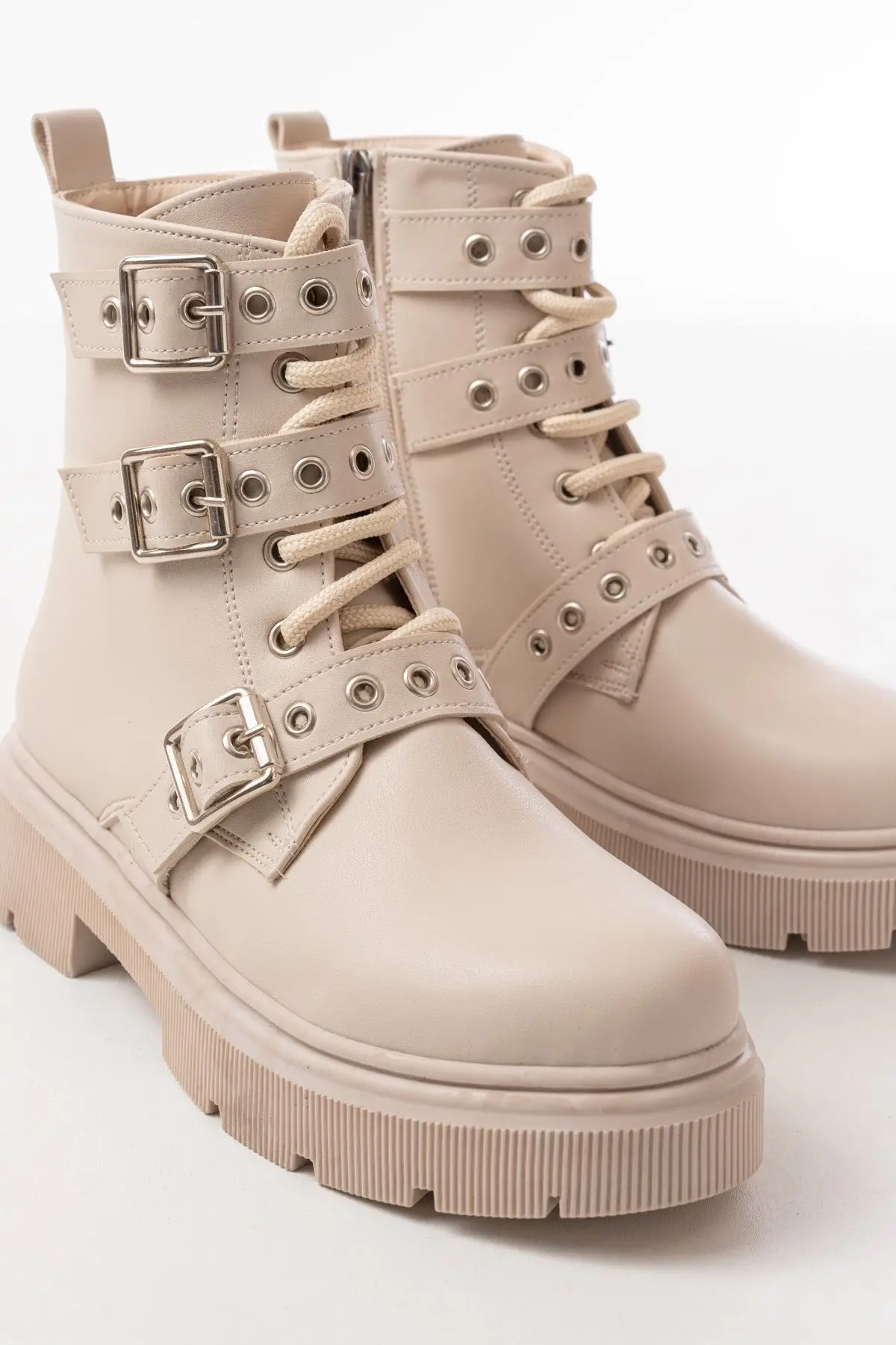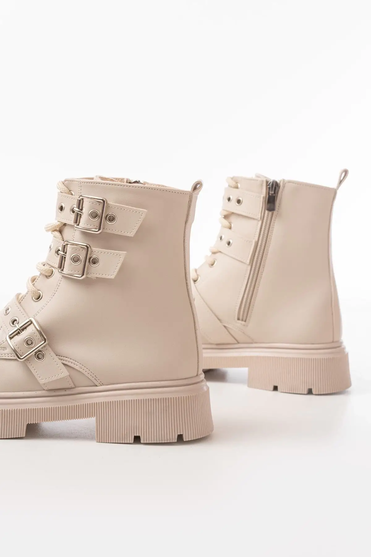 Bej Toka Aksesuarlı Fermuarlı Günlük Kadın Bot