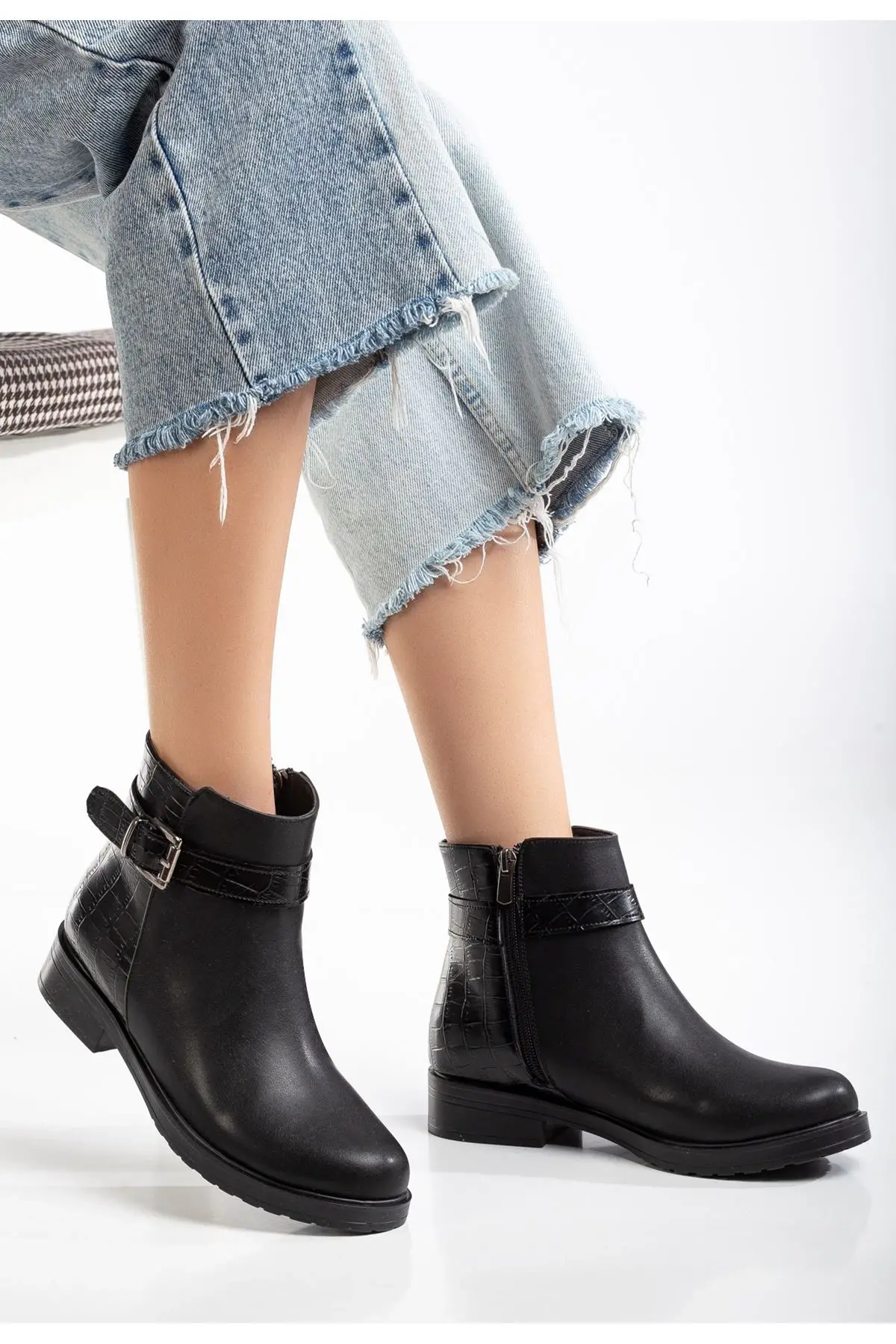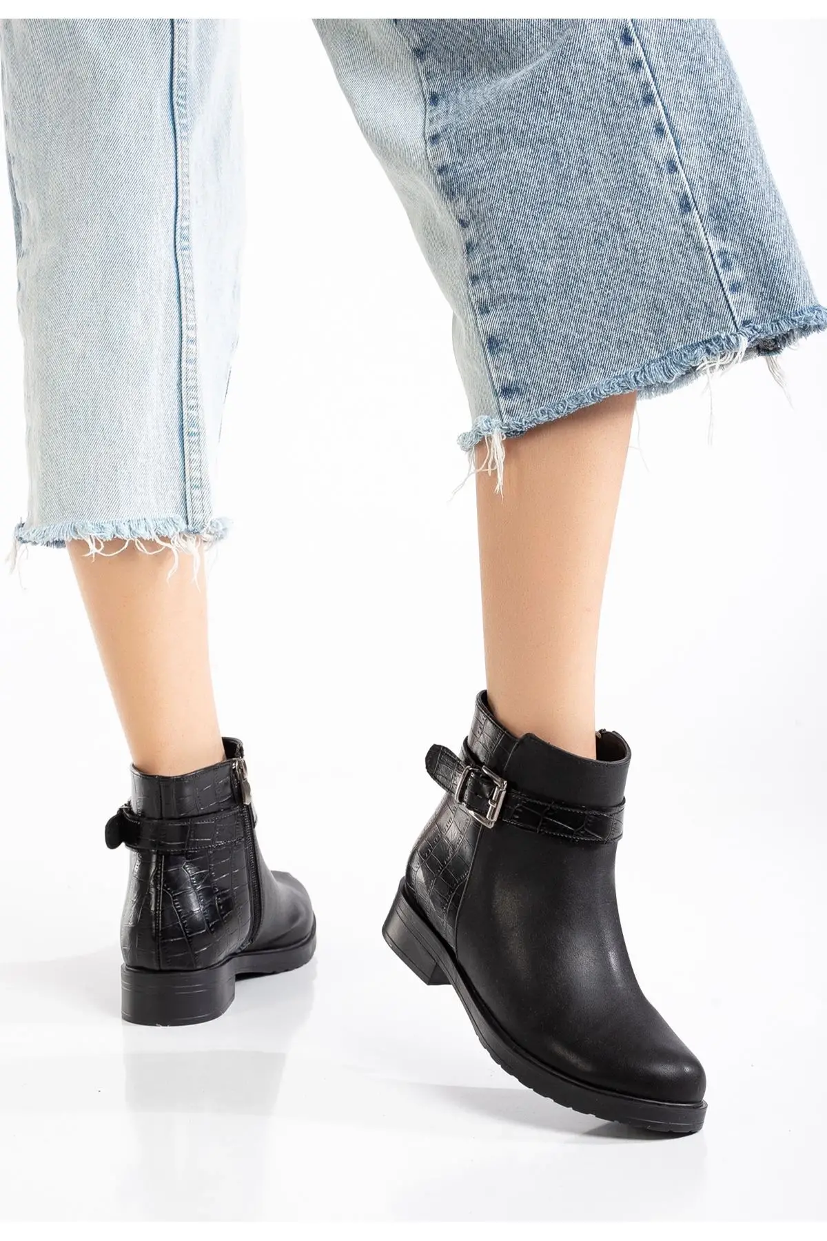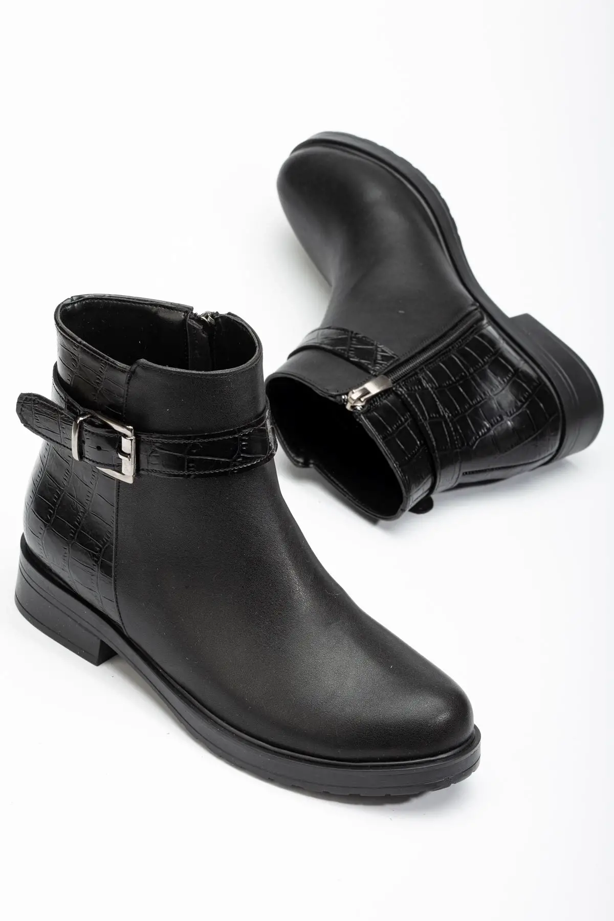 Siyaha Kroko Toka Aksesuarlı Fermuarlı Günlük Kadın Bot