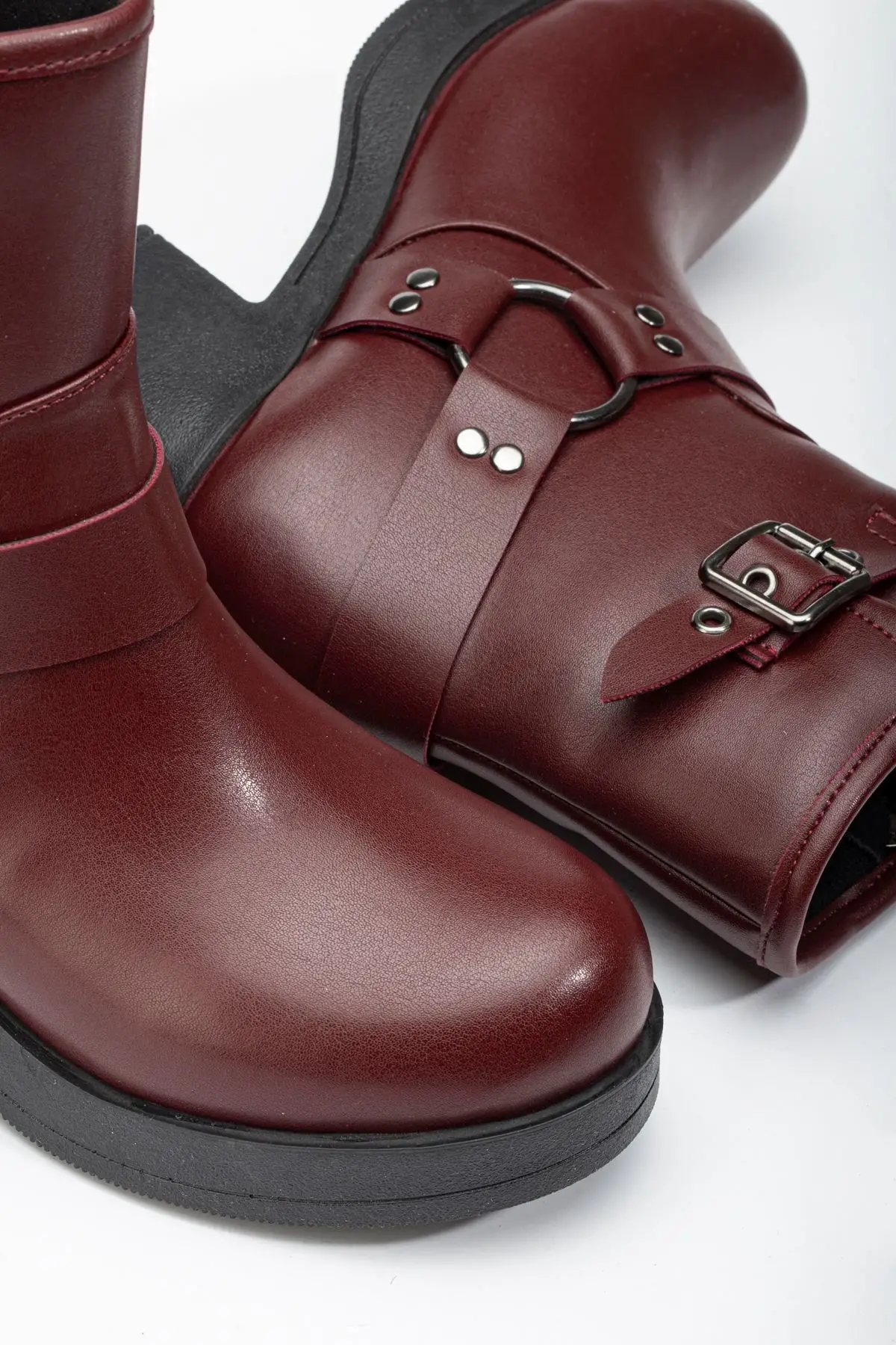 Bordo Toka Aksesuarlı Fermuarlı Günlük Kadın Çizme