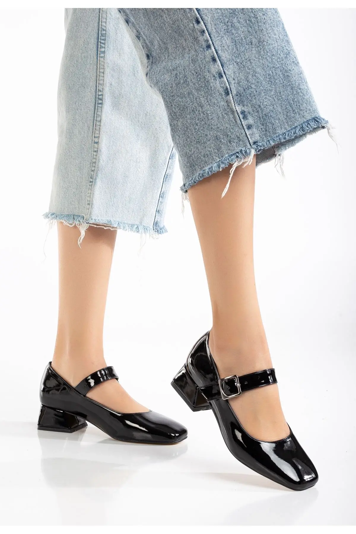 Siyah Rugan Günlük 7 Cm Topuklu Bayan Ayakkabı