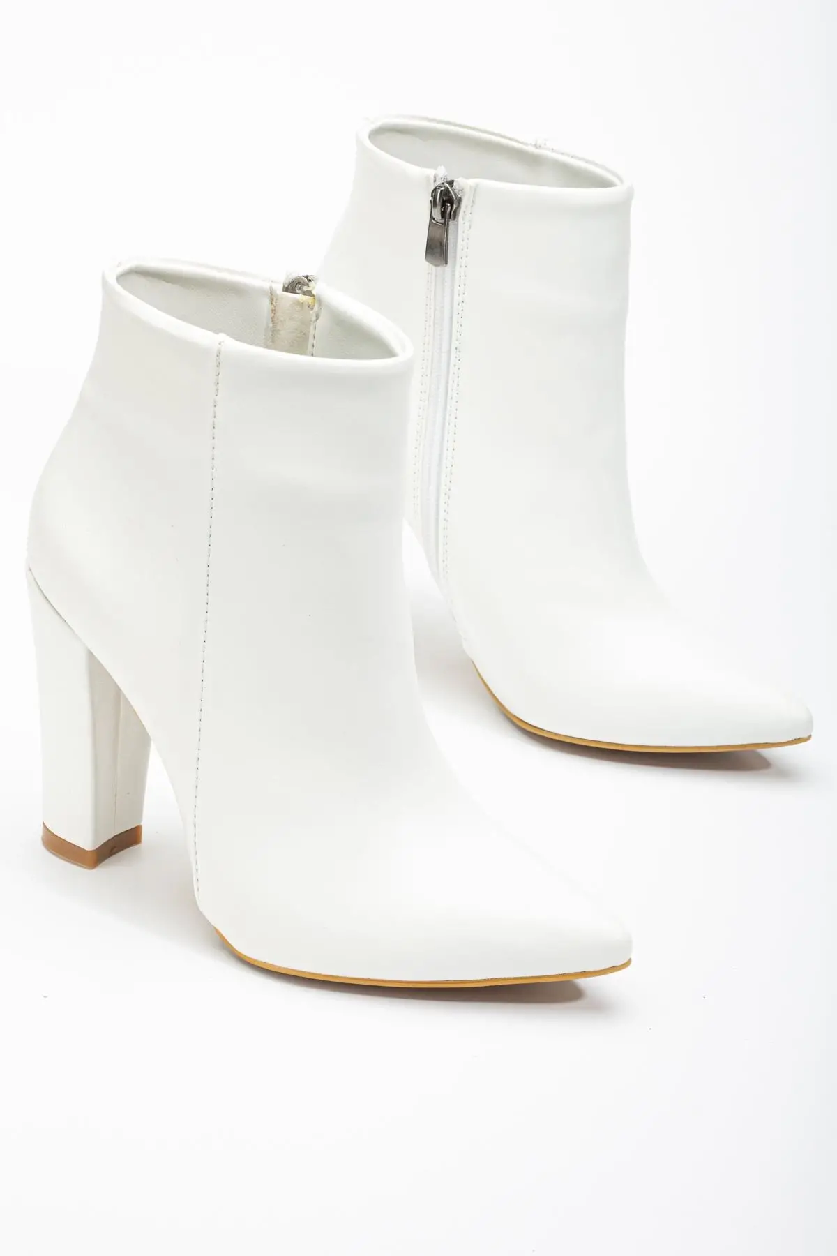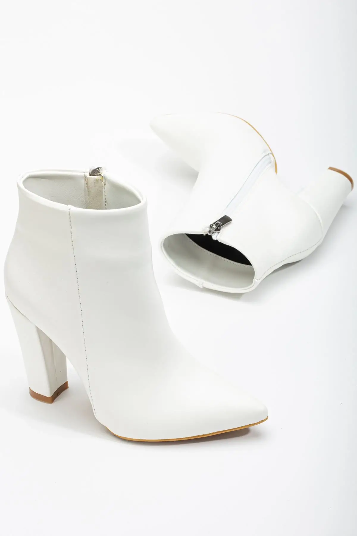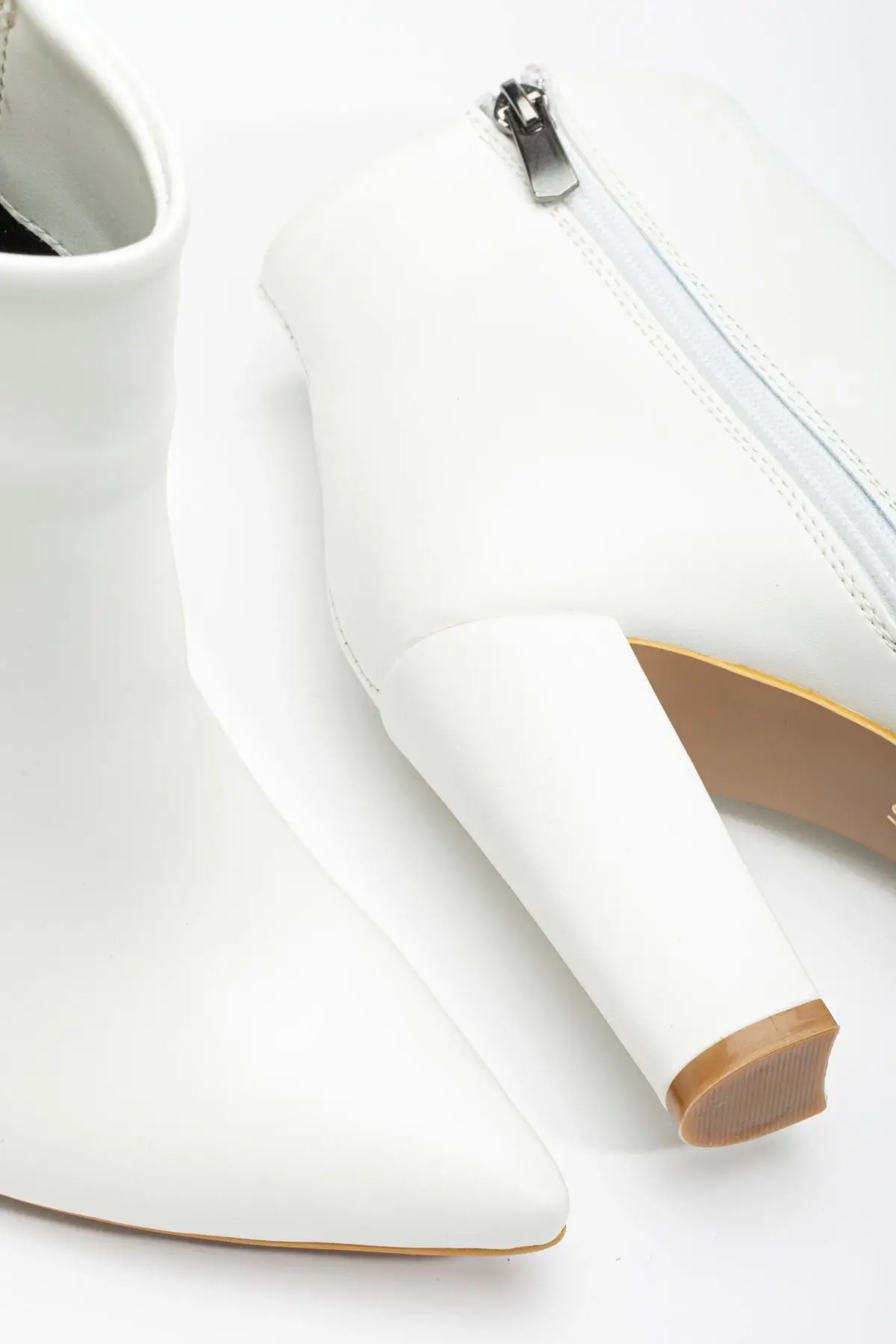 Beyaz Yüksek Kalın Topuklu Fermuarlı Kadın Bot