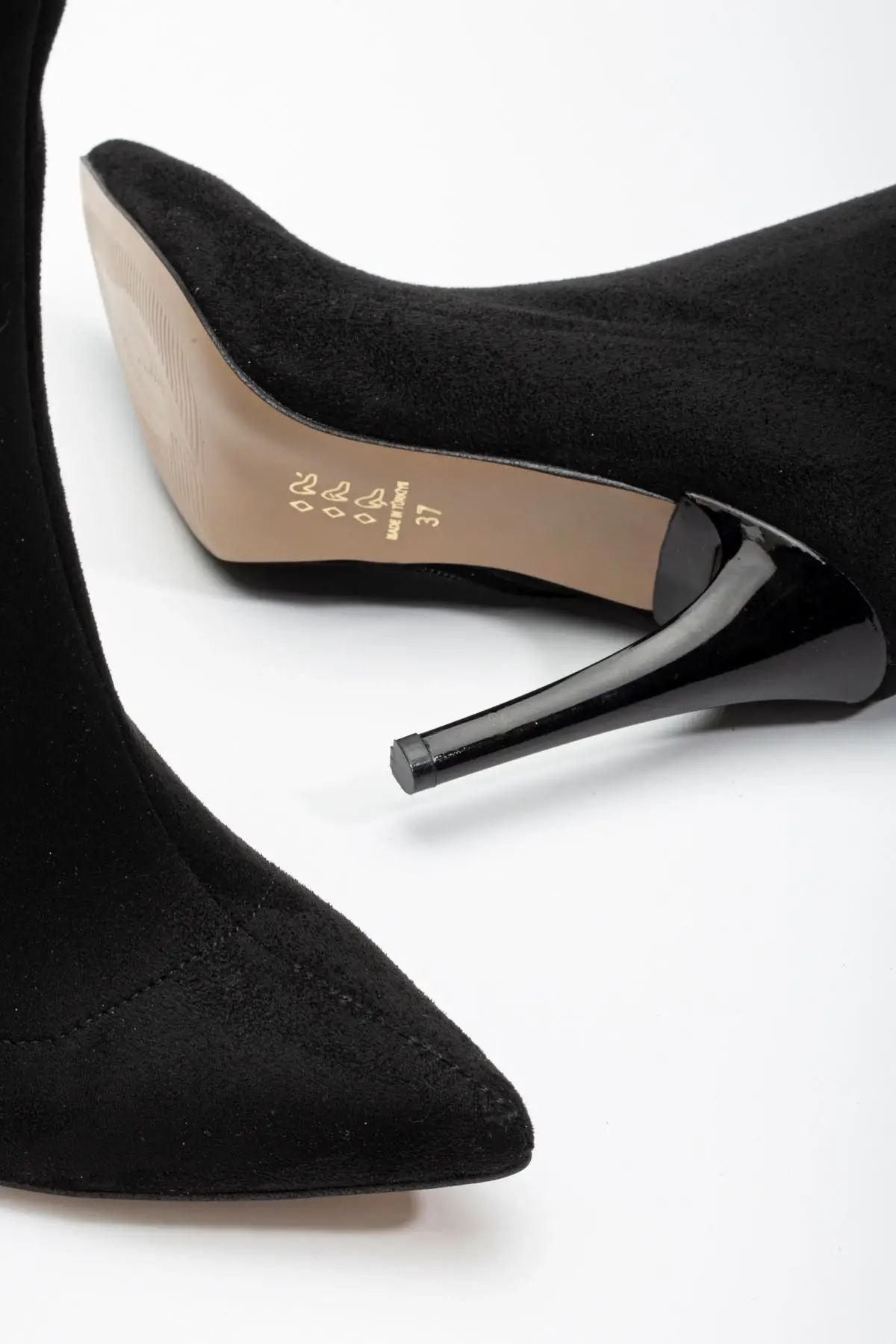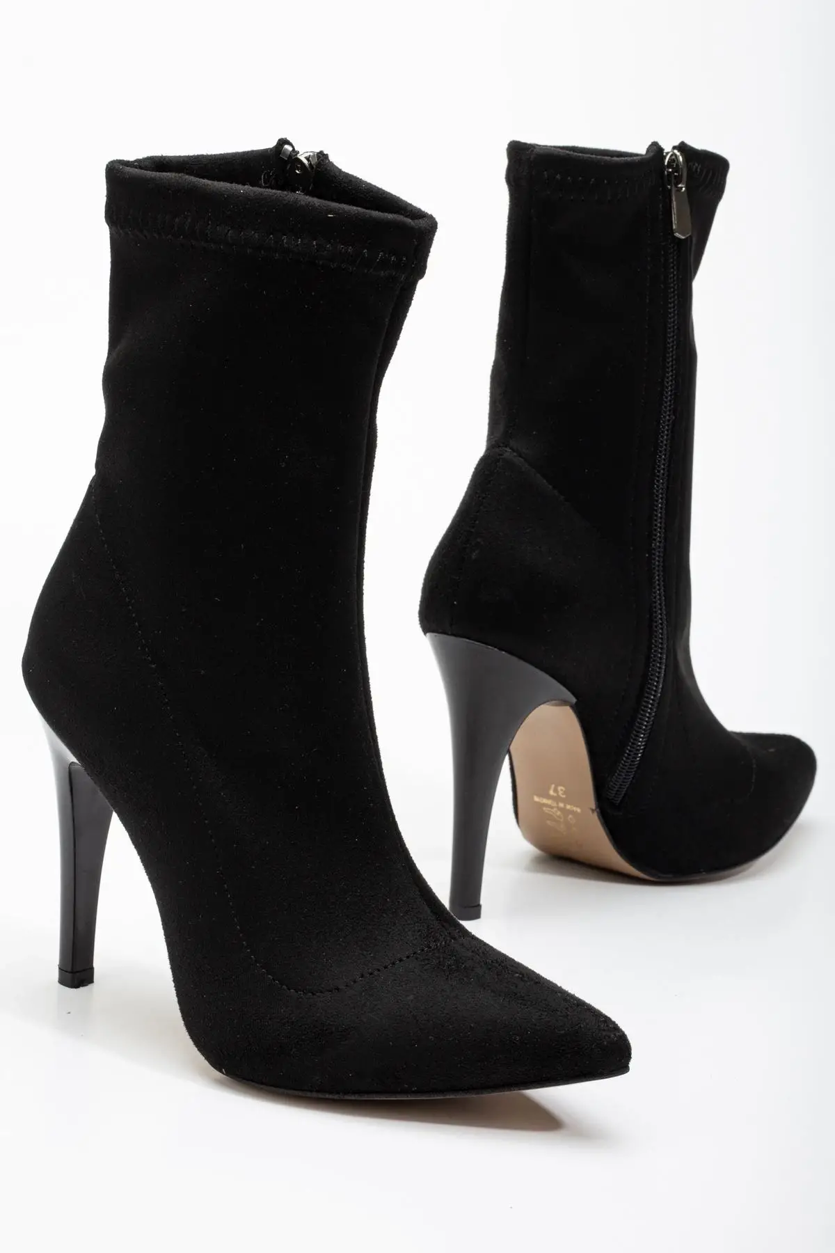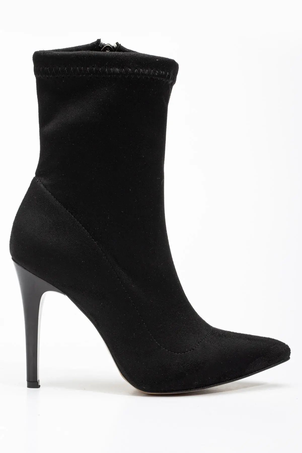 Siyah Süet Yüksek İnce Topuklu Fermuarlı Kadın Bot