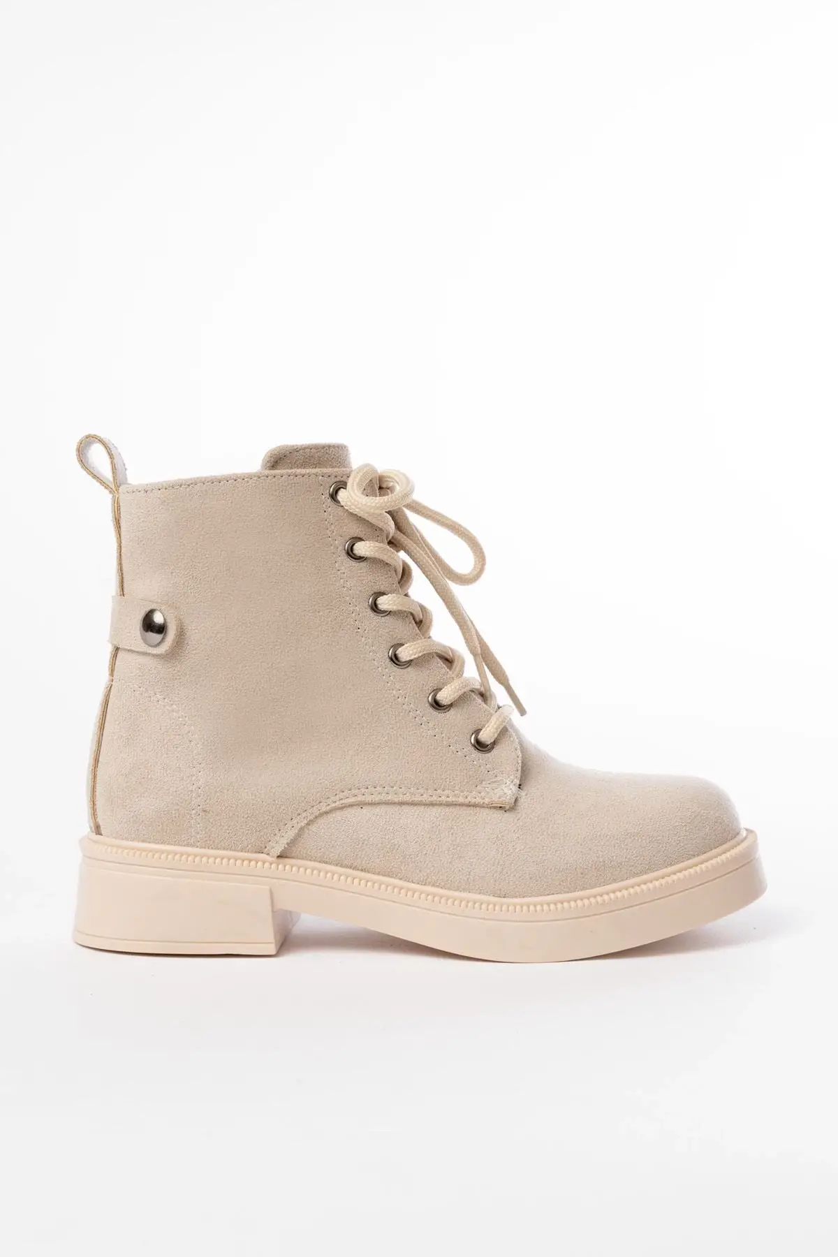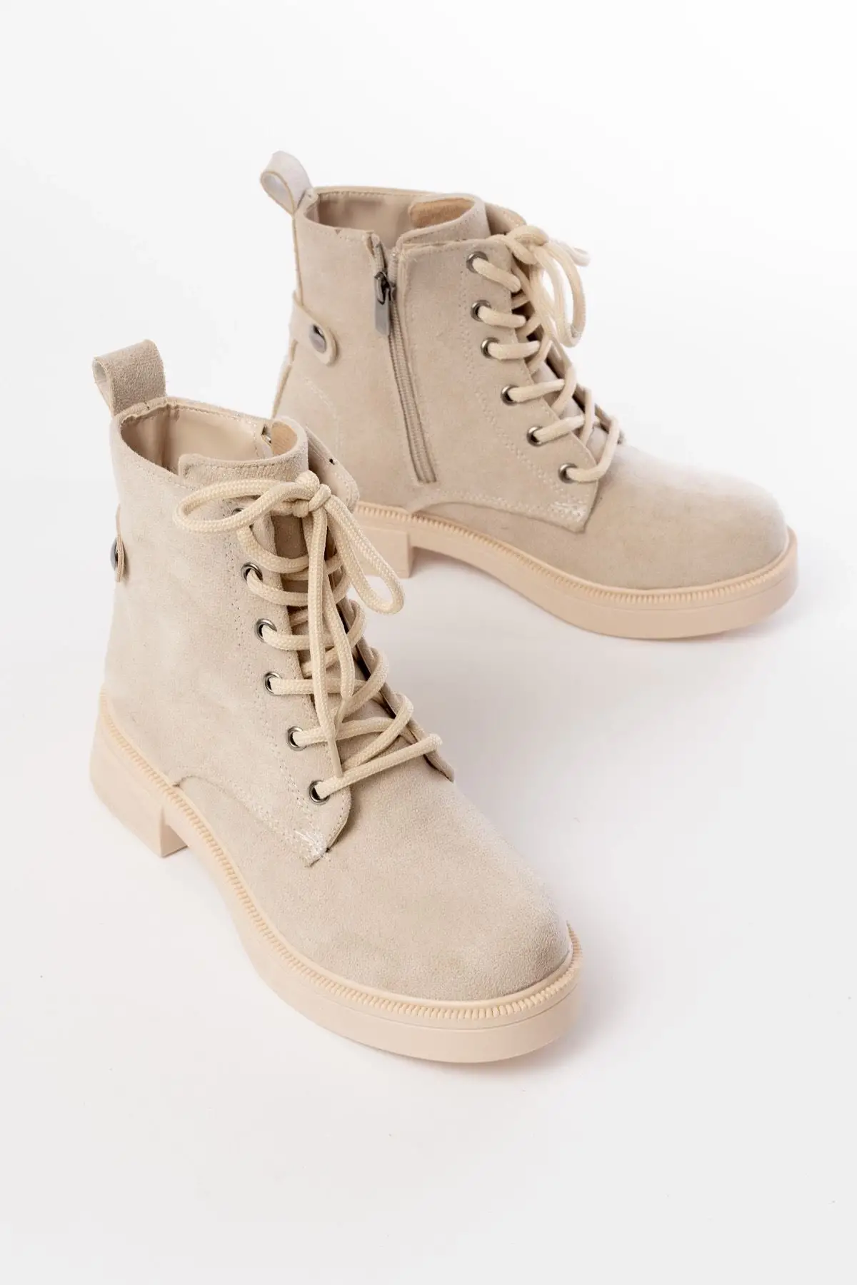 Bej Süet Bağcıklı Fermuarlı Günlük Kadın Bot