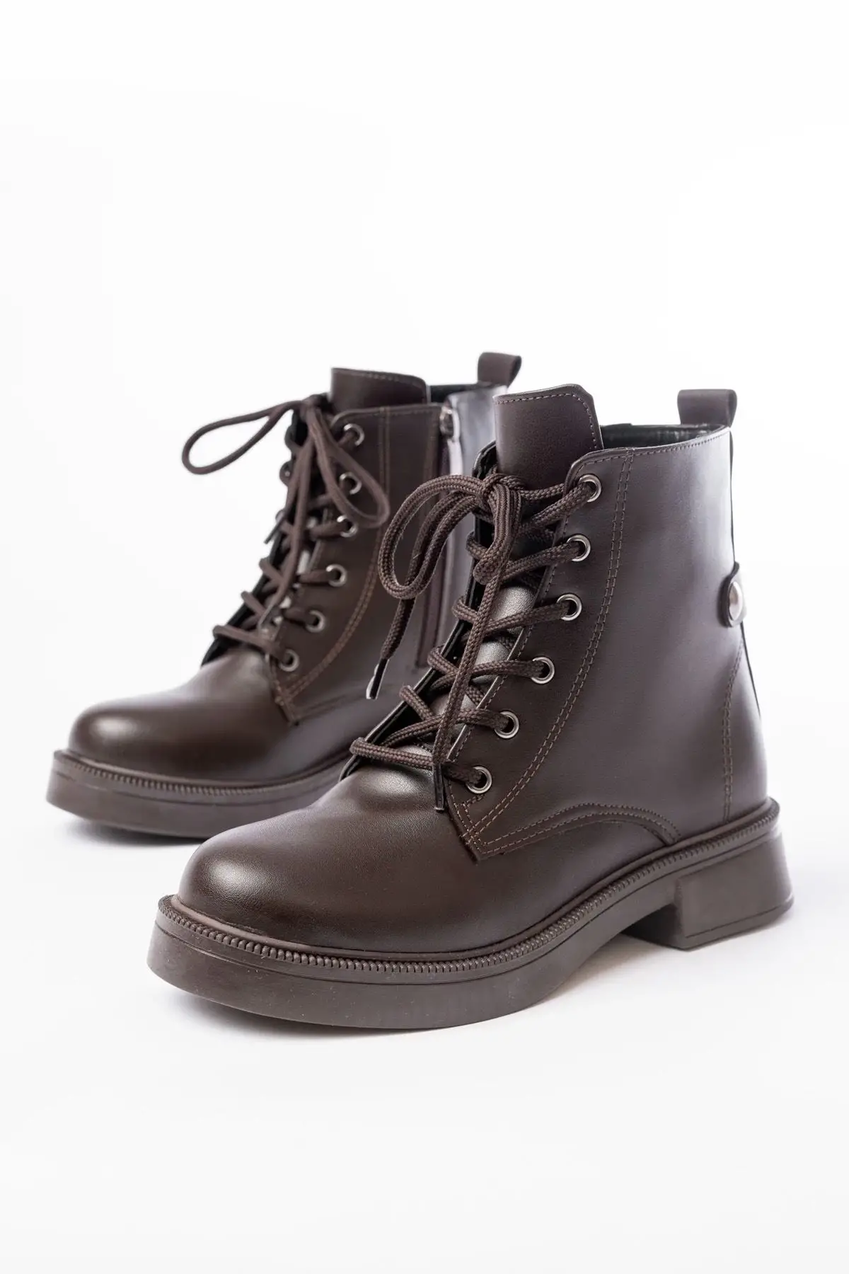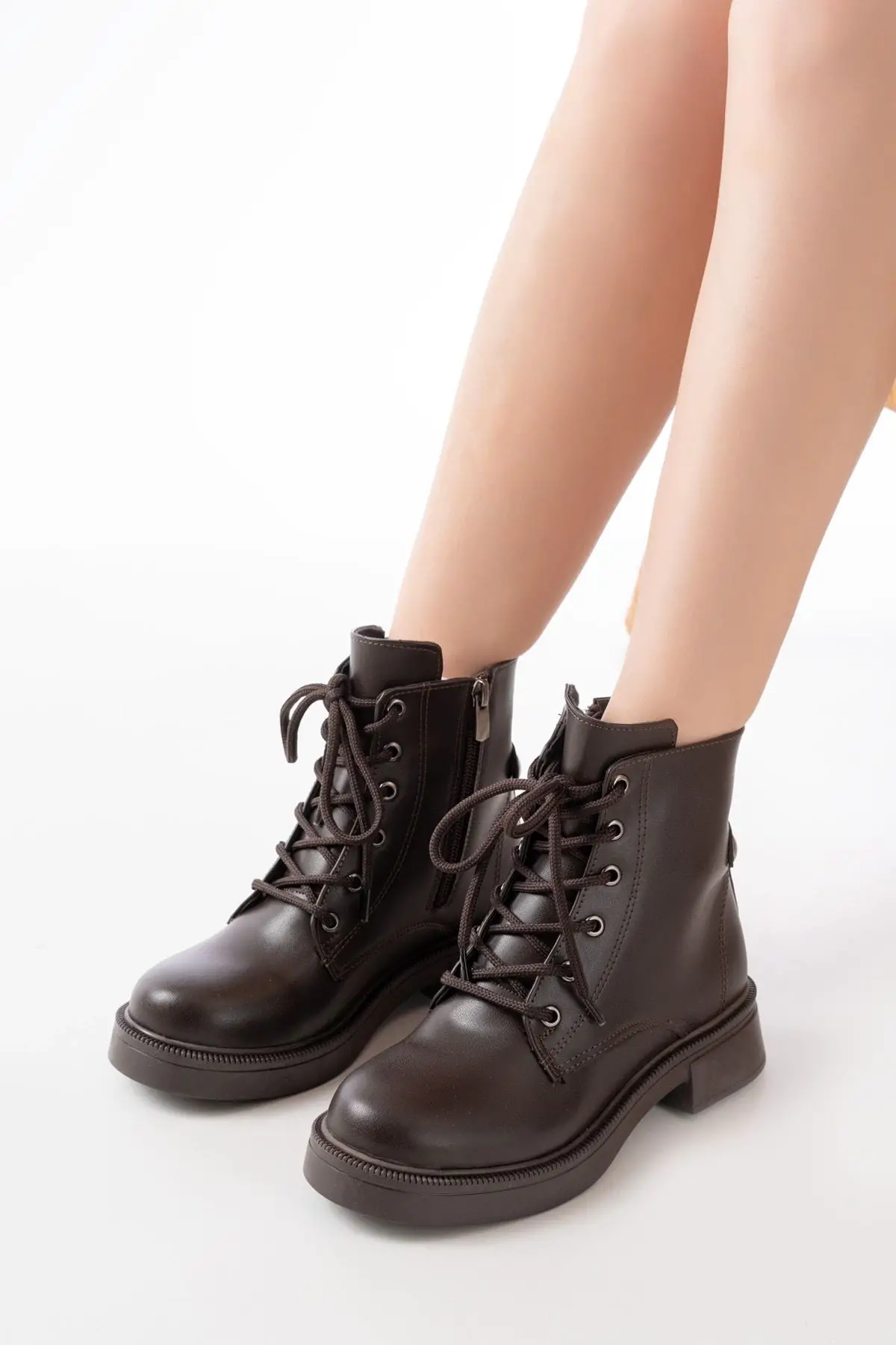 Kahve Galata Bağcıklı Fermuarlı Günlük Kadın Bot