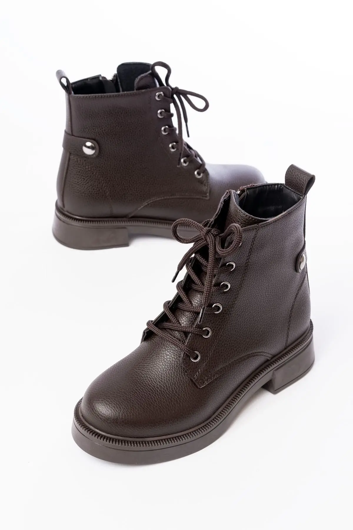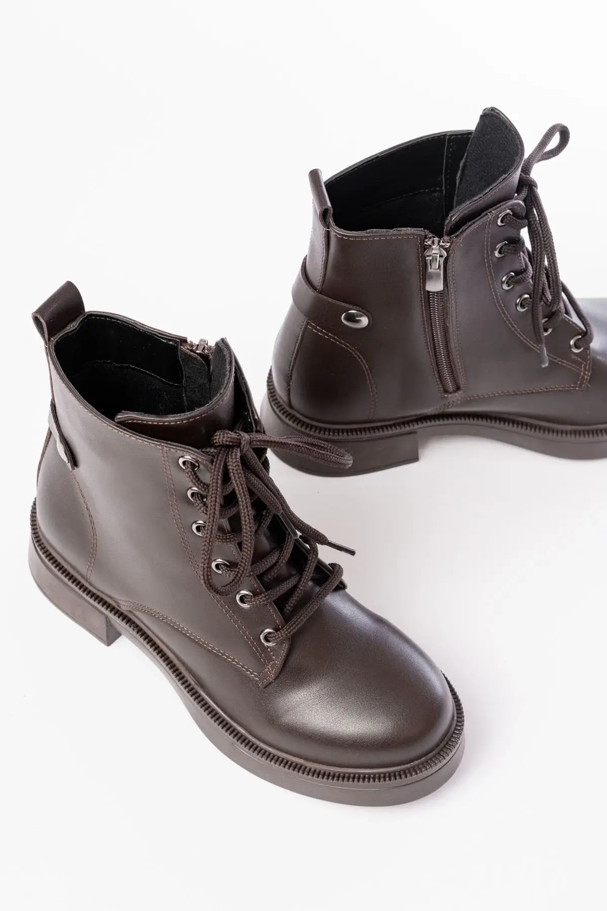Kahve Cilt Bağcıklı Fermuarlı Günlük Kadın Bot