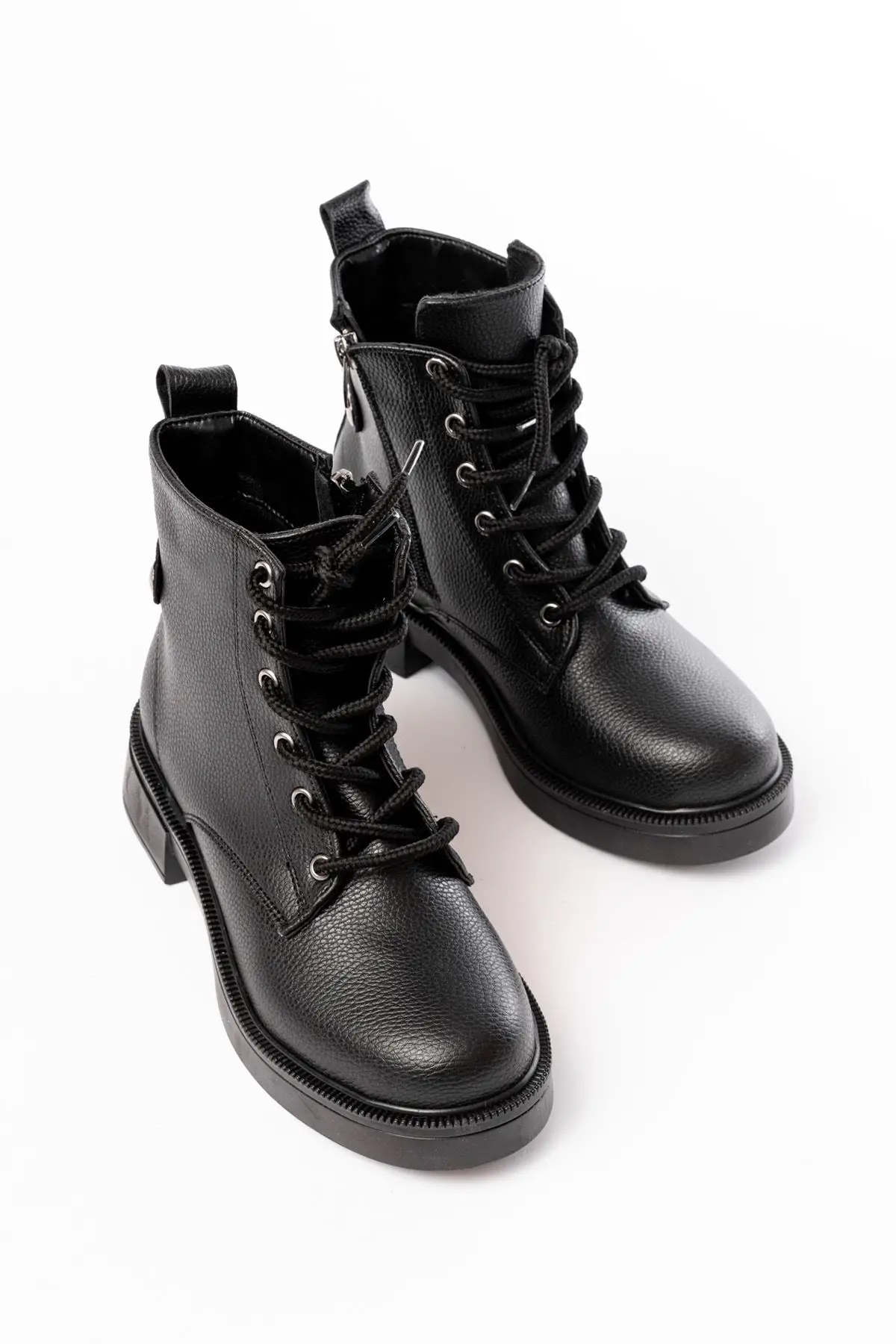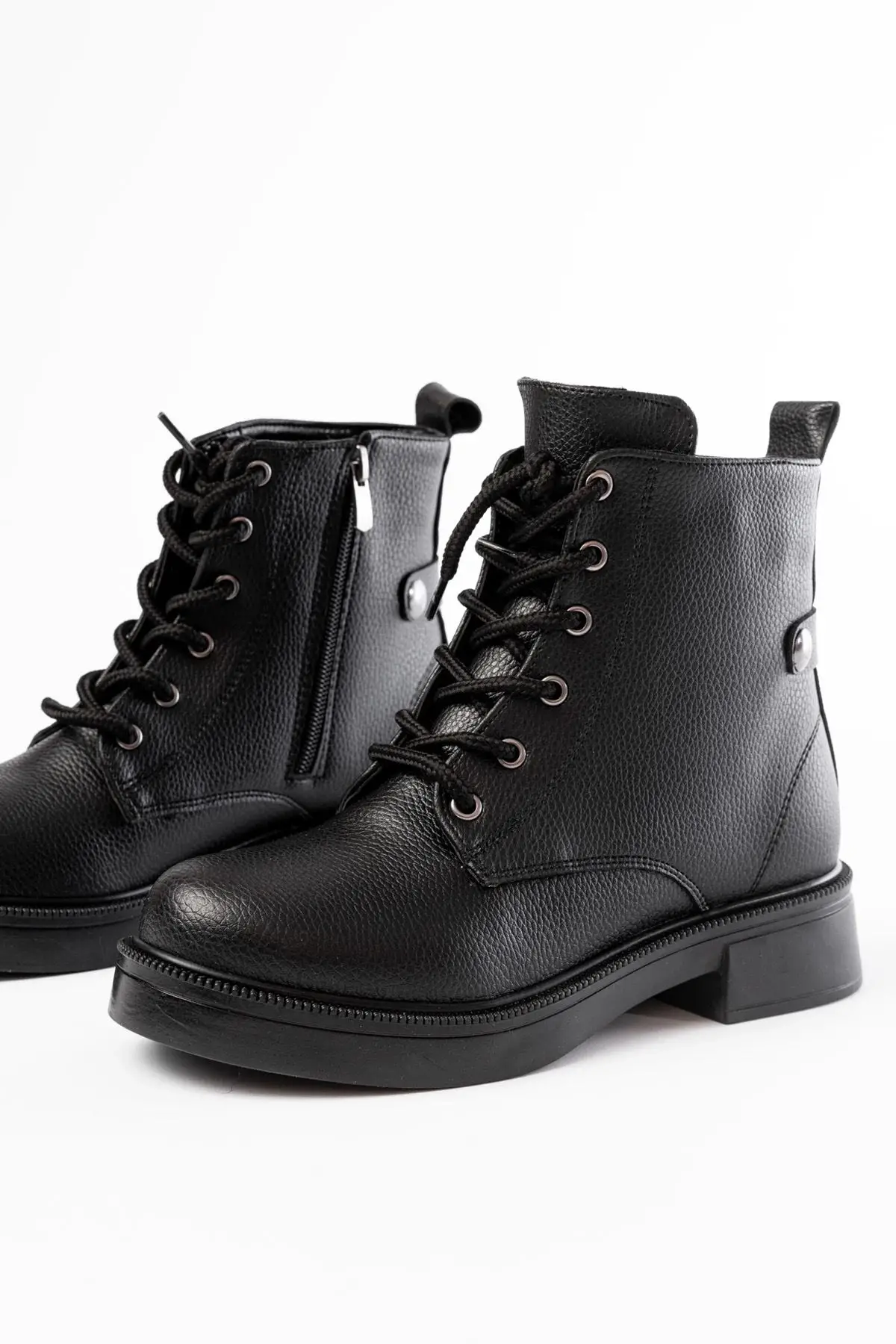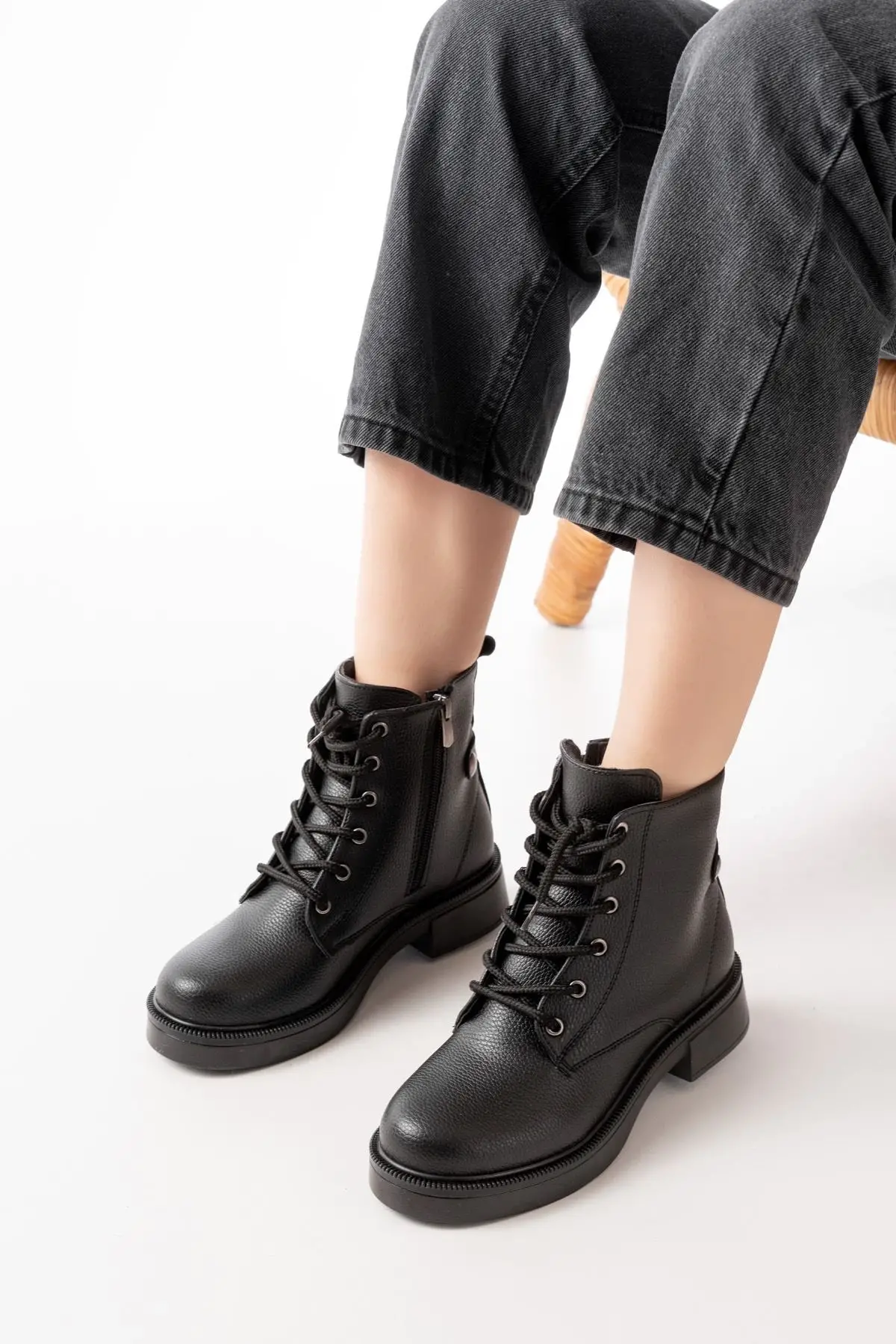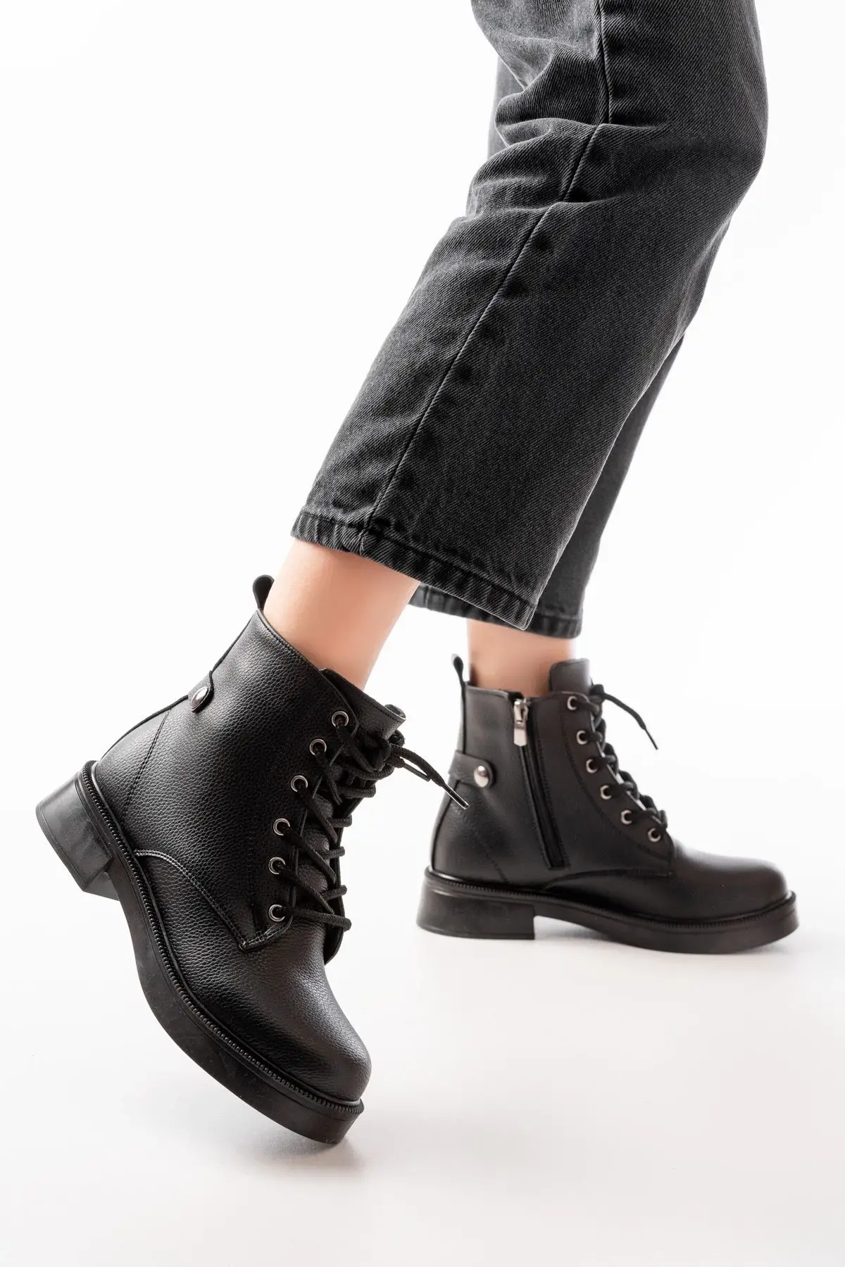 Siyah Galata Bağcıklı Fermuarlı Günlük Kadın Bot