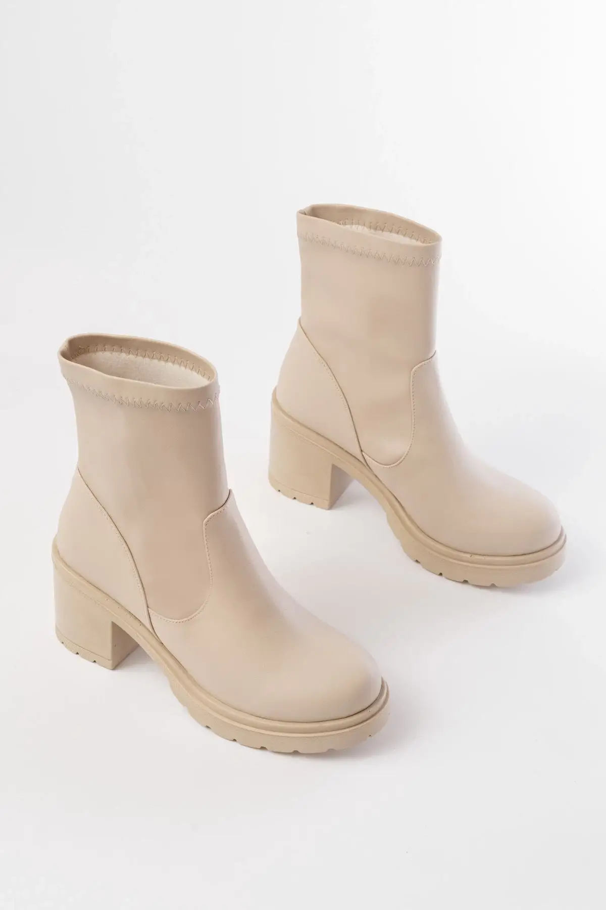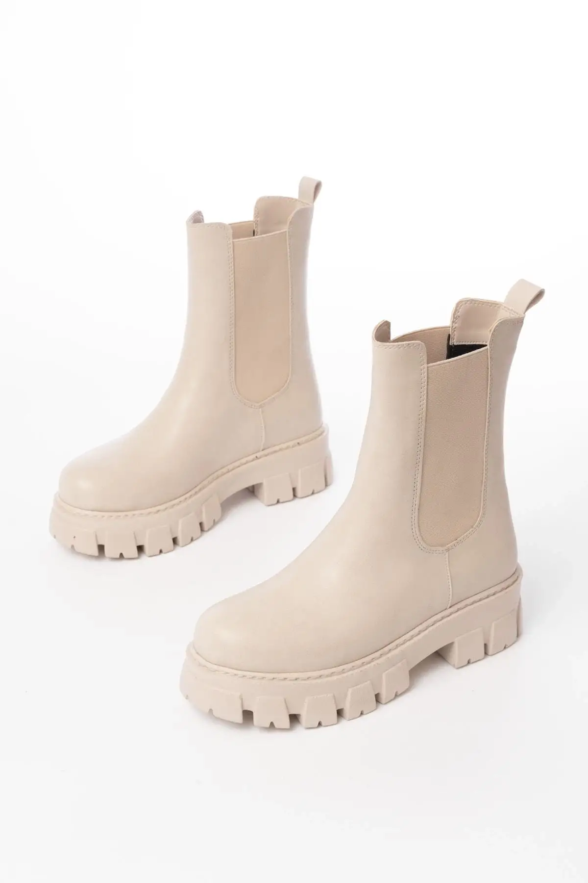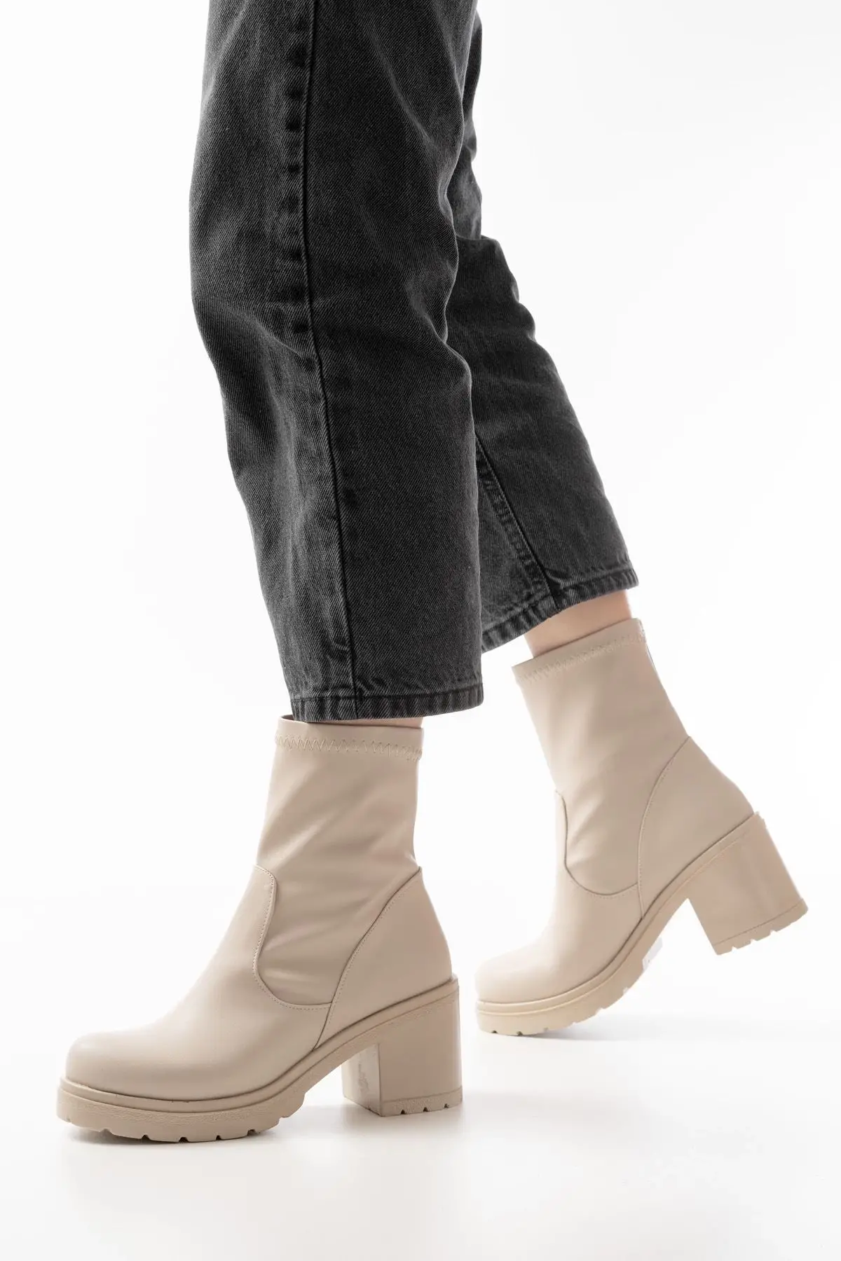 Bej Yüksek Tabanlı Lastikli Günlük Kadın Bot