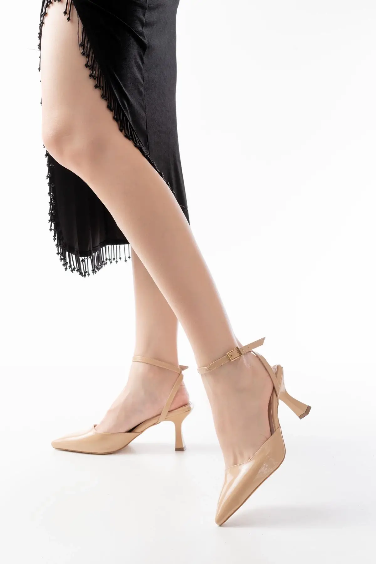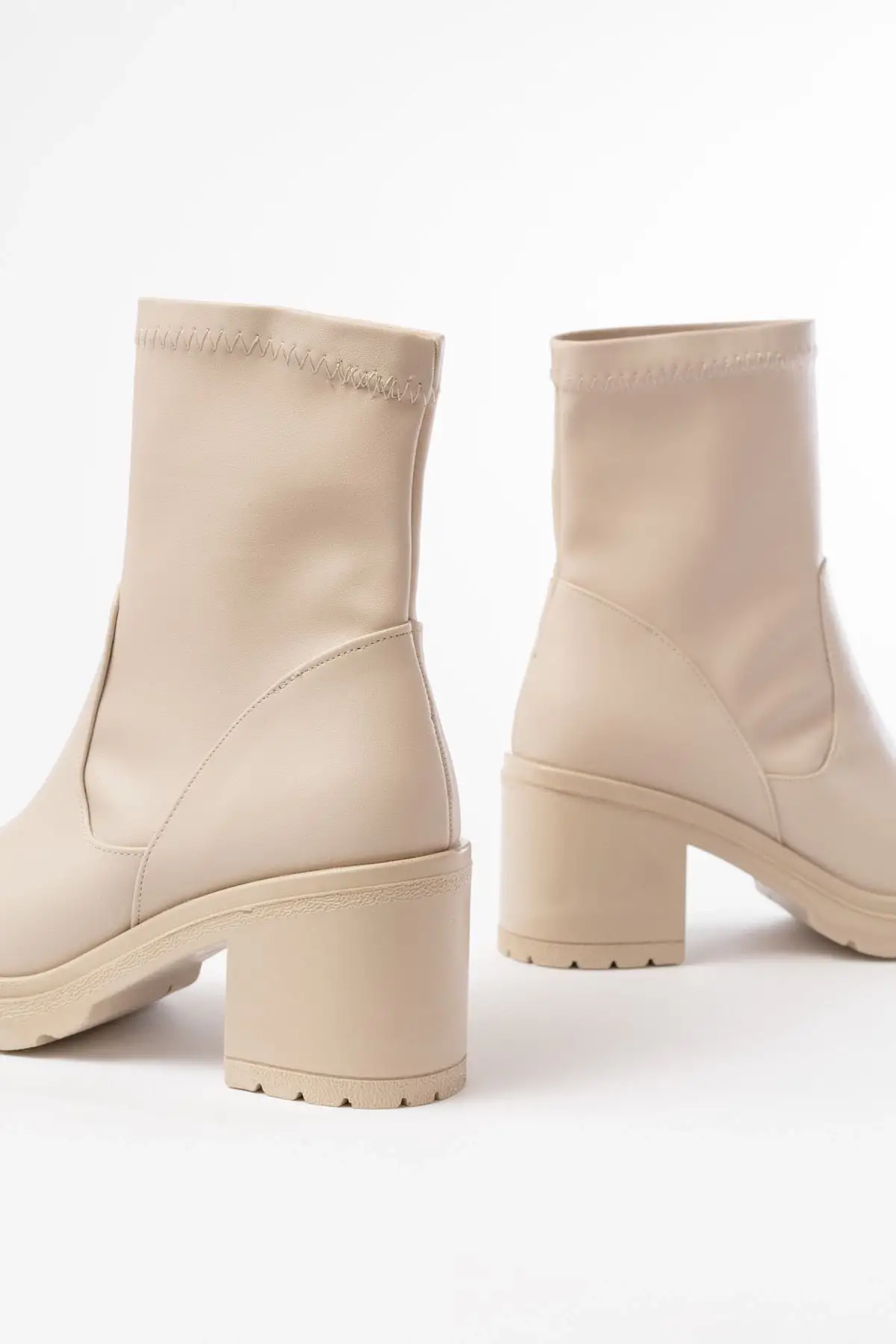 Bej Toka Aksesuarlı Topuklu Fermuarlı Günlük Kadın Bot