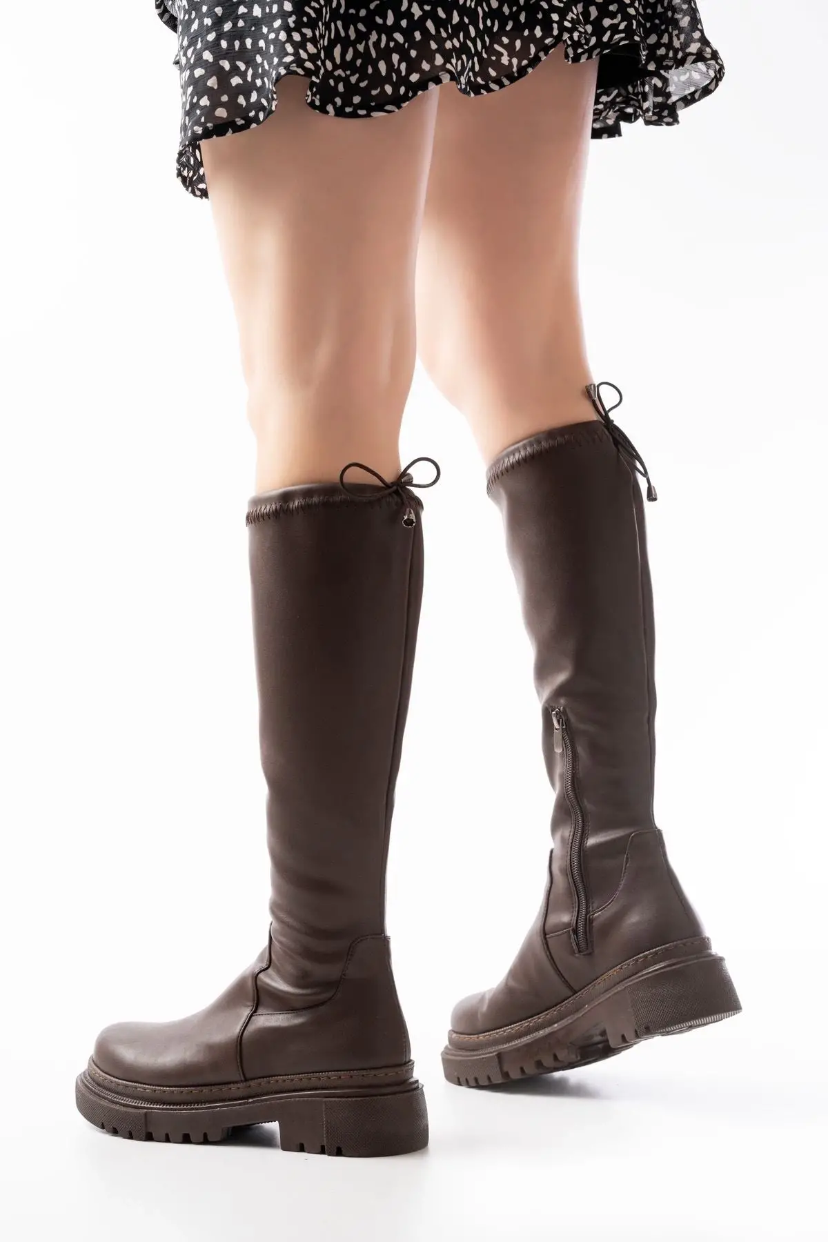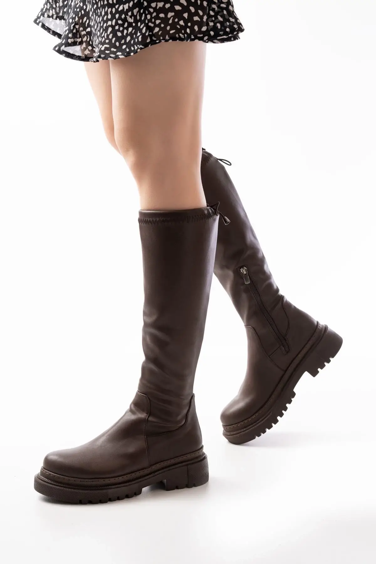 Kahverengi Fermuarlı Günlük Kadın Çizme
