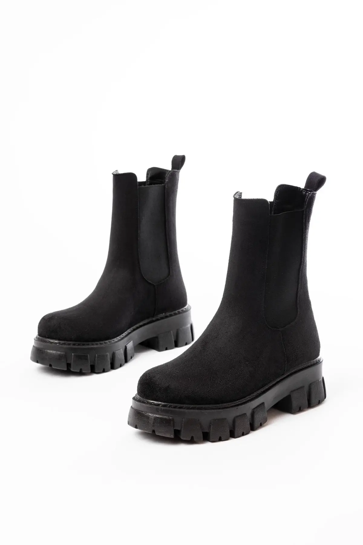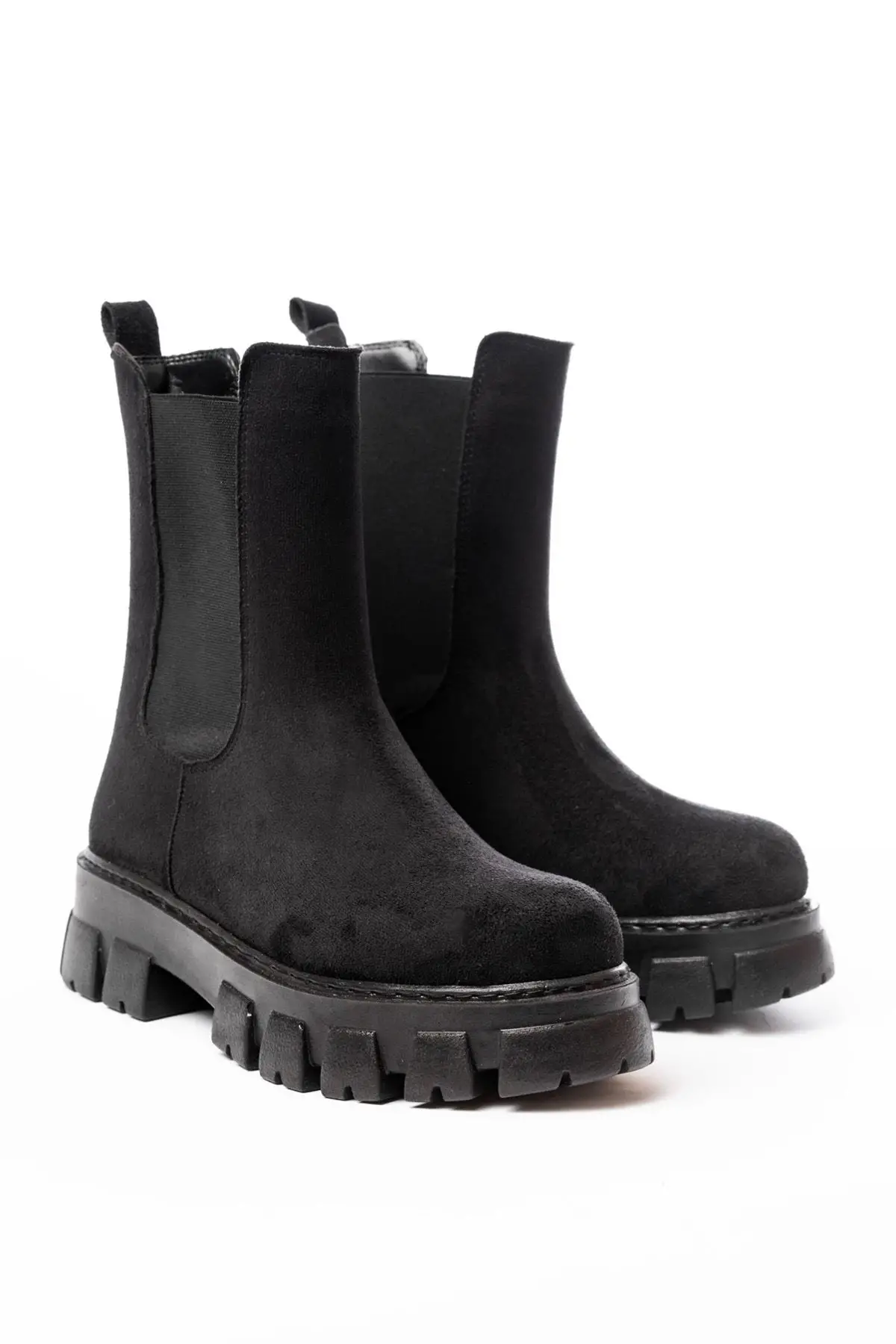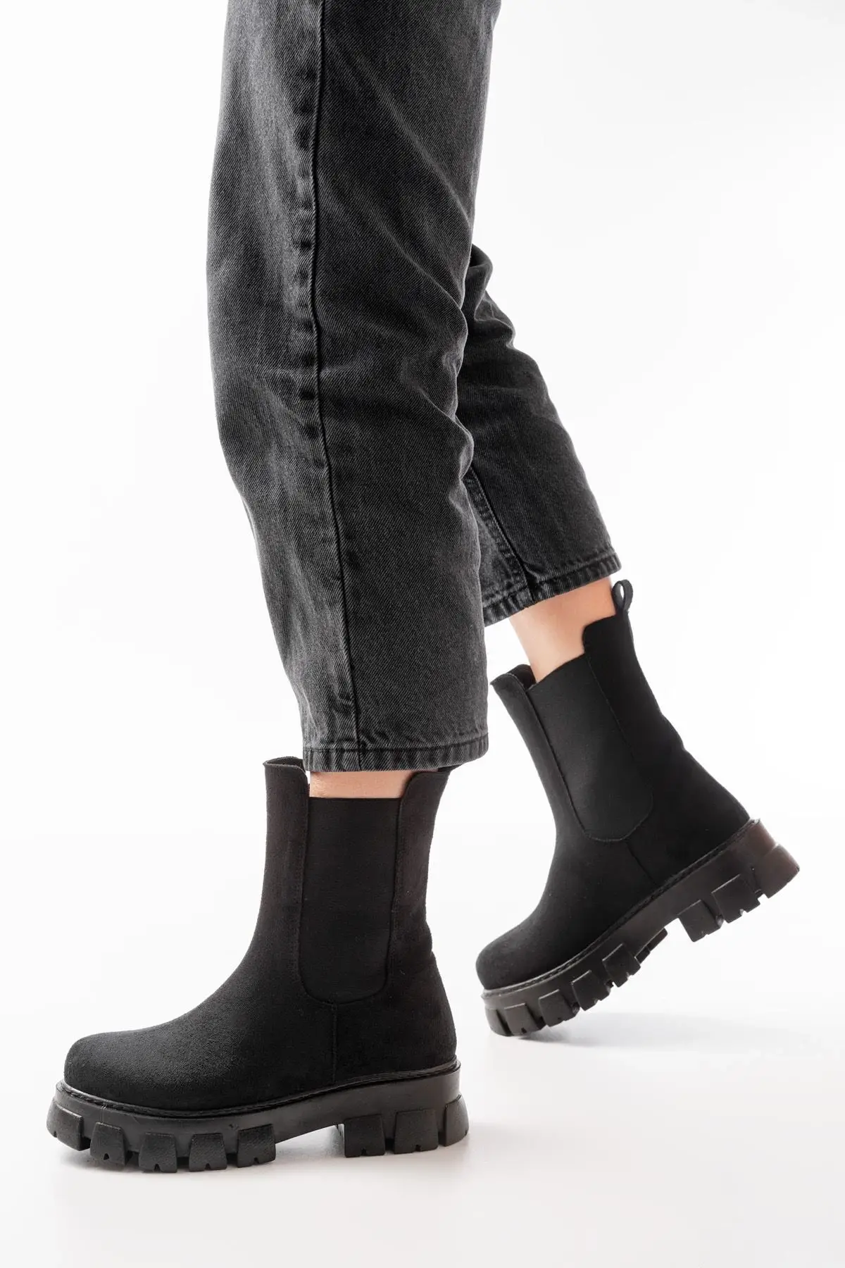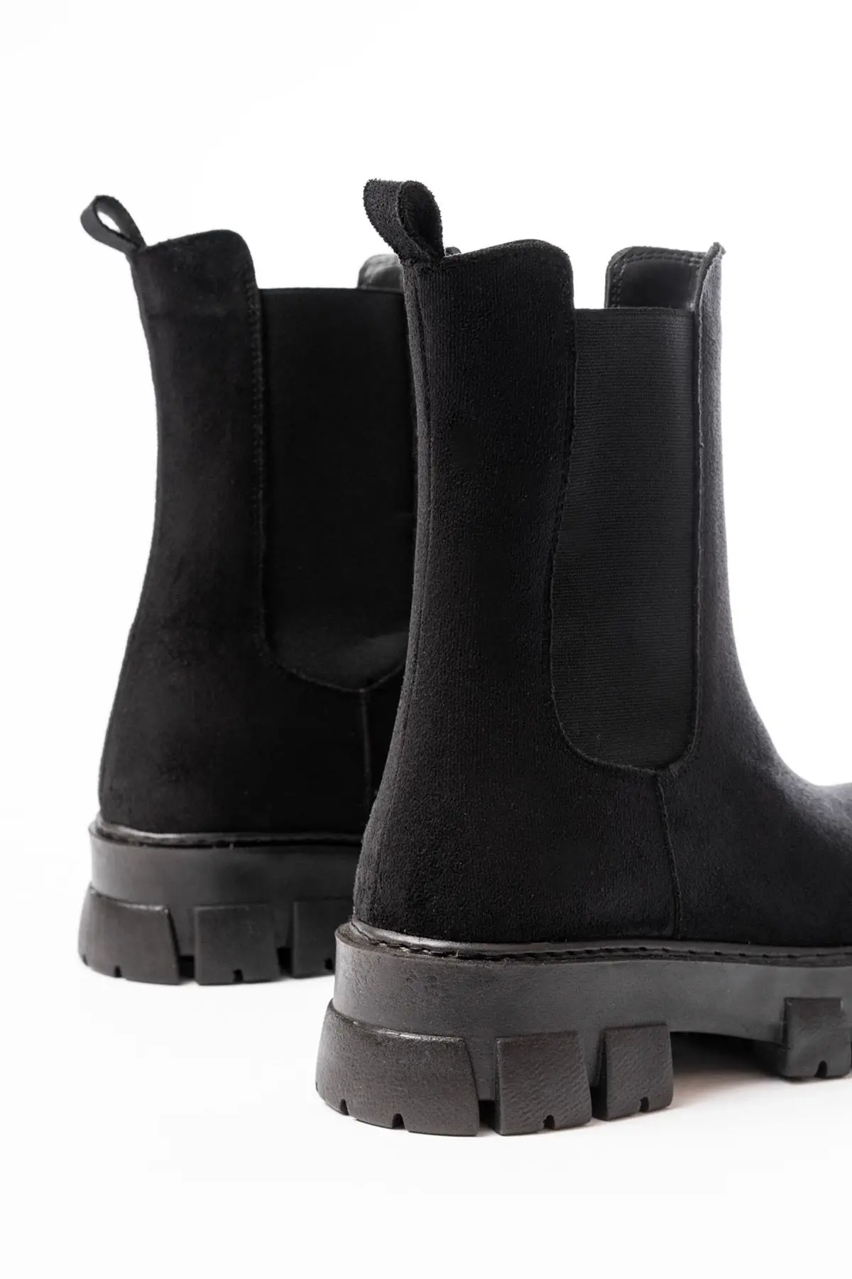 Siyah Süet Yüksek Tabanlı Lastikli Günlük Kadın Bot