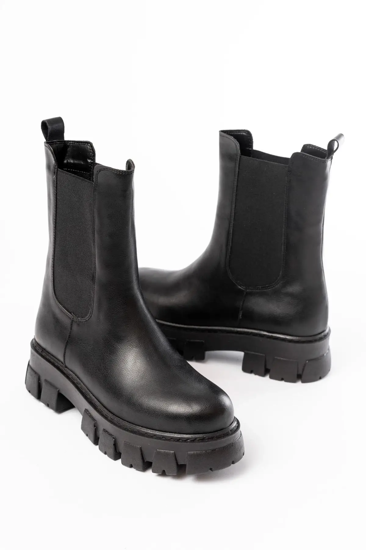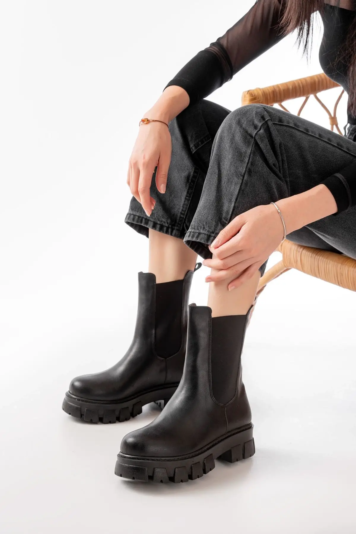 Siyah Yüksek Tabanlı Lastikli Günlük Kadın Bot