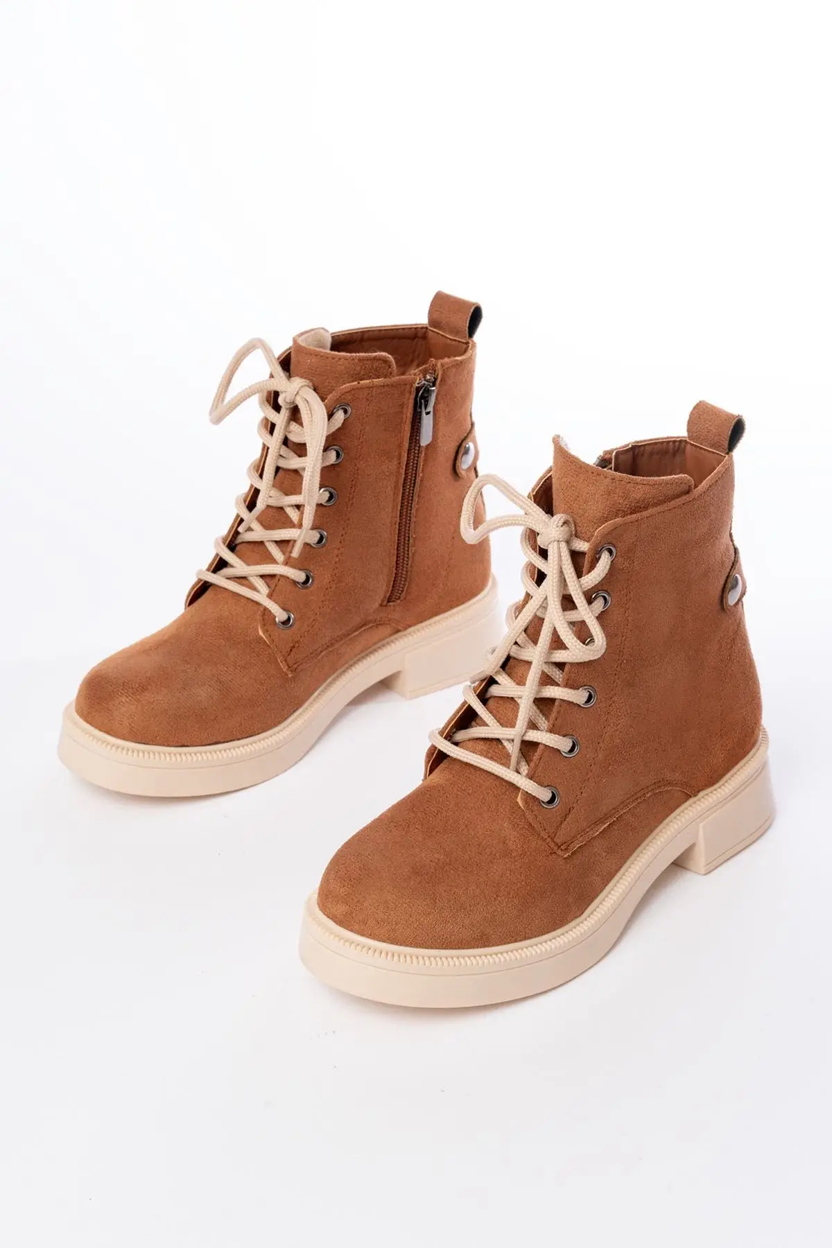 Taba Süet Bağcıklı Fermuarlı Günlük Kadın Bot