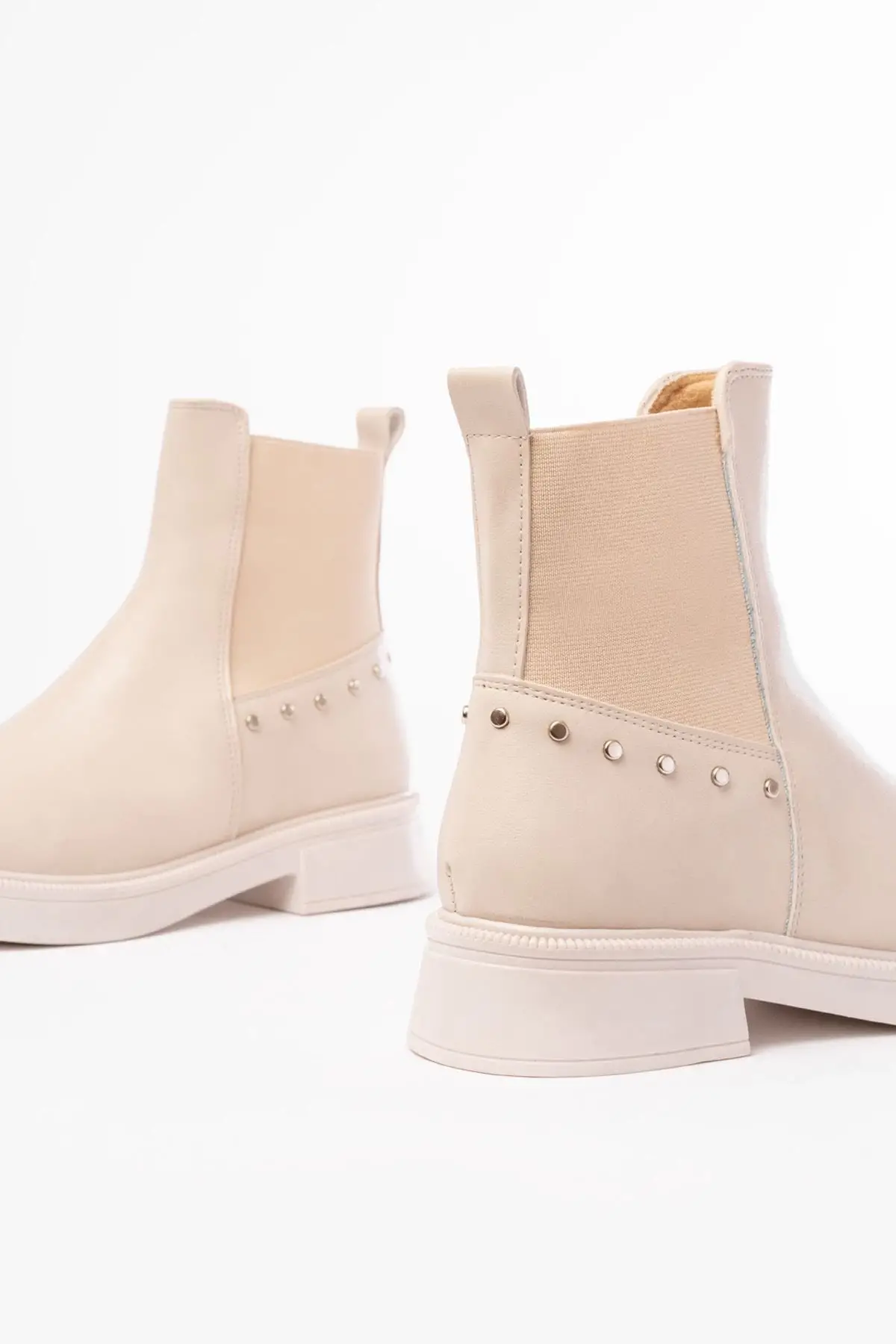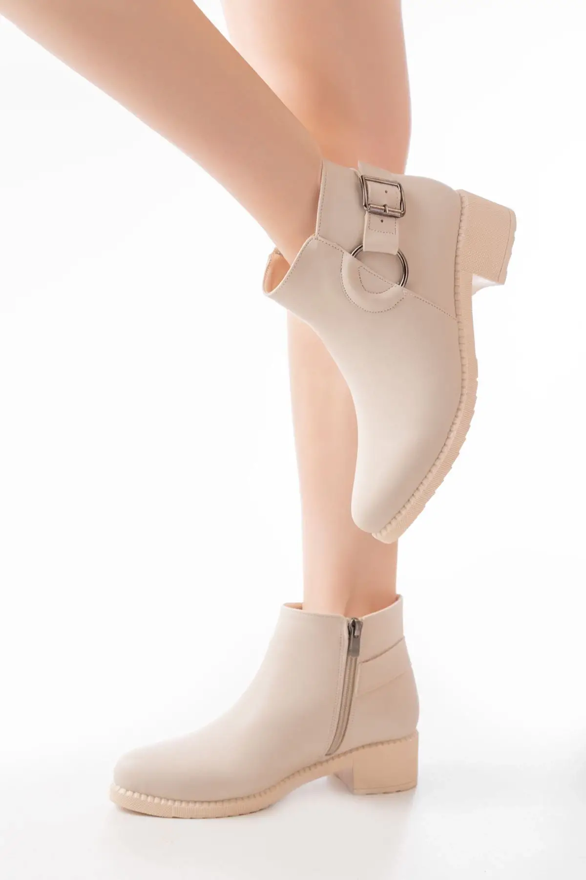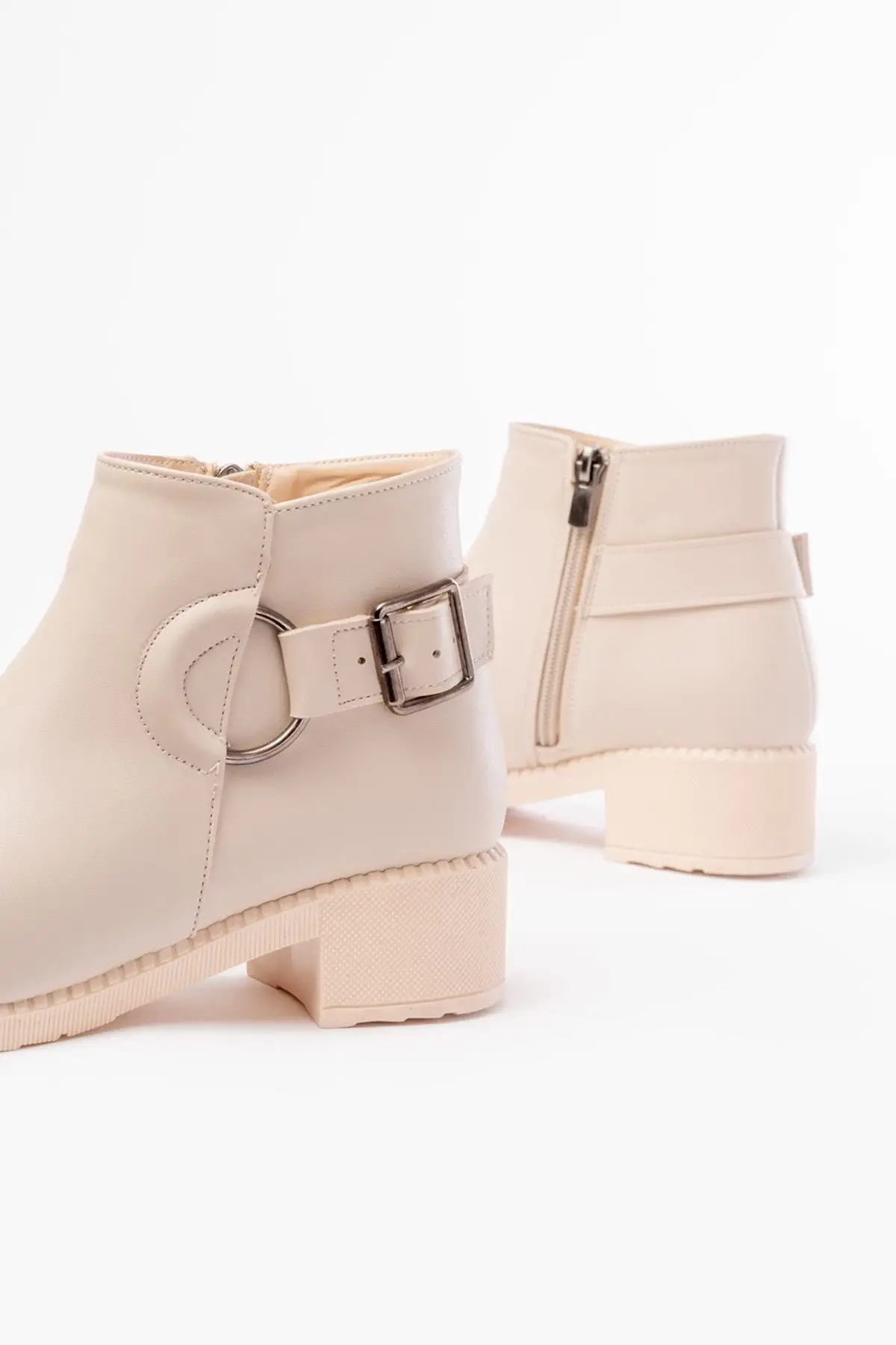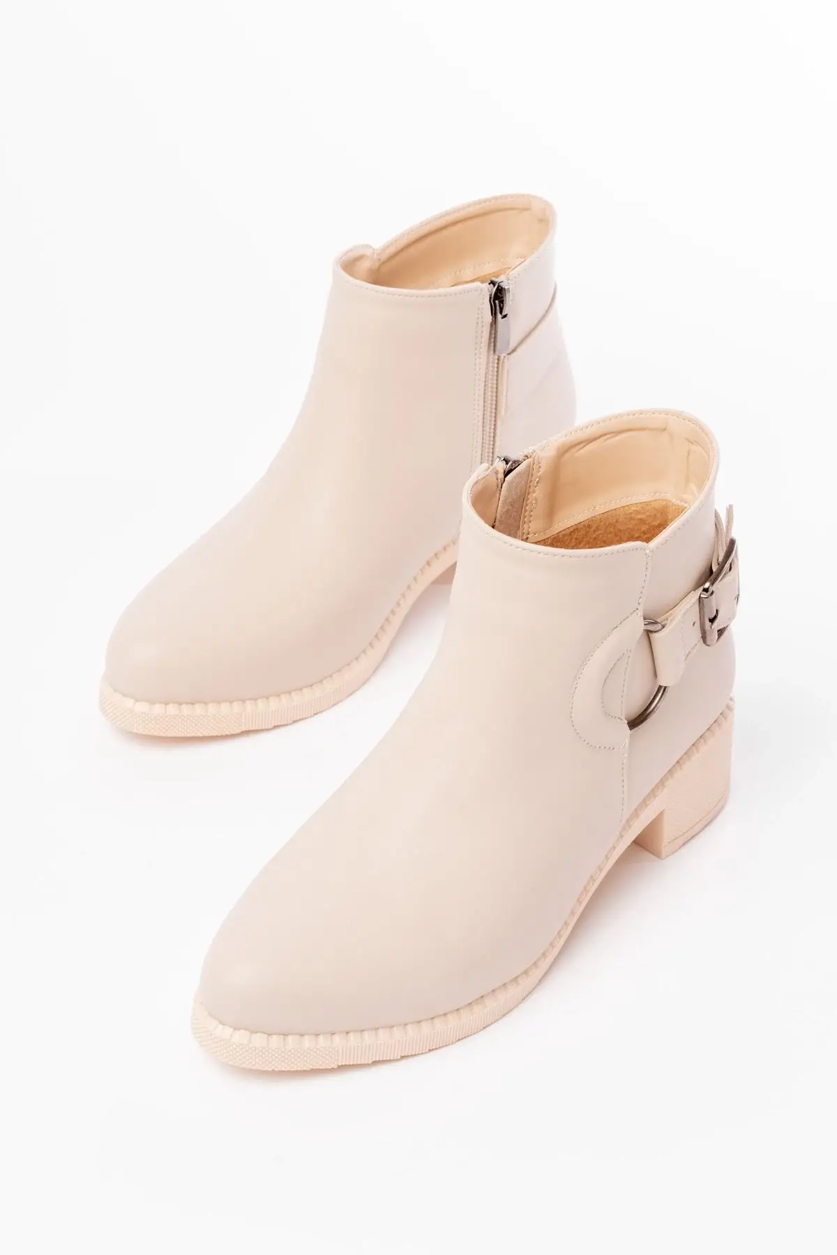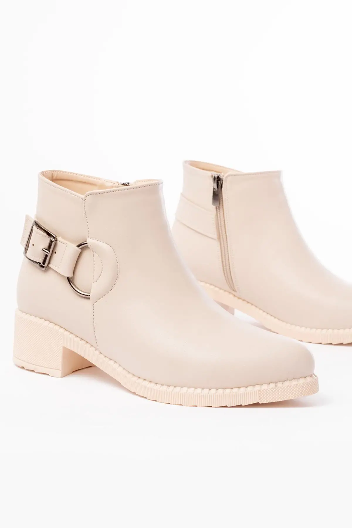 Bej Toka Aksesuarlı Fermuarlı Günlük Kadın Bot