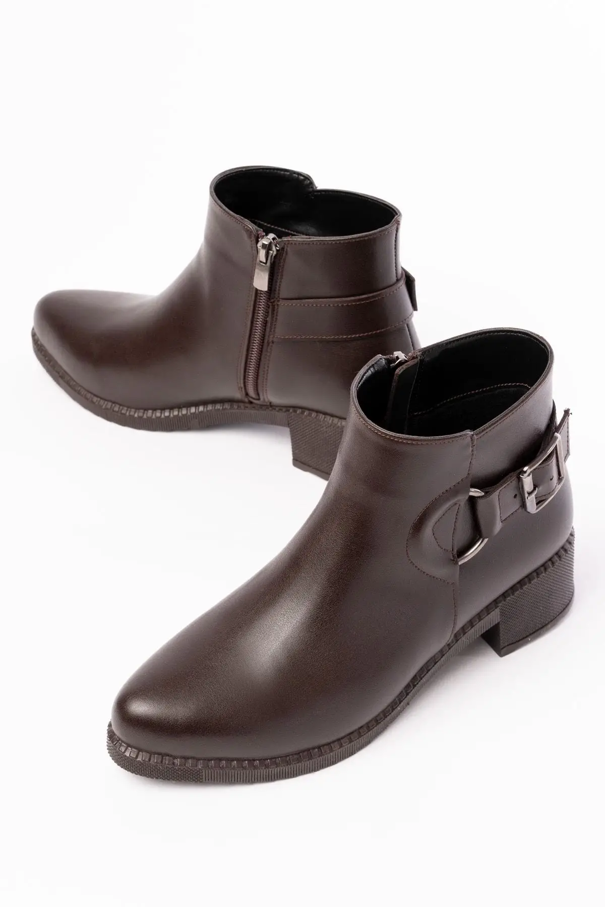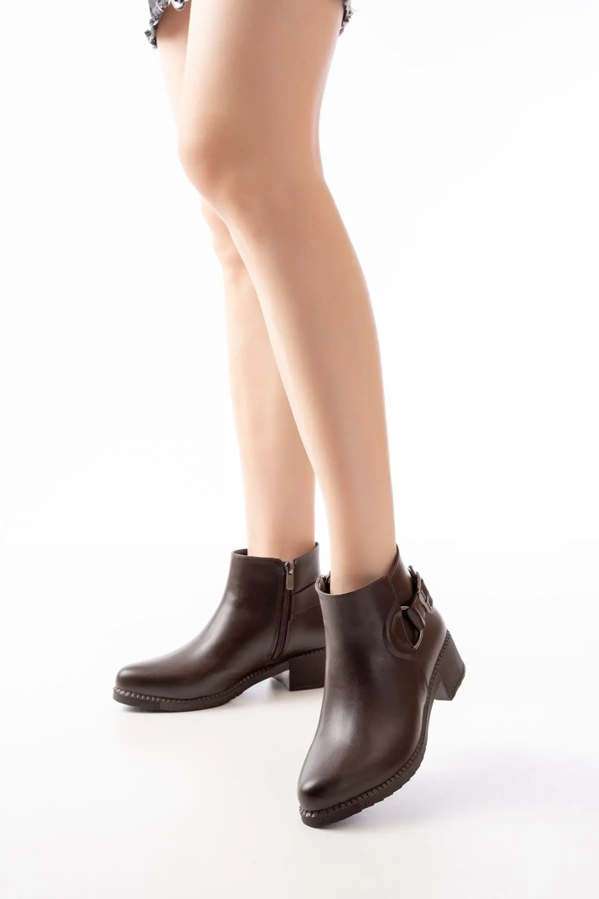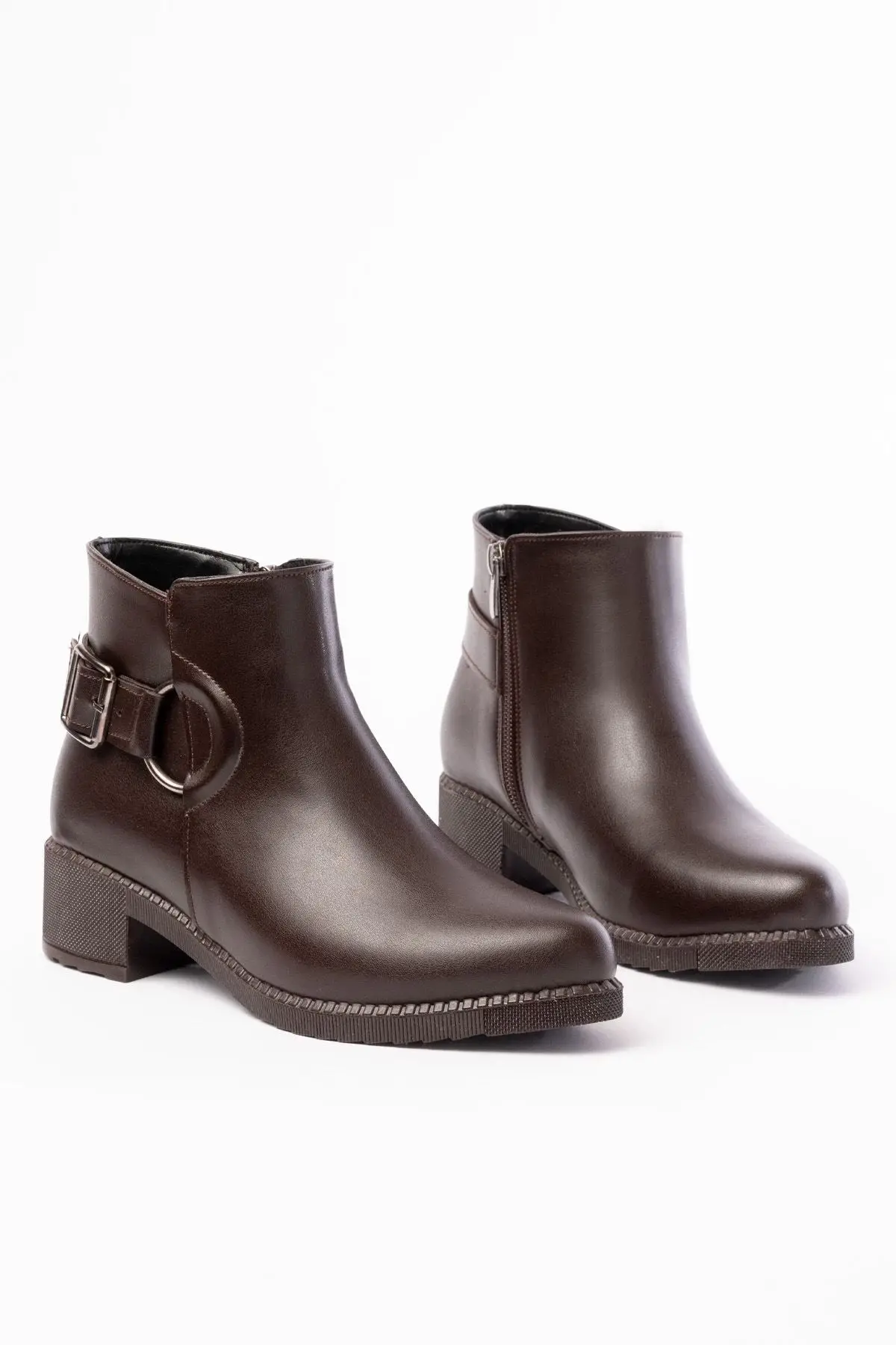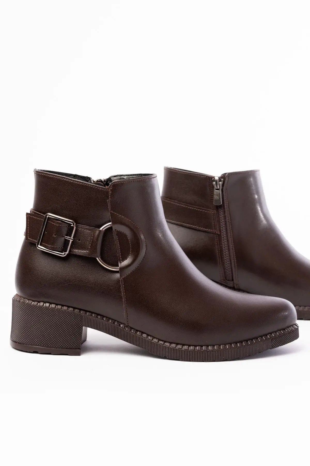 Kahverengi Toka Aksesuarlı Fermuarlı Günlük Kadın Bot