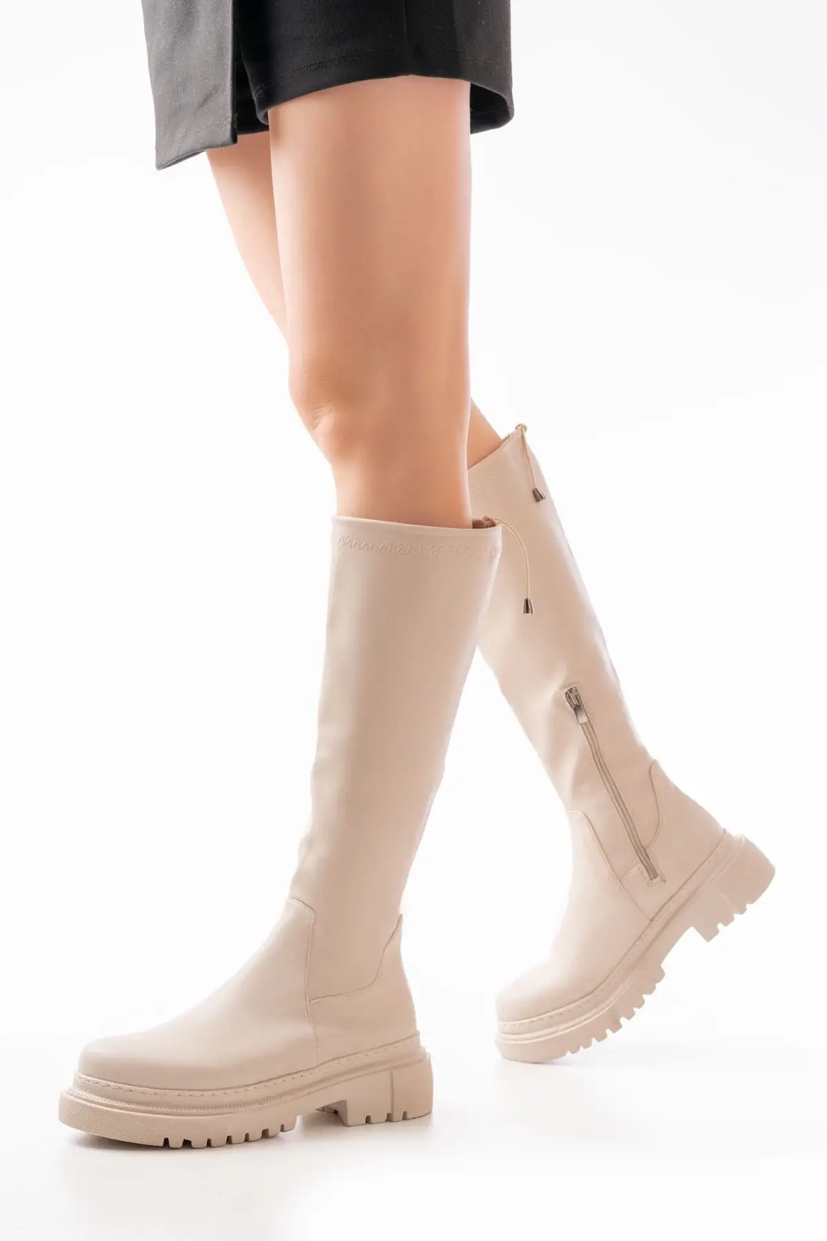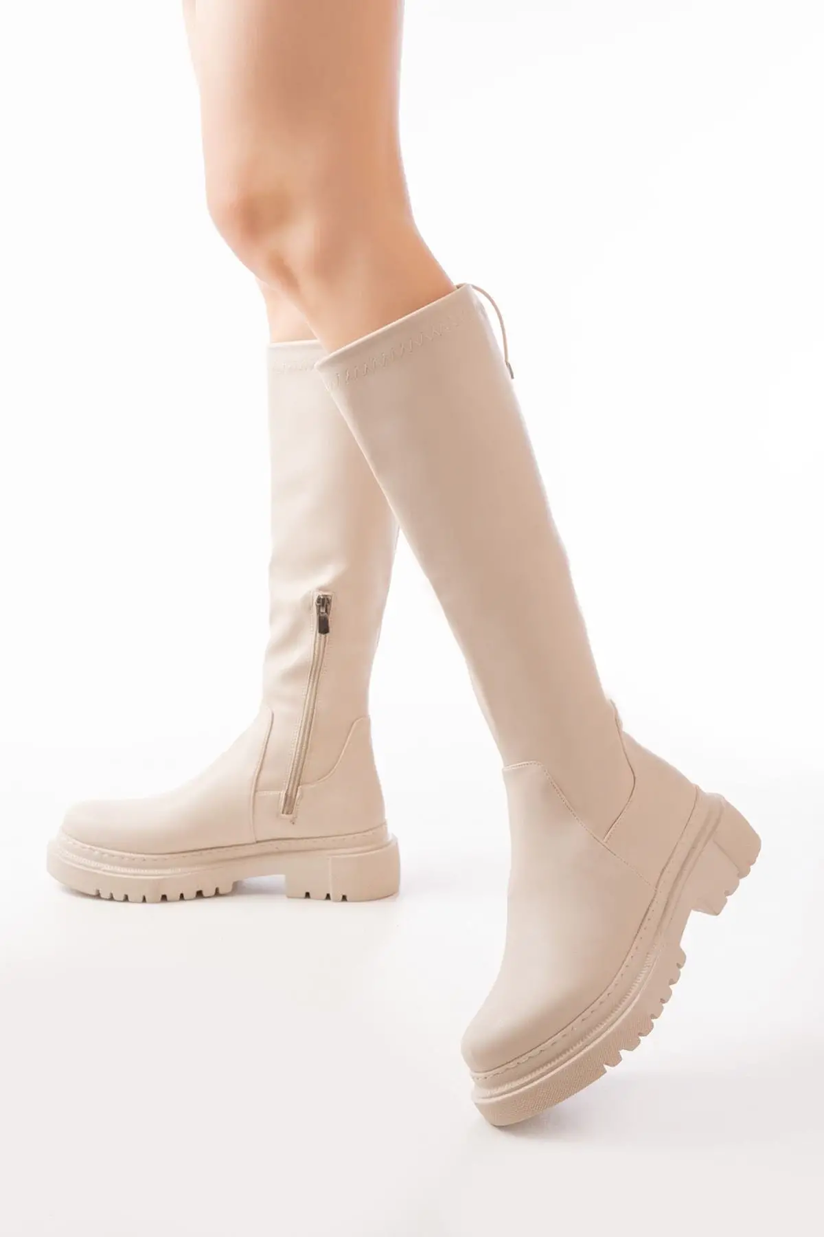 Bej Fermuarlı Günlük Kadın Çizme